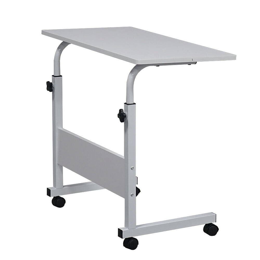UBesGoo Laptop Table Adjustable Height Standing Computer Desk Portable Stand Up Work Station Cart Tray Side Table for Sofa and Bed,White Features: The height is adjustable,to meet the different heights needs as various couches, beds, and chairs, Wheel design, moving anywhere as you wish. With elegant look and unique design, our laptop table is perfect for a standing table, a table to write, to work on your laptop, watch movies, or present project presentations at work. There are 4 casters on the base so that you can move it from here to there conveniently. And the casters are lockable, which allow you to easily lock them to make your it stationary. Round steel tube design conform to aesthetics; Plum handle easy to adjust. Using it for simple dining table, laptop computer table, studying desk, serving table or any other scenes you want for reading, writing, drawing, board games, models, puzzles, arts and crafts, trade shows, gardening. Specifications: Material: E1 15MM Chipboard & Steel Color: White Dimensions: (31.5 x 15.75 x 23.62)” / (80 x 40 x 60)cm (L x W x H) Weight: 13 lbs / 6 kg Size: L Package Includes: 1 x Removable Side Table