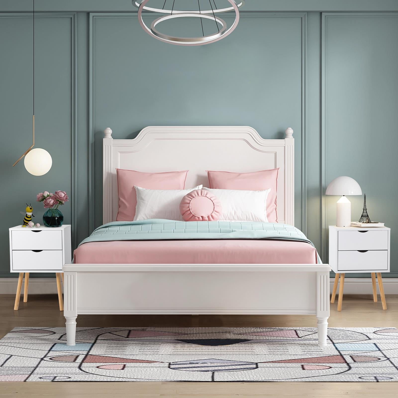 Pastoral-style curved bedside table, looks good and practical Installation method is very simple, with detailed instructions and installation package The storage space is large, there are two drawers, and the top can also put things