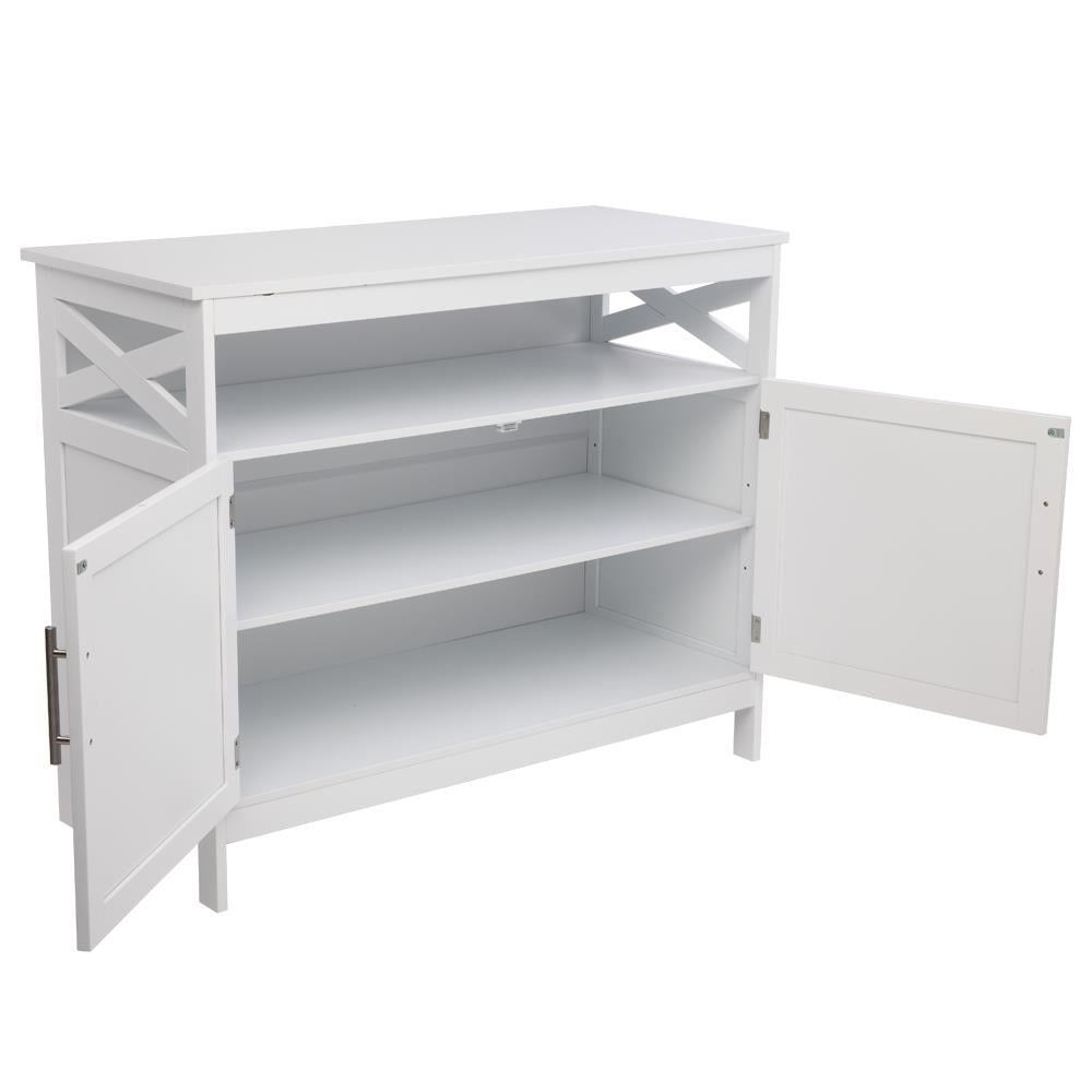 Introductions: With broad tabletop and large storage compartments, an organized and neat home can be easily come true. Constructed of finished MDF board and heavy-duty legs, the cabinet is steady and reliable for long service time. And you can adjust the position of the middle tier to meet your different storage demands. As a combination of elegance and functionality, the unit is compatible with various decoration styles, and it can perfectly fit your living room, kitchen, bathroom, entrances, etc. Features: Vintage Metal Handle:Designed with 2 vintage metal handles, the cabinet door is easy to open with elegance. And the metal handle is steady and durable, lasting long service time. Magnet Base Door:Designed with magnet base to match the doors, the door can be automatically closed if you forgot to close it after taking something from cabinet. Adjustable Middle Shelf:There are multiple holes so that you can adjust the position of the middle shelf according to your storage needs and individual’s likes. Specifications: Material: P2 MDF board Color: White Weight: 51.8lb Dimensions: (39.4 x 17 x 31.5)” (L x W x H) Package Includes: 1 x Dining Buffet