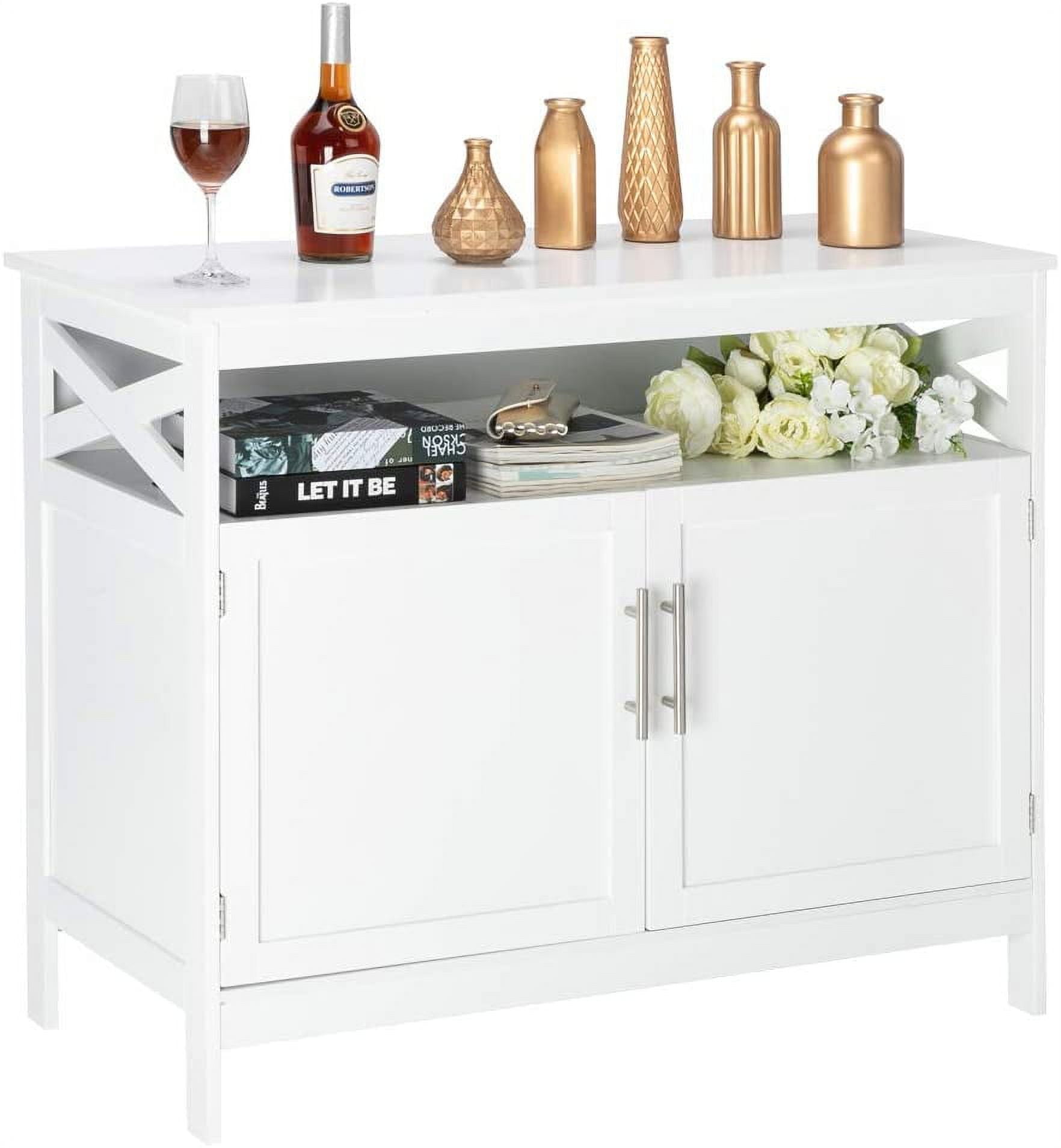 UBesGoo Sideboard with 2 Doors, Kitchen Storage Cabinet Buffet with Adjustable Shelf, White