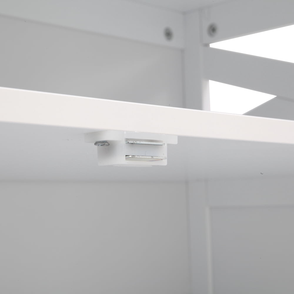 All the parts are intelligently organized and clearly labeled. It was as easy and satisfying as a jigsaw puzzle Elegant white, simple and stylish, it will bring comfort to your bedroom and bathroom, not only as furniture, but also as home decoration made of premium MDF material which promises a long service life, Environmentally friendly lacquered surface ensures no harm and easier to clean Adjustable Middle Shelf:There are multiple holes so that you can adjust the position of the middle shelf according to your storage needs and individual’s likes.