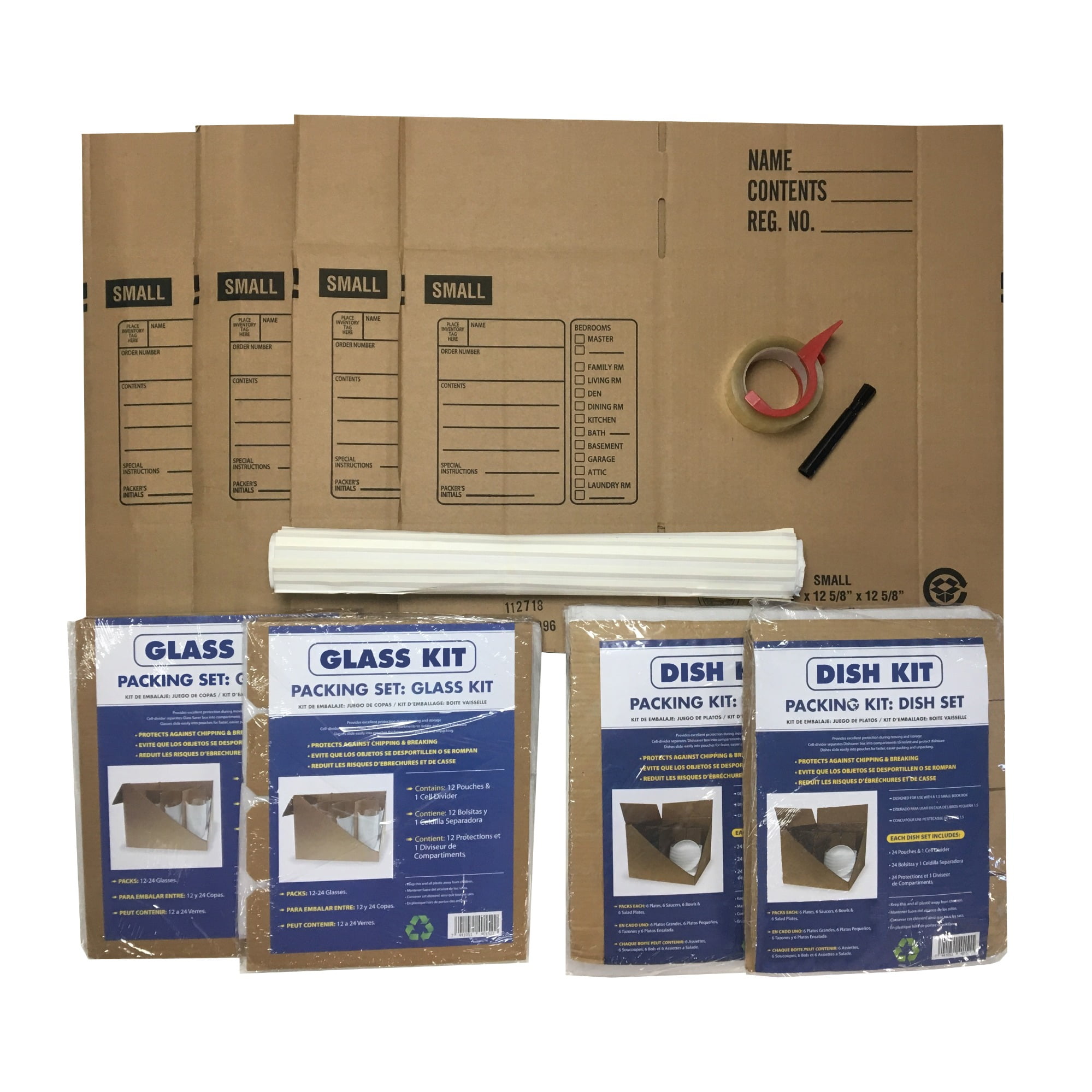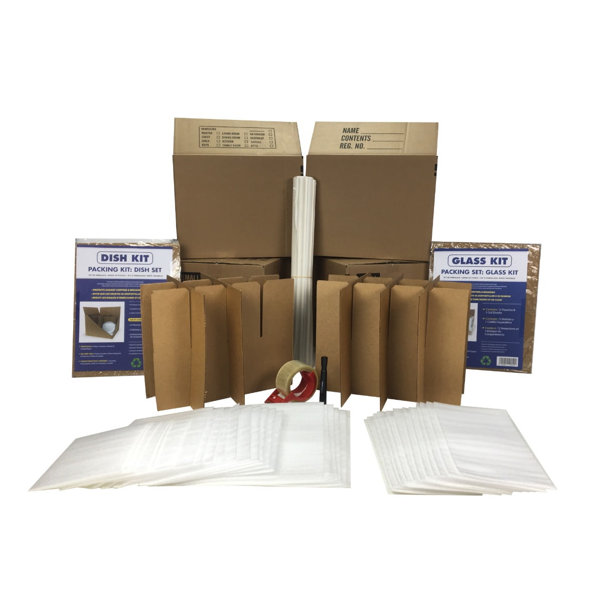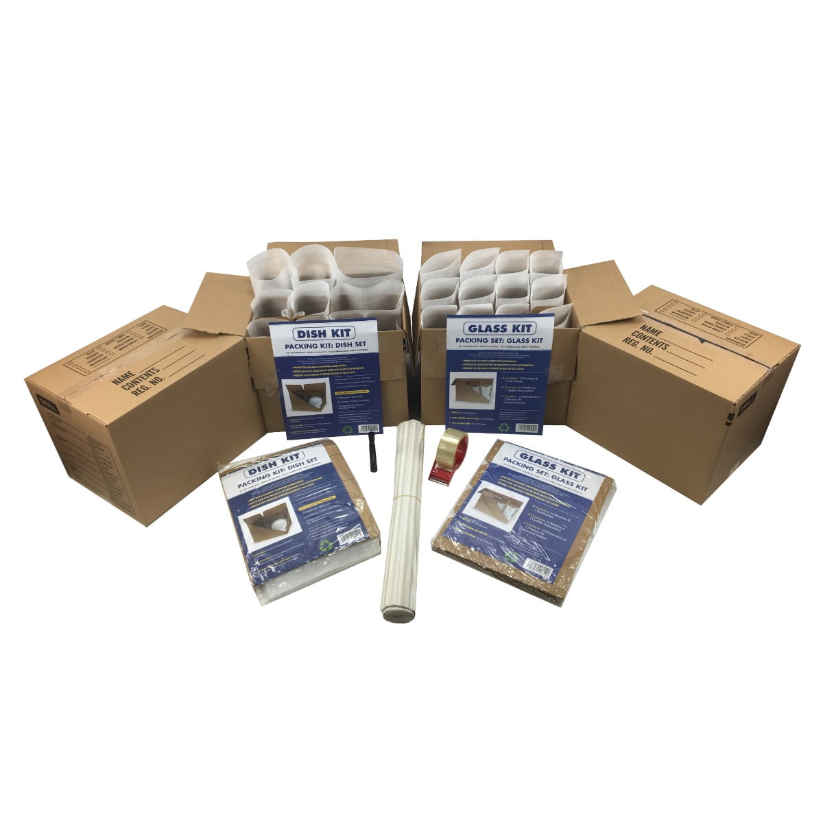 Kitchen Kit has packing supplies to surround and protect glassware, china, and delicate kitchen items Boxes are easy to assemble and compartmentalized dividers to keep kitchen items safe while transporting The dish and glass inserts keep items compact while dividing the separate areas
