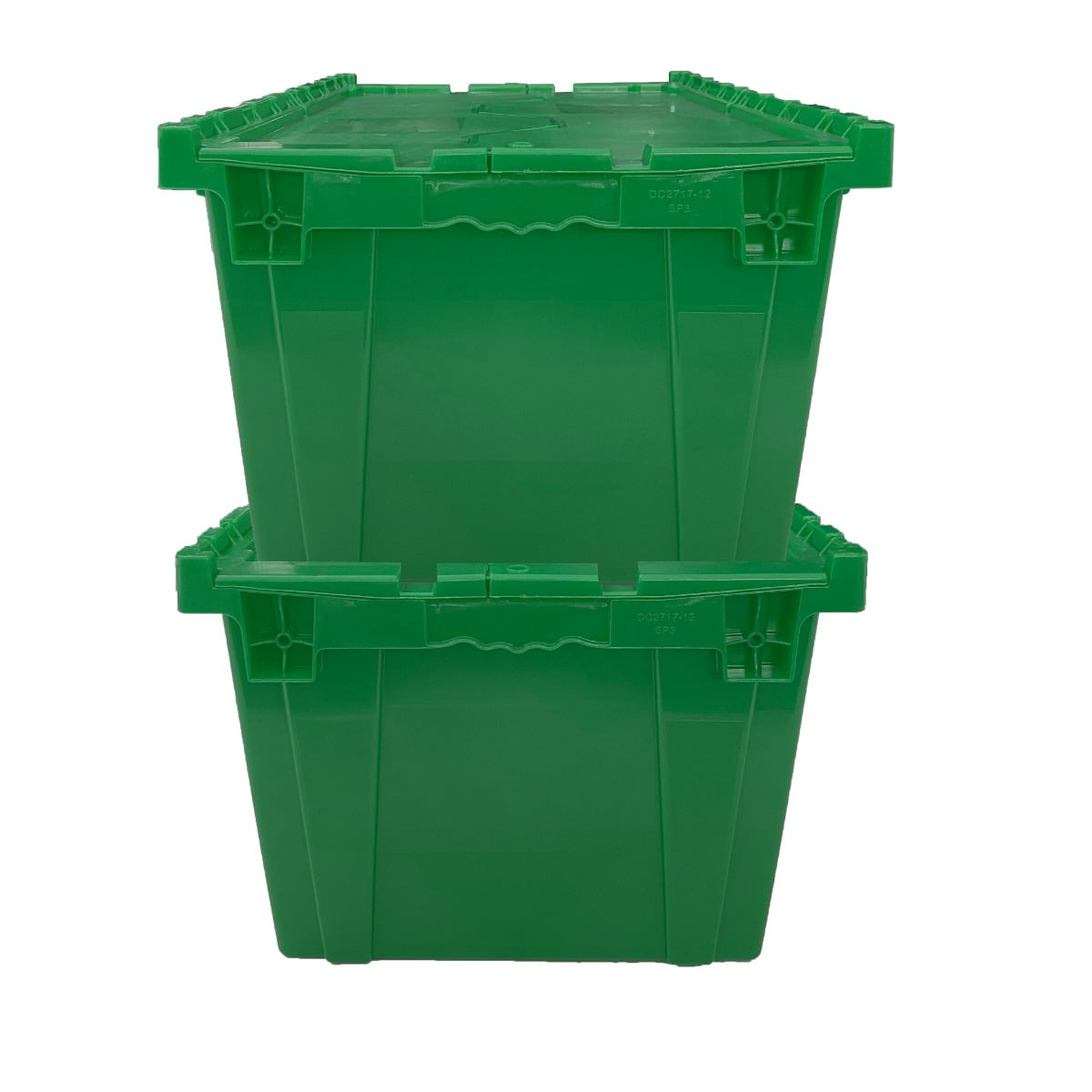 Reusable green plastic storage crates come in a pack of 2, measuring 27″ x 17″ x 12″ each Spacious interior dimensions of 25″ x 14″ x 12″ allow you to store and transport a variety of items, from party supplies to toys, food, and more Crafted with durable, 100% recyclable plastic that resists impact to protect your goods Able to endure up to 100 lbs per 2.0 Cu.Ft. and can be transported by carrying, hand truck, or dolly Stackable design helps you save space and organize your belongings efficiently, whether at home, in the office, or on the go