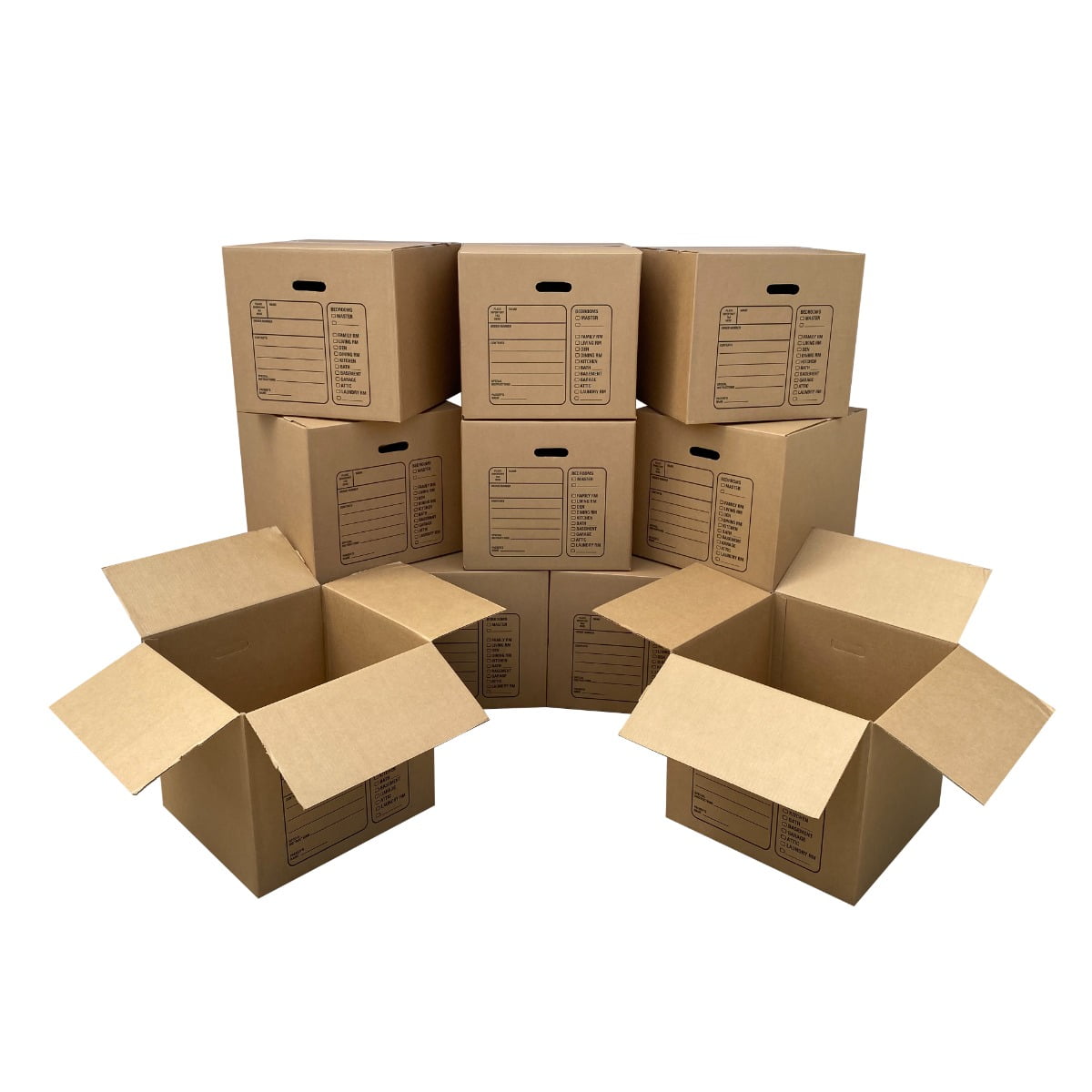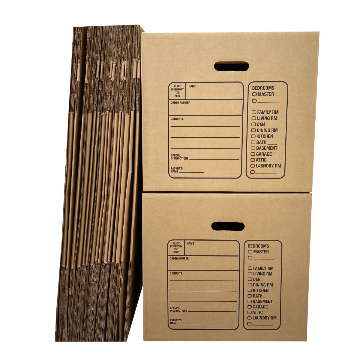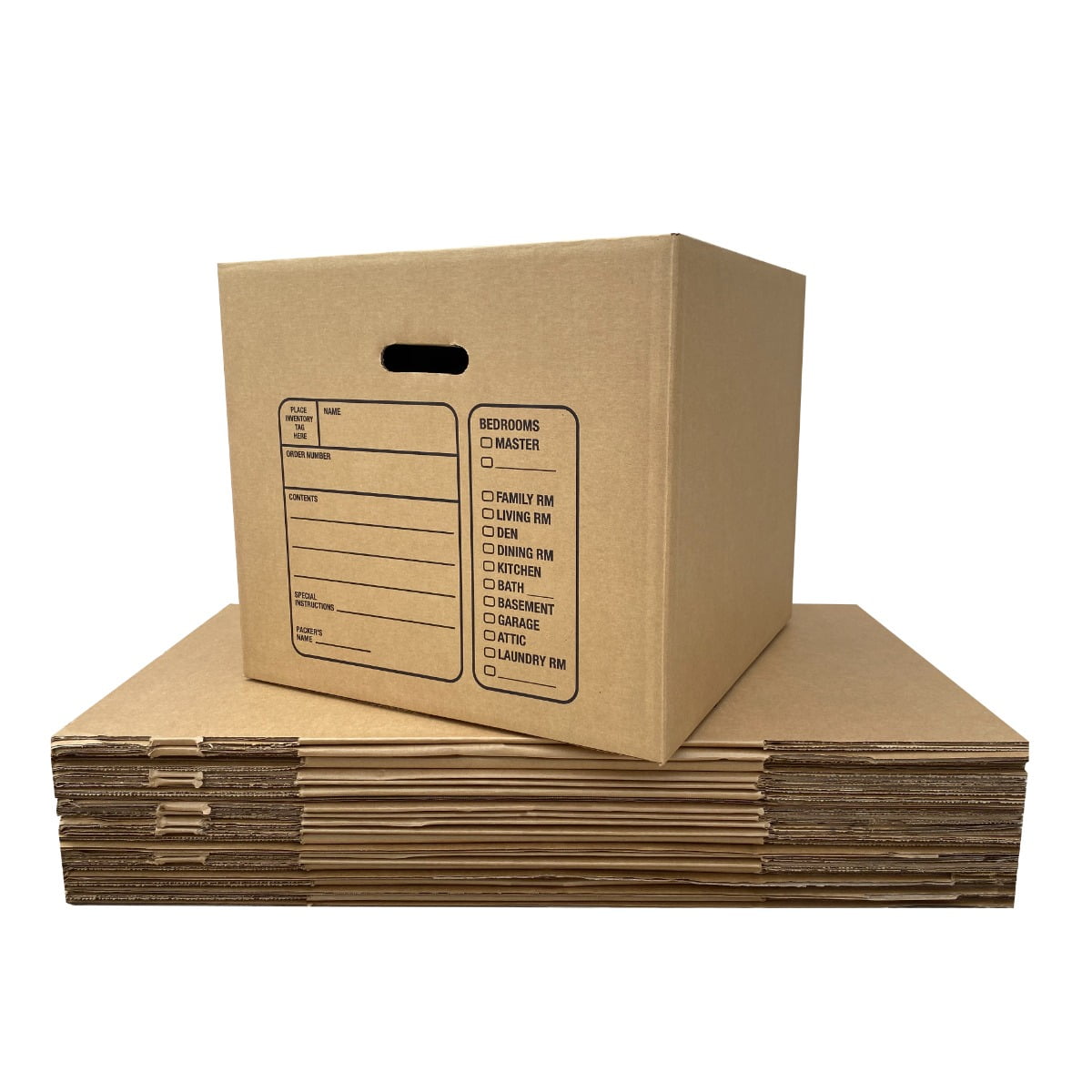 12 Premium Medium Moving Boxes 18″ x 18″ x 16″ Cardboard Box: Made of premium cardboard material Bundle of 12 Dimensions: 18″ x 18″ x 16″ Cardboard moving boxes for home and office use Can store a wide range of items from household knick-knacks to workplace supplies Folds flat for easy storage when not in use 3.0 cu ft box with box content checkboxes on the exterior of the corrugated box to identify items in the box Medium boxes can hold heavier weights without bursting the seams Be sure to use strong acrylic packing tape to seal up the bottom, top, and sides of the boxes Pack all boxes at carrying weights that will not break the boxes or cause injuries to the back When purchasing the same size boxes it is easier to stack on the hand truck and carry to the truck or moving container