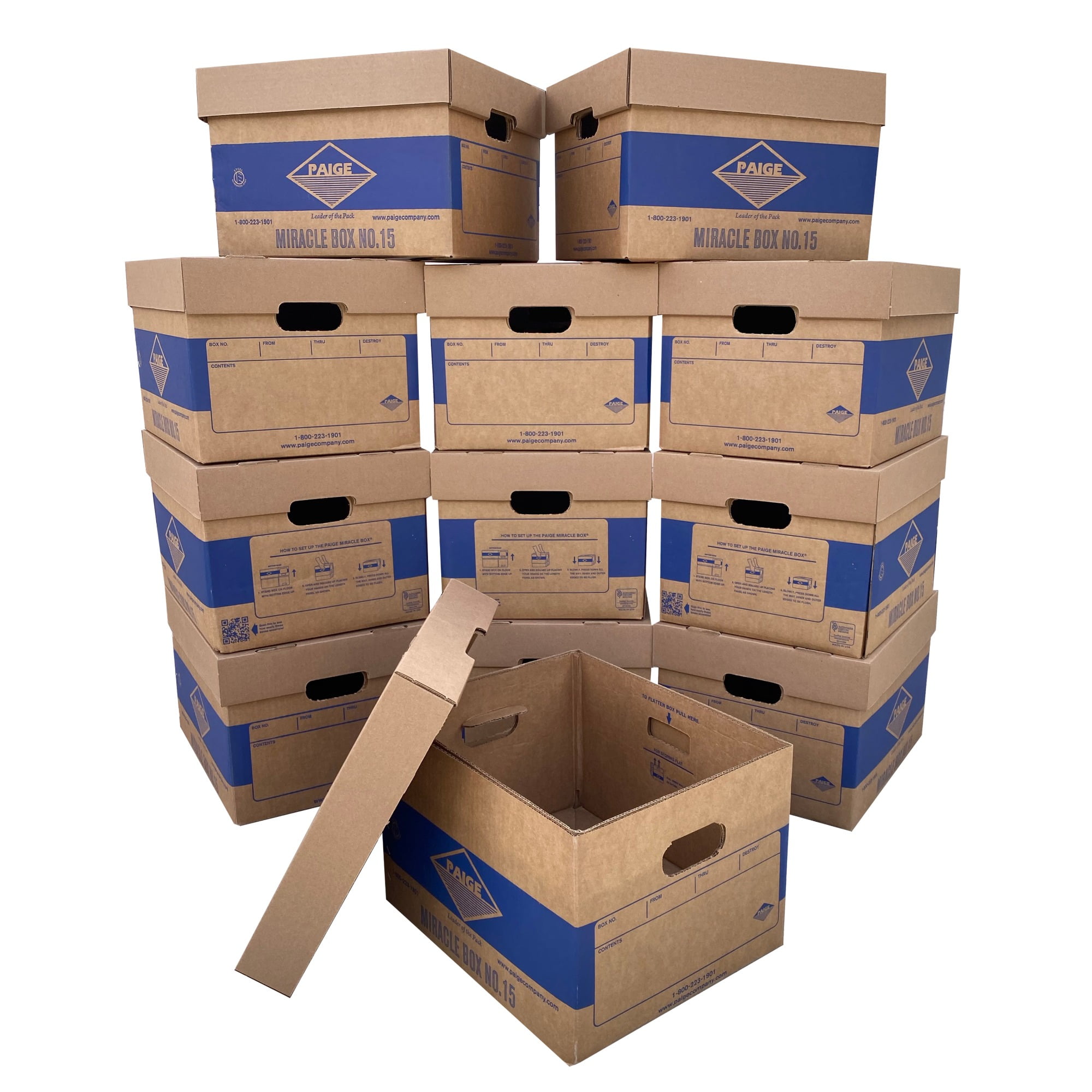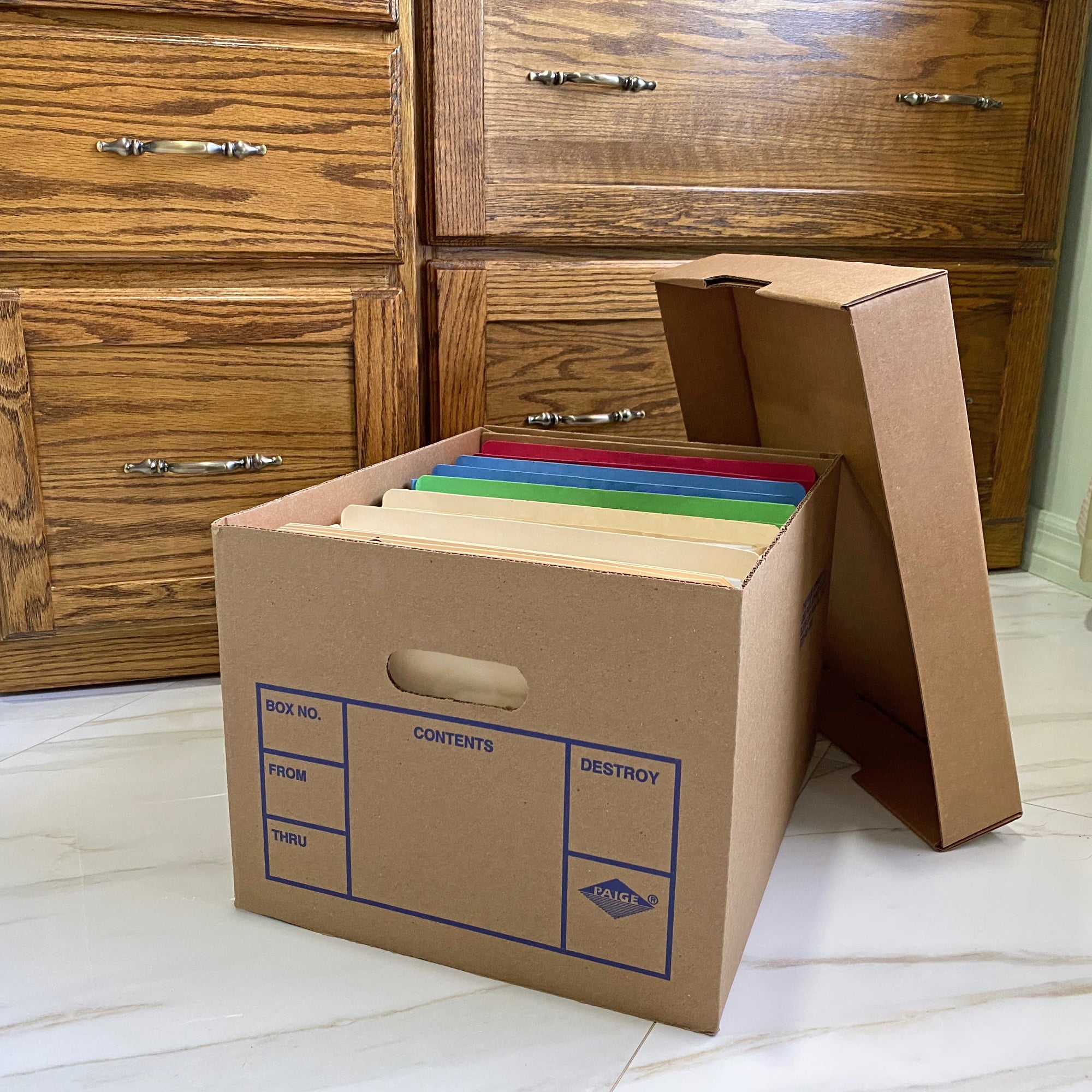 Miracle file boxes which can be folded flat for storage or assembled quickly for use Boxes that are light and comfortable to lift with their strengthen tear-resistant handles Decrease the effect on the environment with boxes made with over 50% recycled material Safely stack numerous miracle file boxes to salvage space within your work area Identify files right away in storage by writing its contents on the exterior of the box