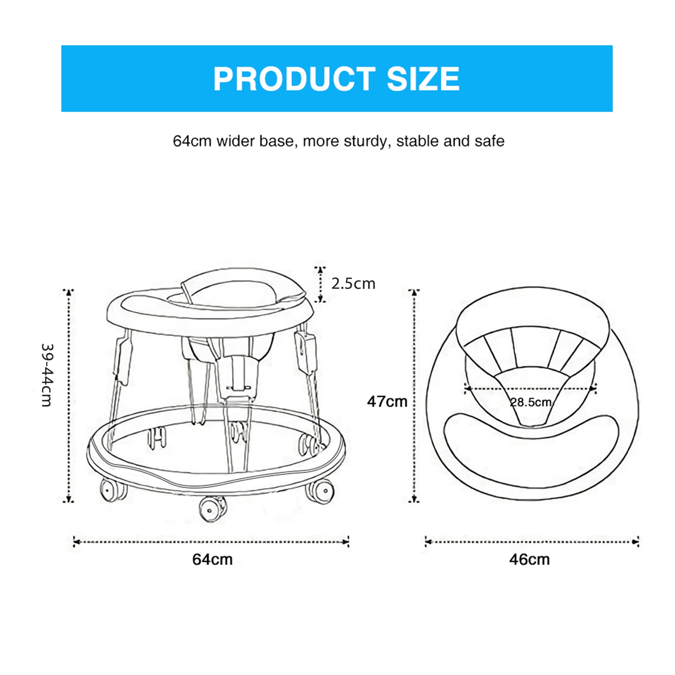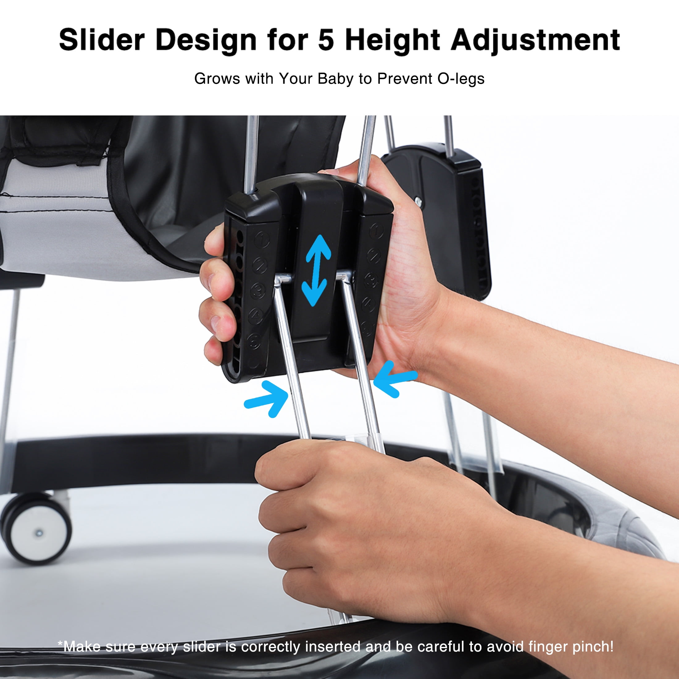 Every Moment Together Counts: Ubravoo is devoted to planning fun activities when our products are in use, which helps you create a meaningful family moment, allows your baby build their confidence and learn to walk. With a little bit of effort, you can turn bonding into a lifetime of funny, sweet stories and lasting memories. Height Adjustment: Slider Design for 5 Height Adjustment enable finer height adjustment when used with sliders, and the metal pin design for seat pad adjustment that grows with your baby to prevent O-legs. Silent & Smooth wheels: The round design walker with 6 silent and smooth universal wheels, allow your baby move around in any direction on wooden floor as well as on carpet. Double Secure Assurance: Protective sleeve covered to prevent your baby from plunging its feet into the gap of brackets. and tied the included safety belt to baby waist and seat to prevent baby from slipping or falling off baby walker. Foldable & Compact: The lightweight baby walker with a folded height of 4.5”, which means you can take it anywhere and store it easily, even suits for the trunk. Our baby walkers will help your child learn to walk with more confidence and allow them to embrace the wonderful world.