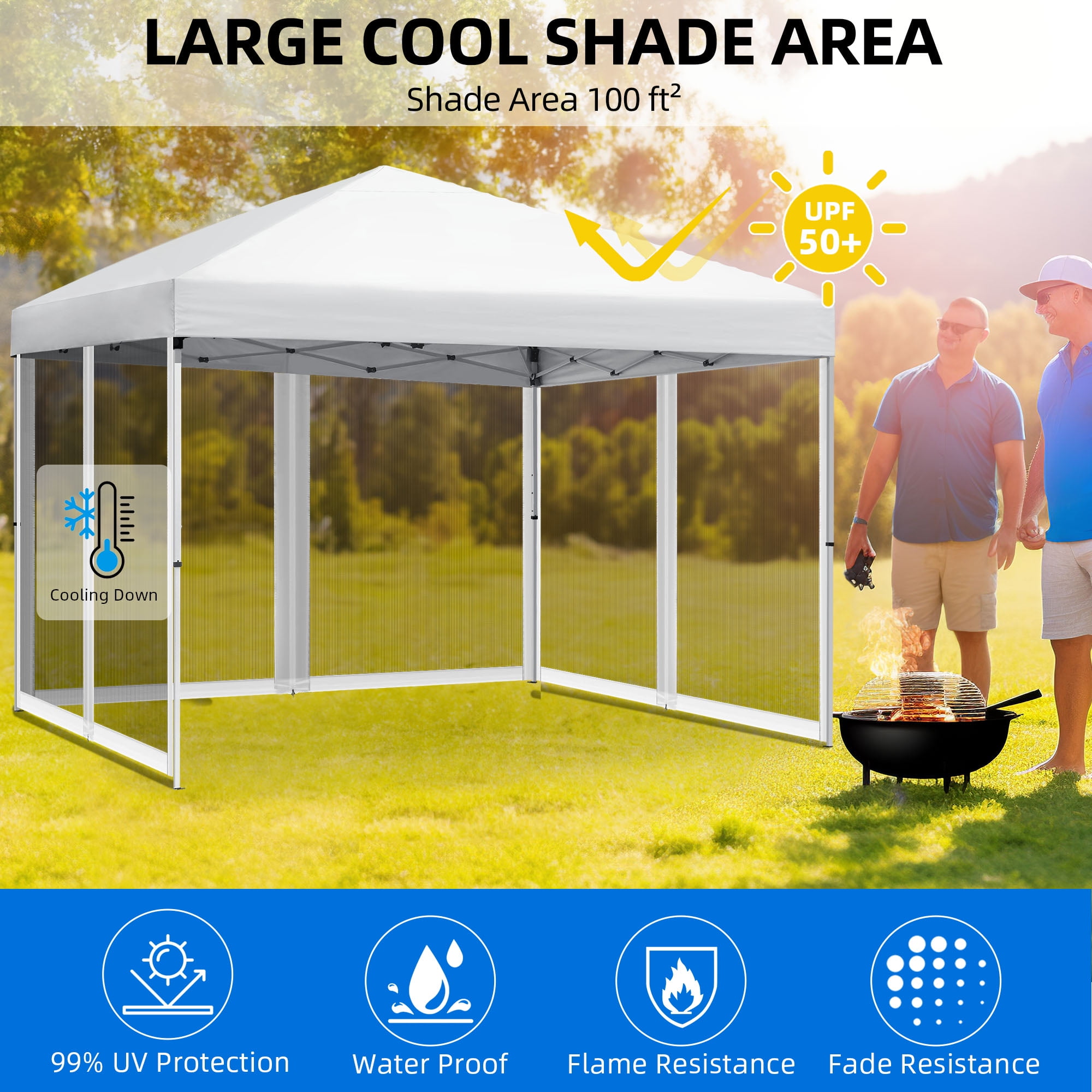 Uforic 10 ft x 10 ft Easy Pop Up Outdoor Patio Canopy Tent with Netting,4 Ropes,8 Stakes and 1 Carry Bag – White
