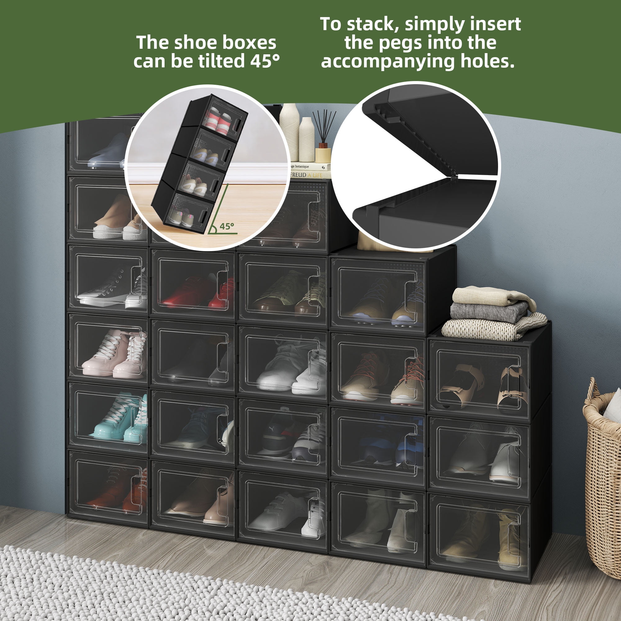 Uforic 24-Pack Stackable Shoe Storage Boxes with Lids, Ventilated Plastic Shoe Organizer, Fits Up to US Size 13, Black