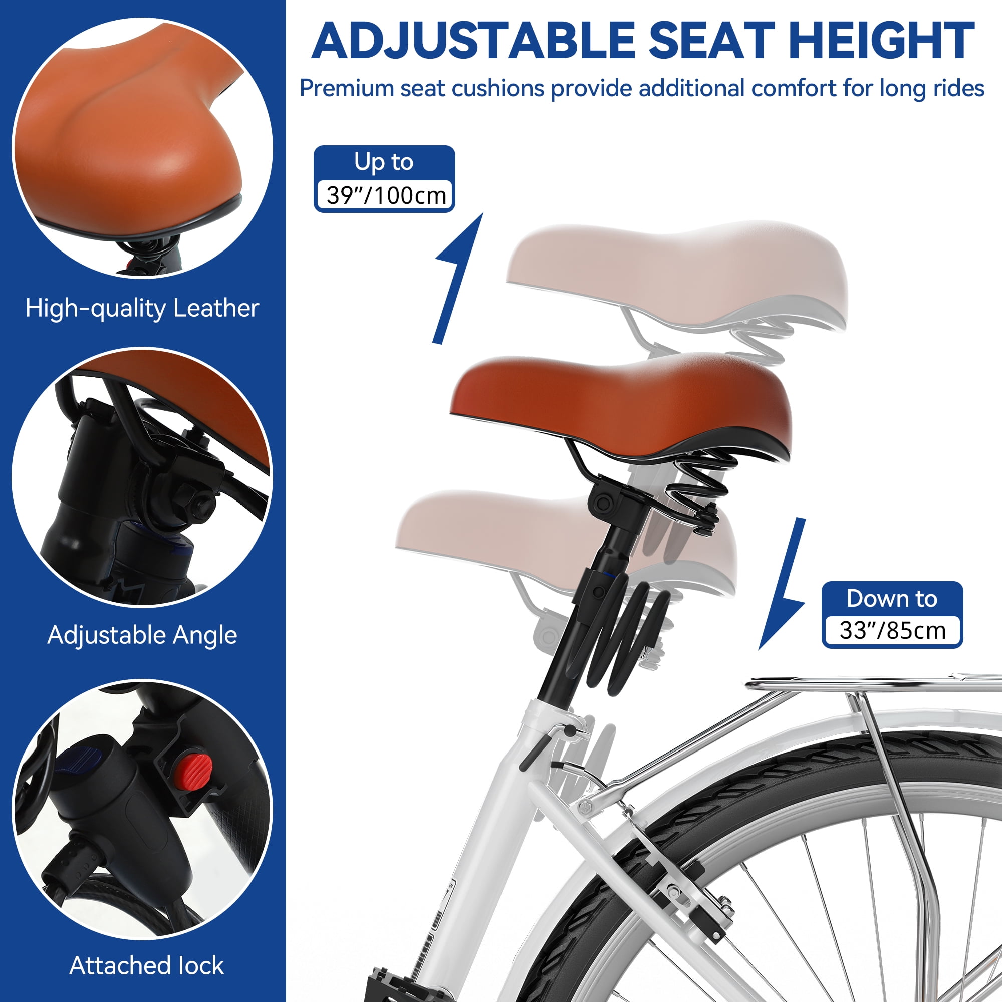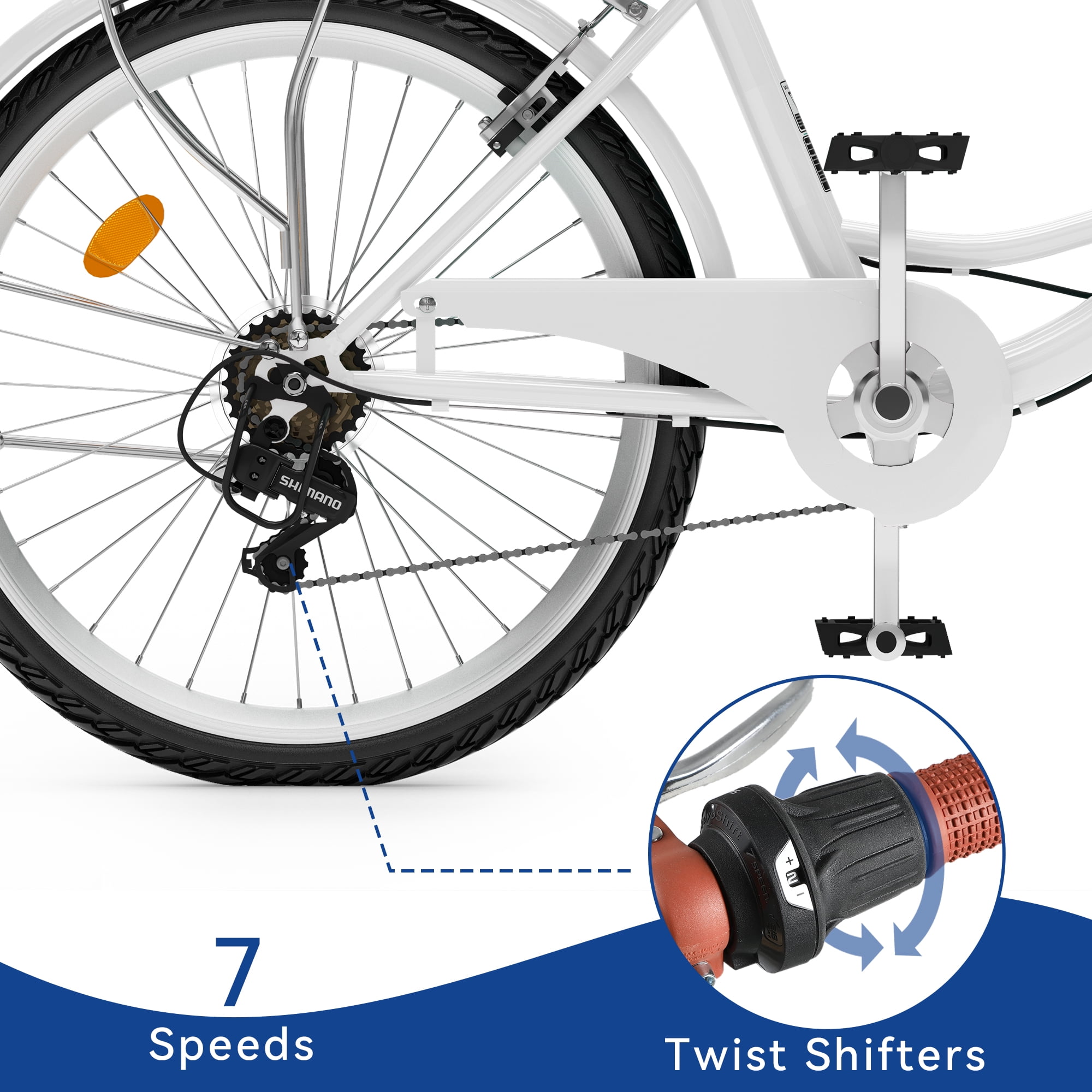 Uforic 26″ 7-Speed Beach Cruiser Bike for Adults – Adjustable Seat in White