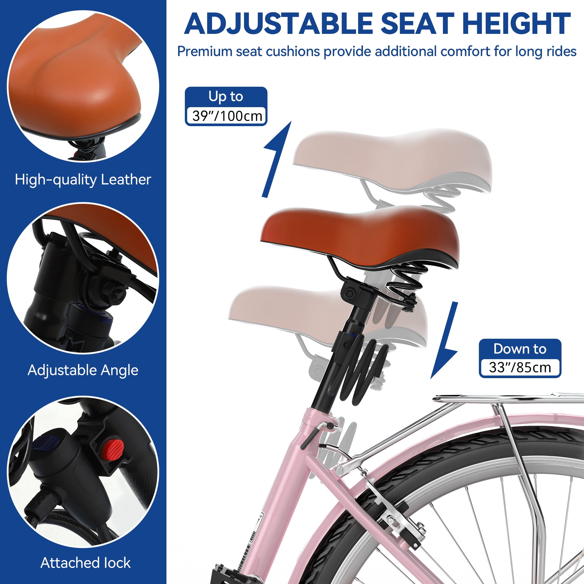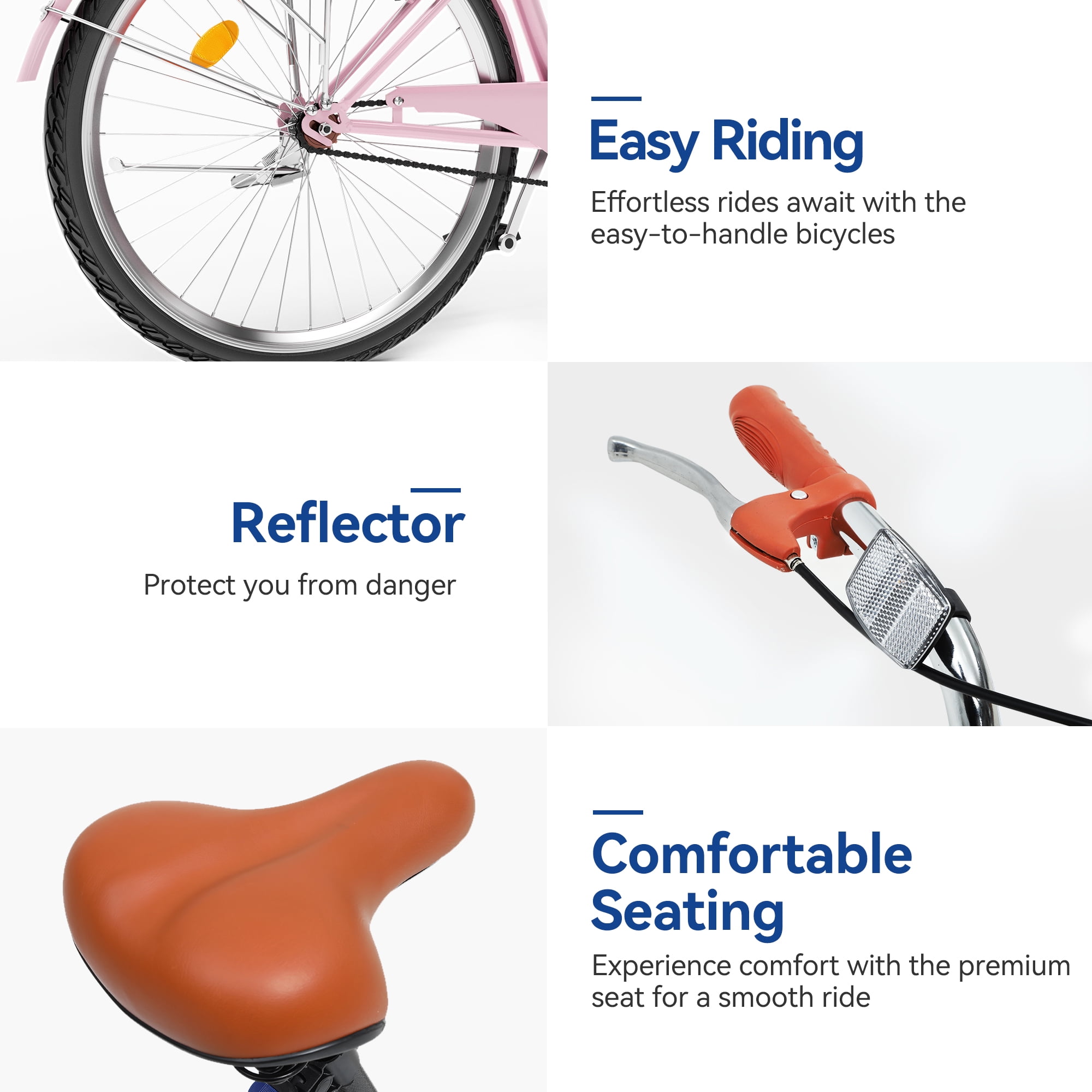 Uforic 26” Beach Cruiser Bike for Adults – 1-Speed Commuter Bicycle, Adjustable Comfort Seat in Fresh Pink – Easy-Ride Design