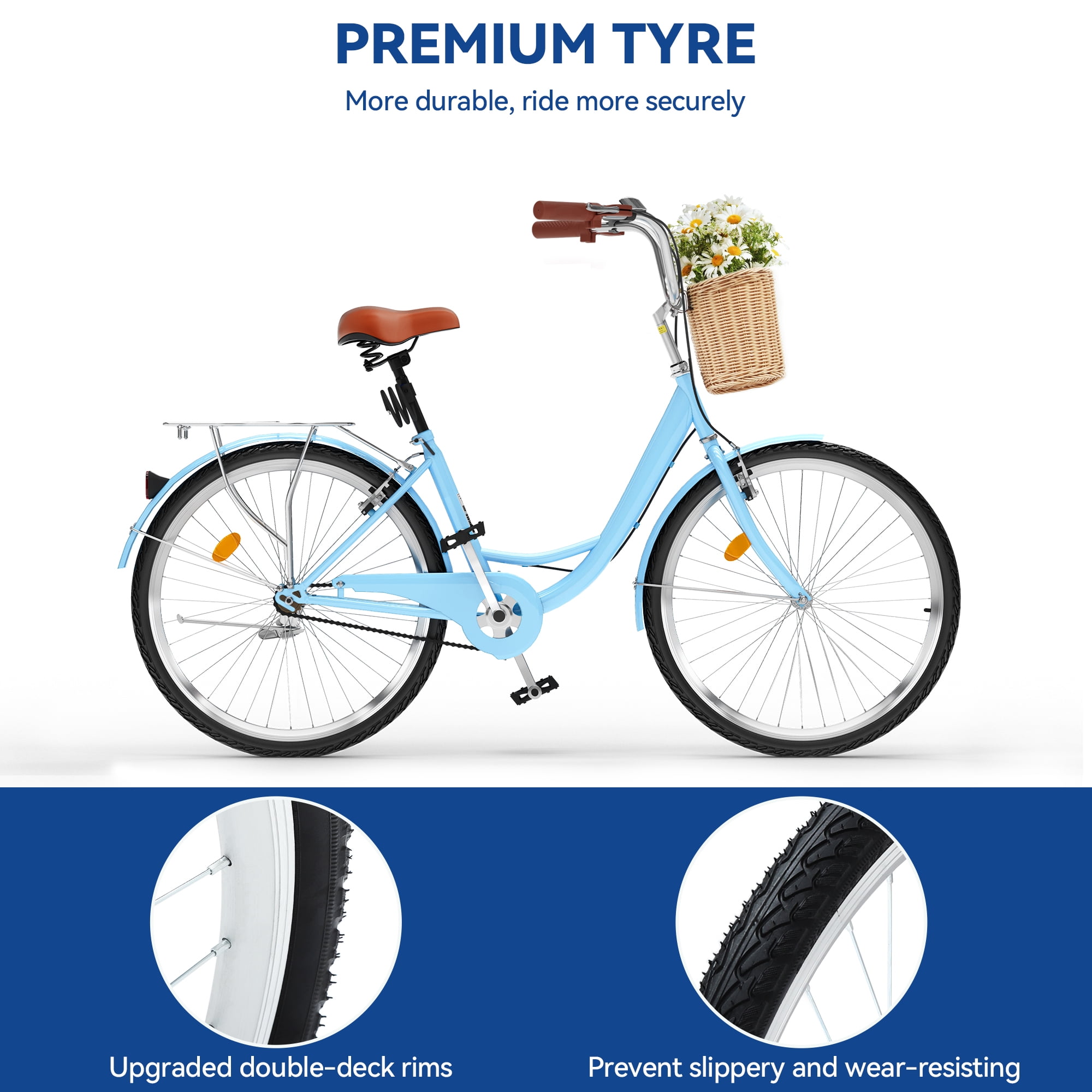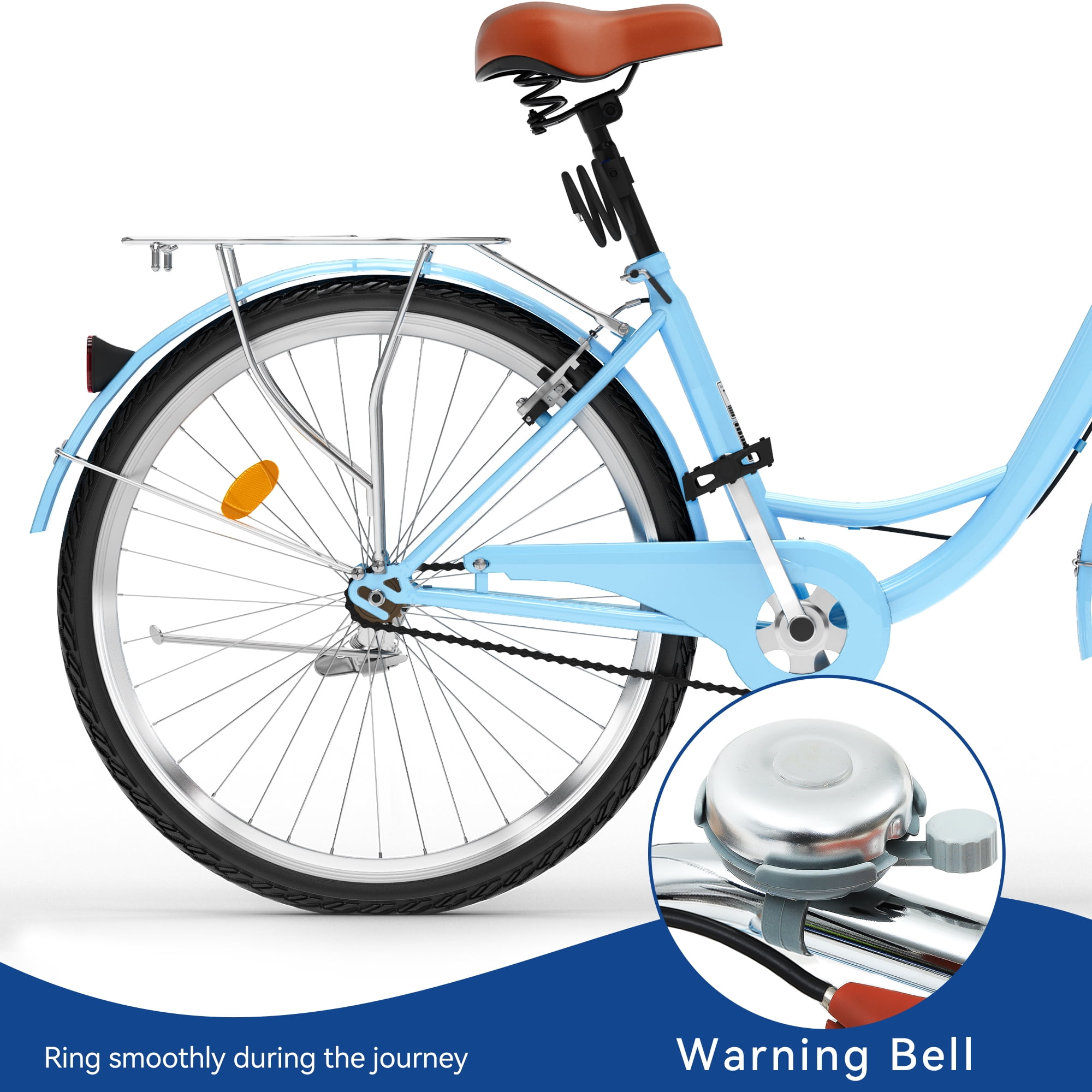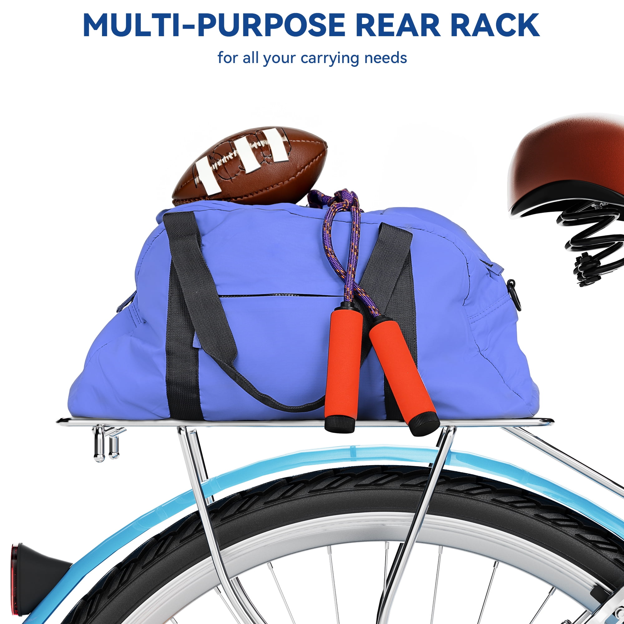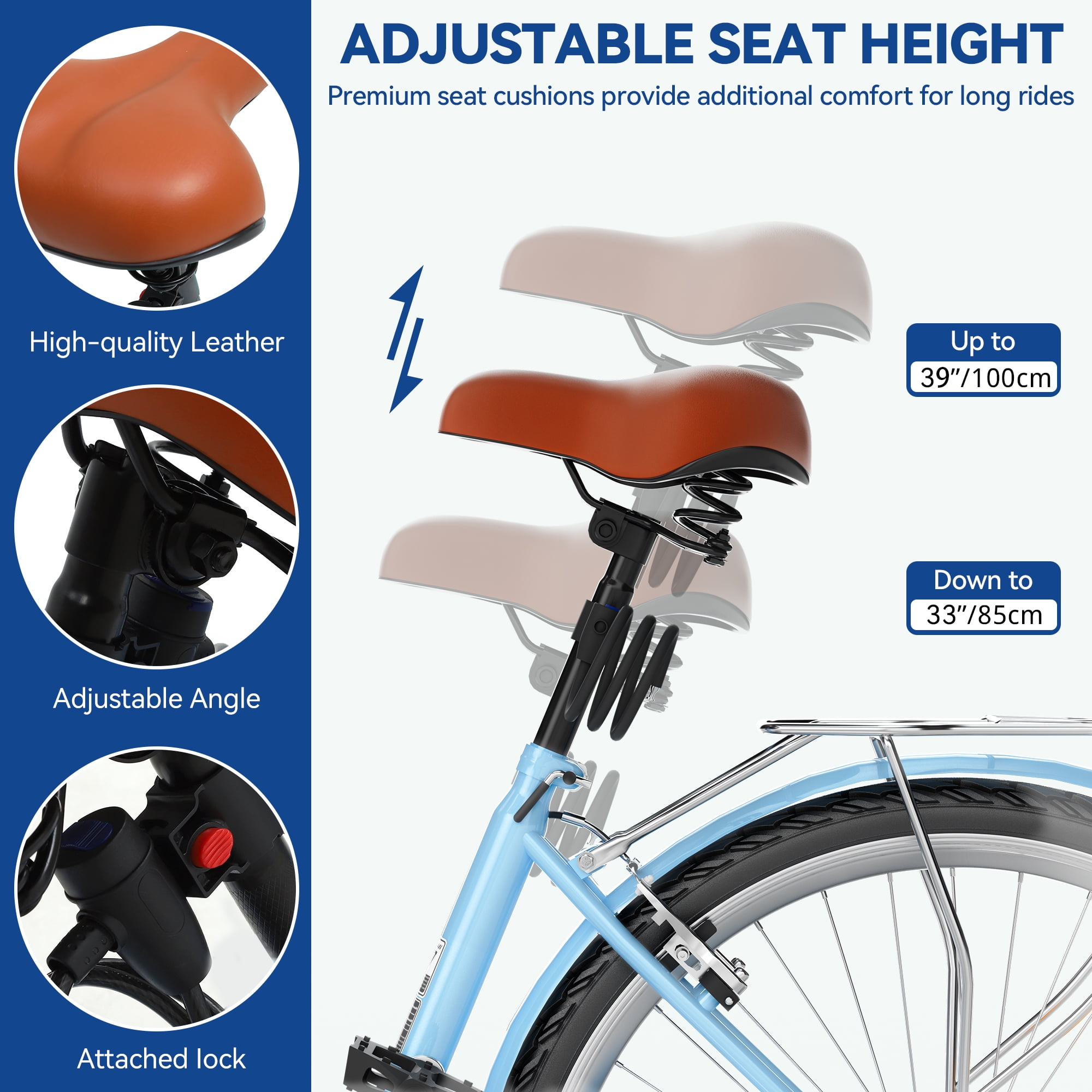 Uforic 26″ Beach Cruiser Bike for Adults – Single-Speed, Adjustable Seat in Light Blue