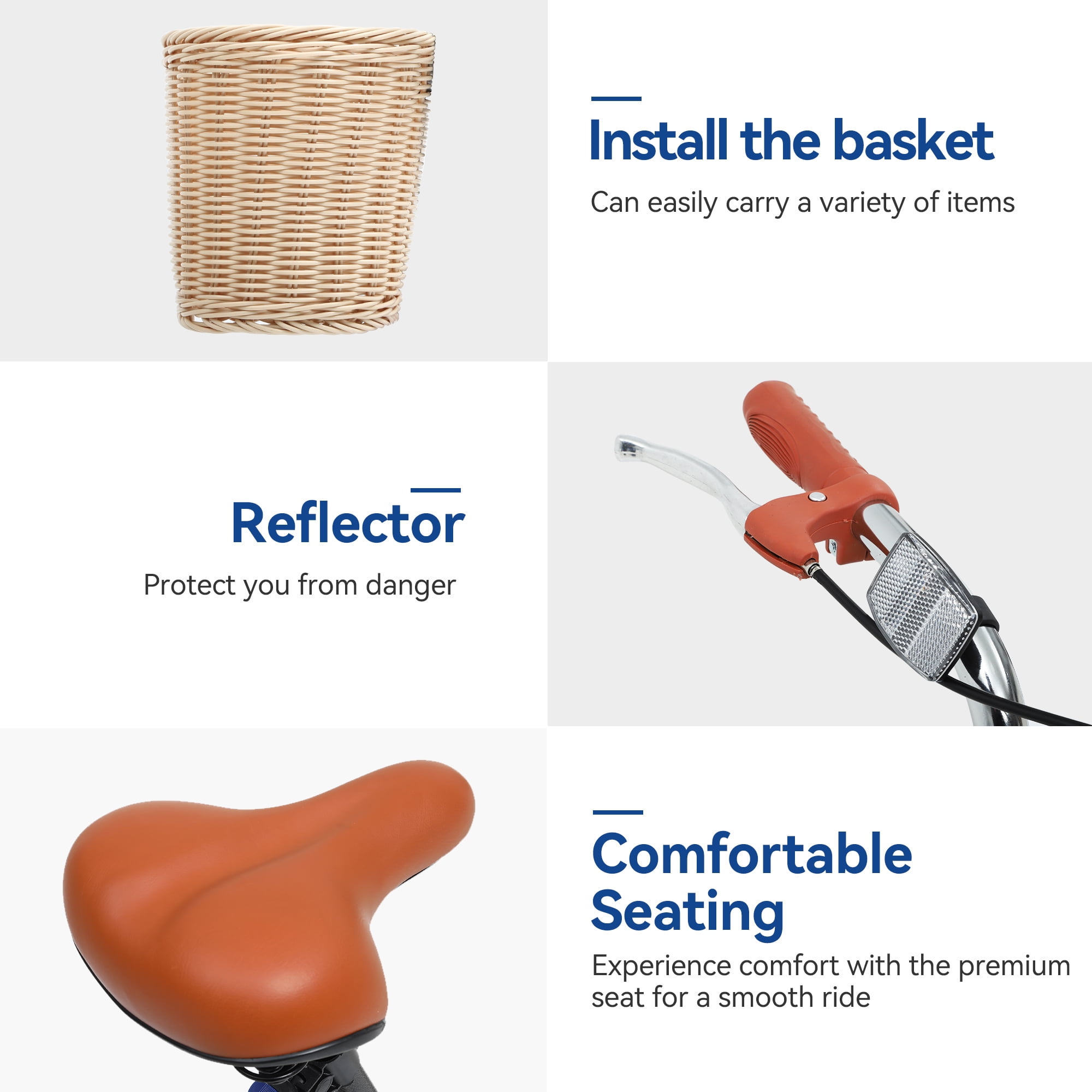 Personalized Riding Experience: Tailor your ride with an adjustable seat height, ensuring maximum comfort for riders of all levels. Ultimate Comfort on the Road: Enjoy a relaxed riding position and effortless cruising thanks to a design focused on rider comfort. Enhanced Performance and Stability: Equipped with premium tires and double-layered rims, the Beach Cruiser Bike delivers reliable performance and superior stability for a comfortable journey. Timeless Classic Beach Cruiser Bike: Experience the perfect blend of style and simplicity with a sleek and curved frame design that exudes elegance. Effortless Single-Speed Riding: Designed for casual rides on even terrain, the single-speed configuration offers a smooth and uncomplicated biking experience. Age Group : Adults