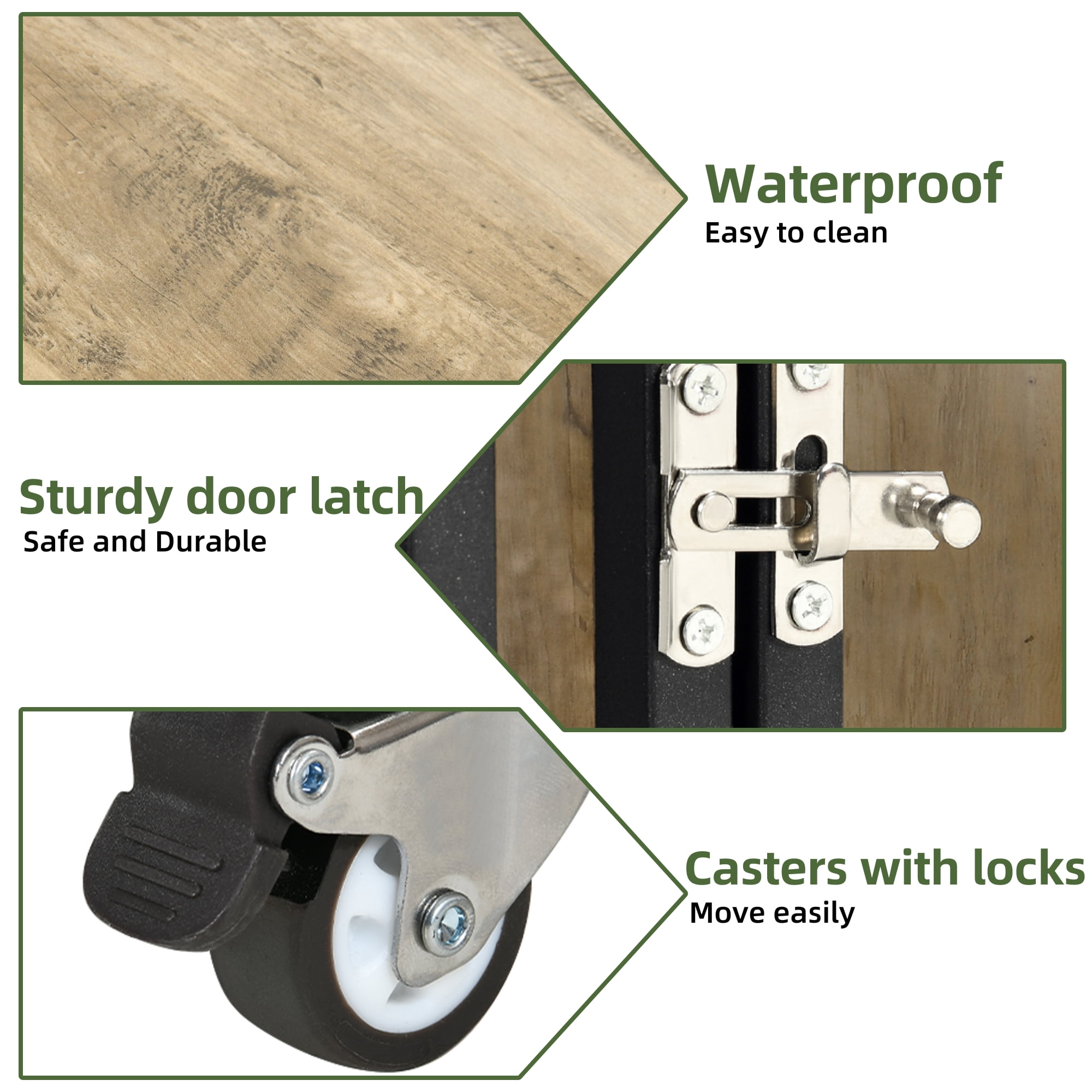 Choose the Right Size for Your Pet: With dimensions of 38″L x 26″W x 29″H and a top load capacity of 280 lbs, this wooden dog crate is designed to accommodate various dog sizes. Please measure your dog before purchasing to ensure optimal accommodation and comfort. Mobility and Flexibility: The built-in 360° lockable wheels make it easy to move the dog kennel around your home, offering flexible placement to suit your preferences. The wheels can be locked to secure the dog crate in place when needed. Versatile Dog Crate and Furniture: This multi-purpose dog haven serves as both a secure dog crate and an elegant end table or bedside cabinet. Enhance your living space by using it as a decorative piece and adding lovely decors to enliven your home. Simple Maintenance and Cleaning: The bottom plastic tray catches crumbs, loose fur, and spills, keeping your dog’s area tidy and your floors clean. For a cozy touch, place a soft cushion on the tray to provide your pet with a comfortable, flat surface to relax on. Durable and Corrosion-Resistant Steel: Constructed with a 0.6-inch diameter corrosion-resistant steel tube, this metal dog cage is significantly stronger than fine wire cages. It’s designed to be sturdy and suitable for strong, powerful, and aggressive dogs. The multi-layered protective non-toxic coating ensures your dog’s health, even if they bite or lick the cage frame.