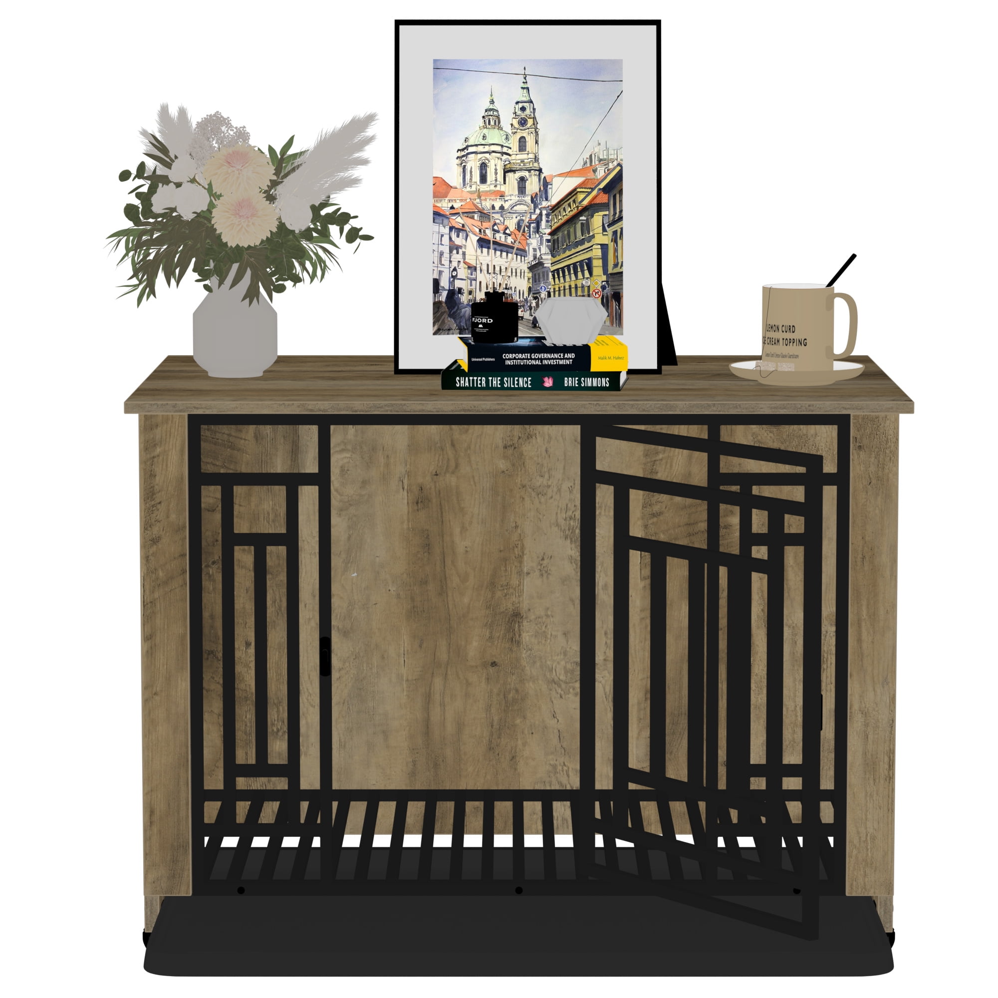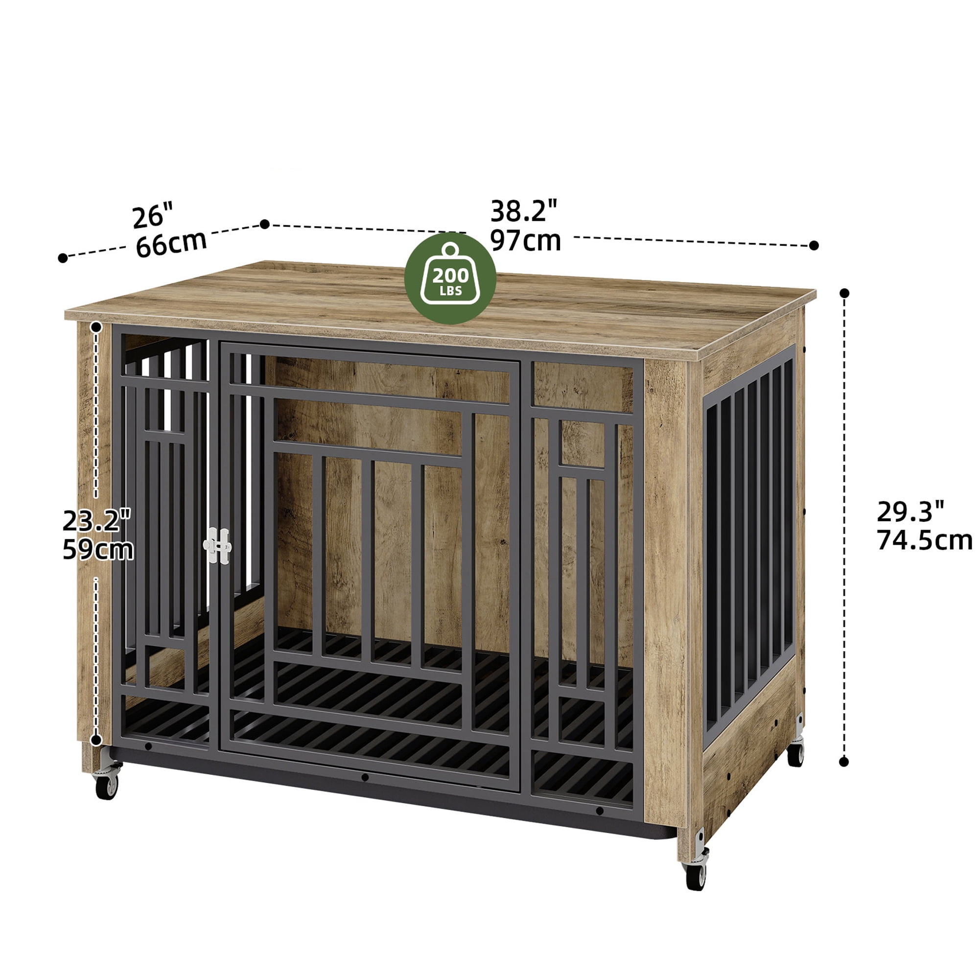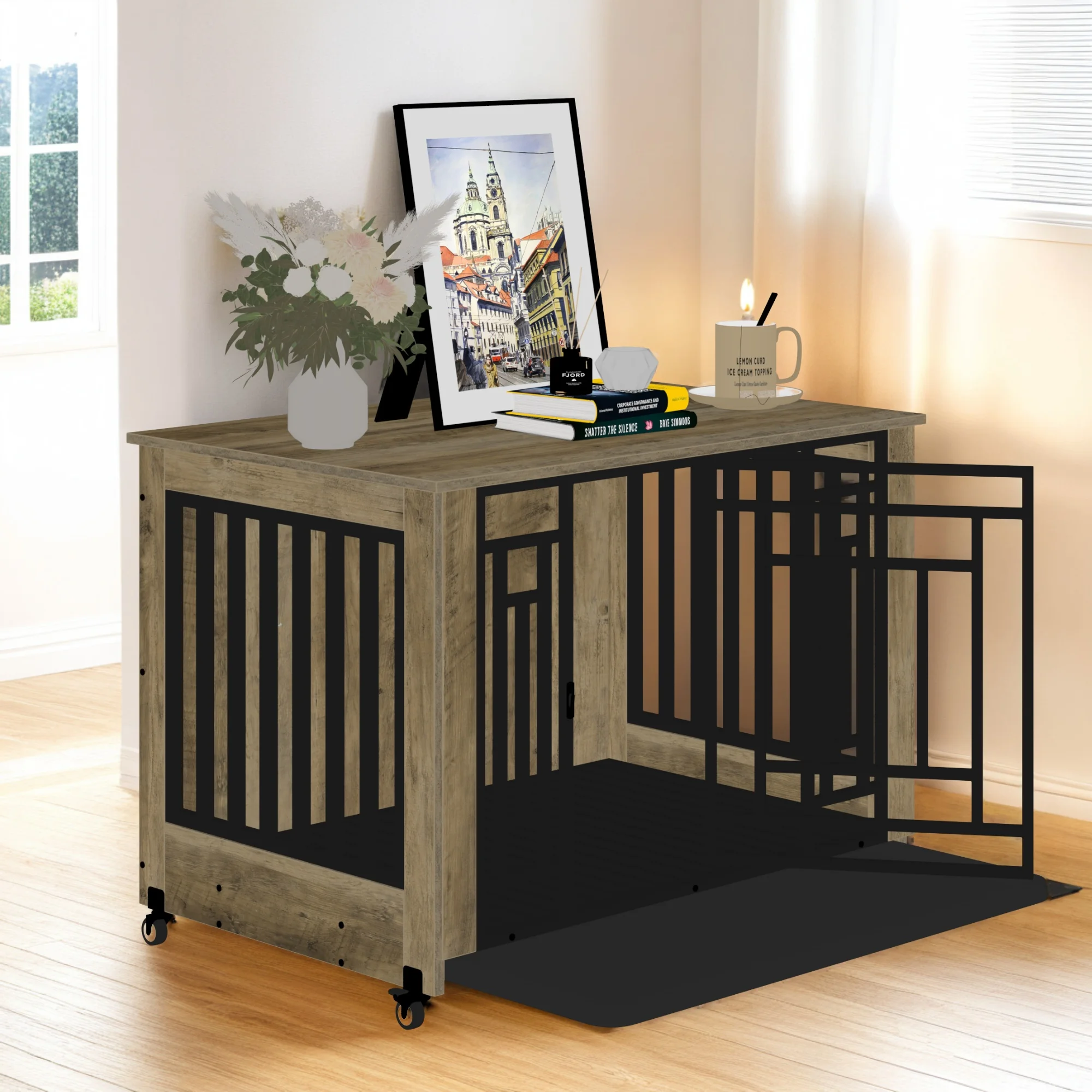 Uforic 38-Inch Dog Crate Furniture with Wheels, Heavy Duty Wood Dog Kennel with Removable Tray