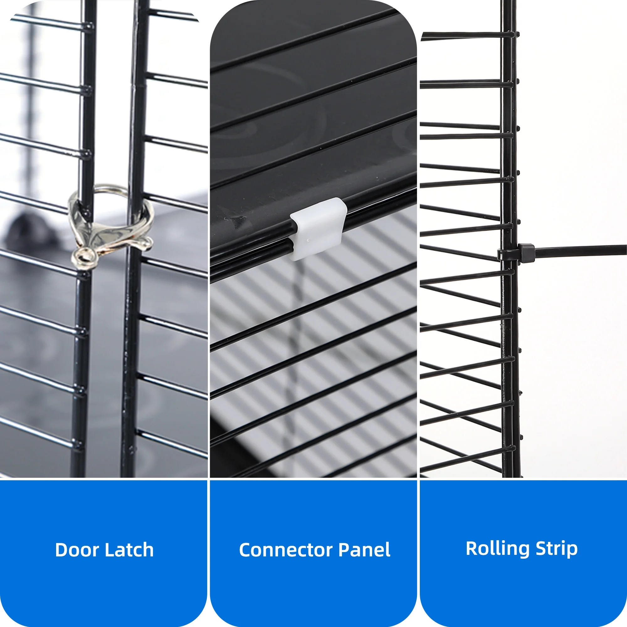 Uforic 4 Tier Large Cat Cage,Indoor Cat Enclosure with Extra Large Hammock,DIY Cat Playpen Metal Kennel for 1-4 Cats,55″L x 55″W x 55″H,Black