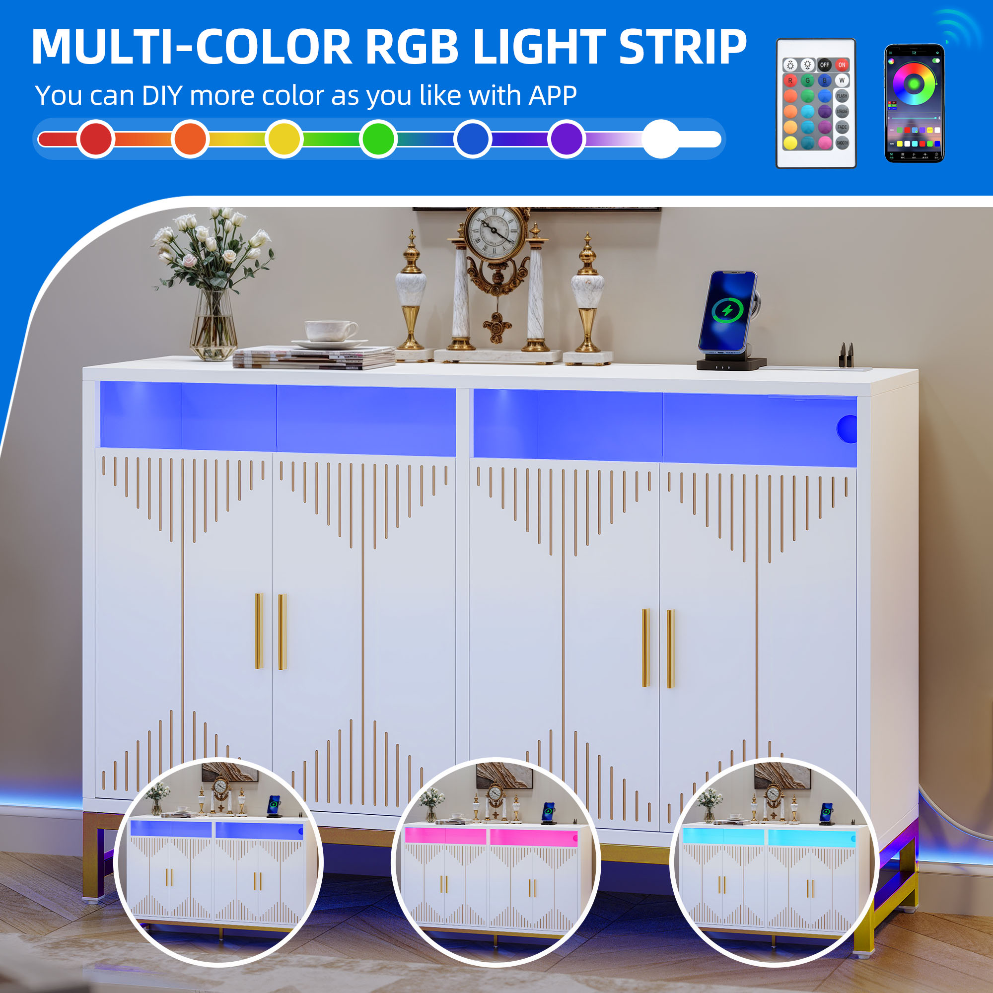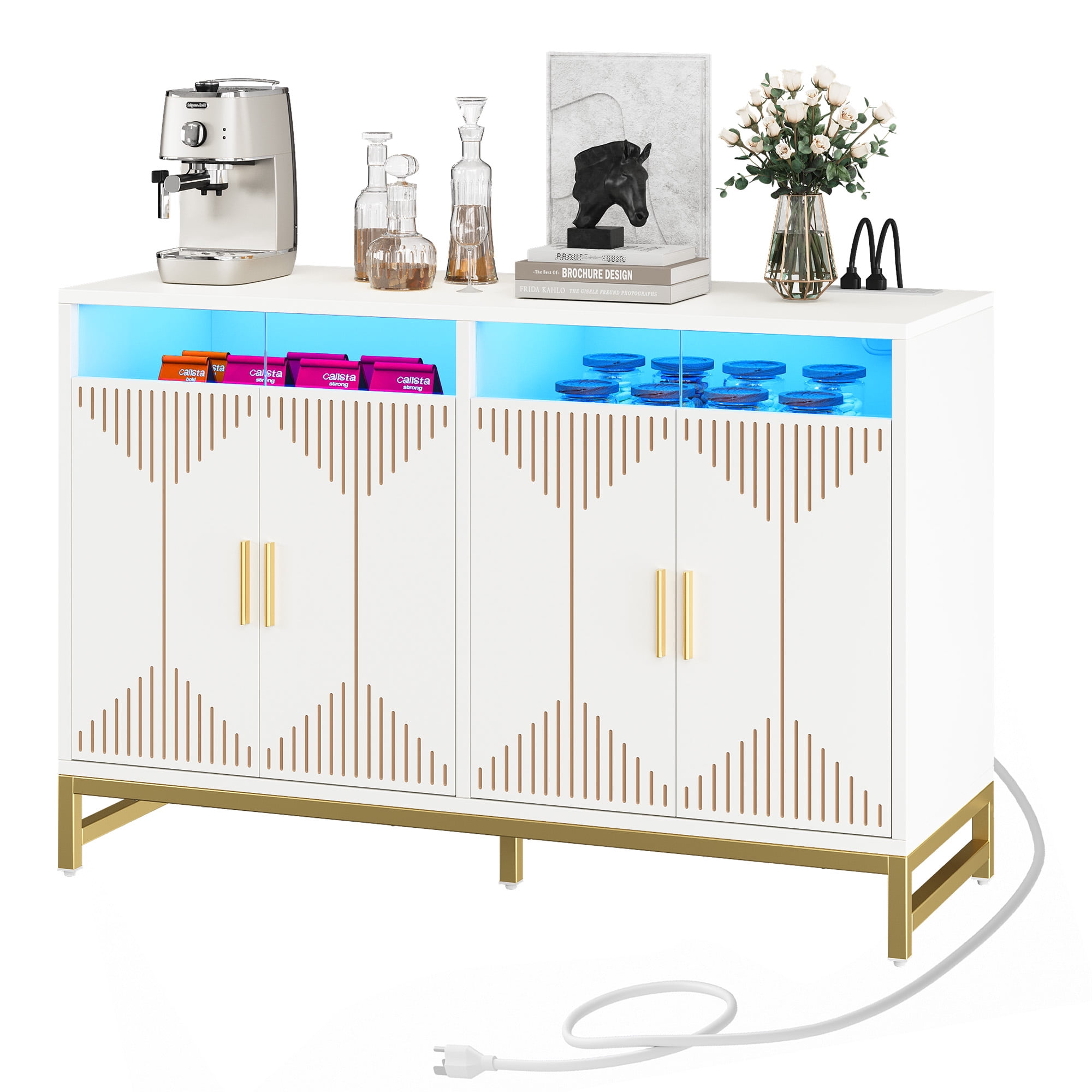 Uforic 47″ Buffet Sideboard Cabinets with LED Light, Modern Coffee Bar Cabinet with Power Outlet, Kitchen Storage Cabinet with 4 Door & Open Storage, Accent Cabinet Cupboard Console Table