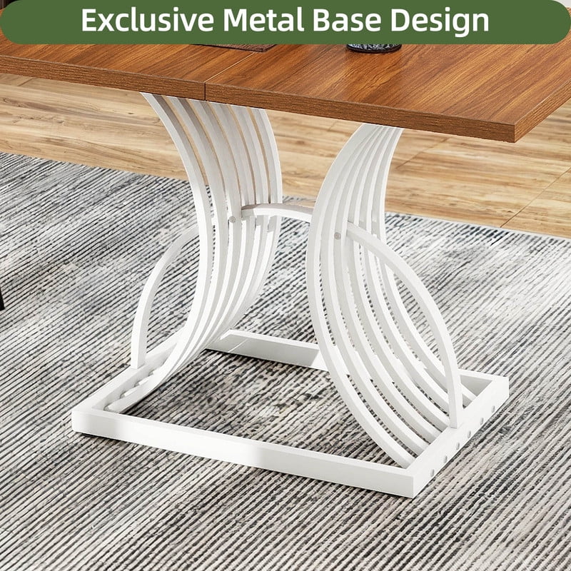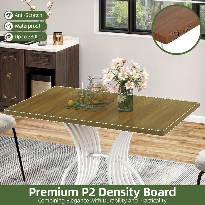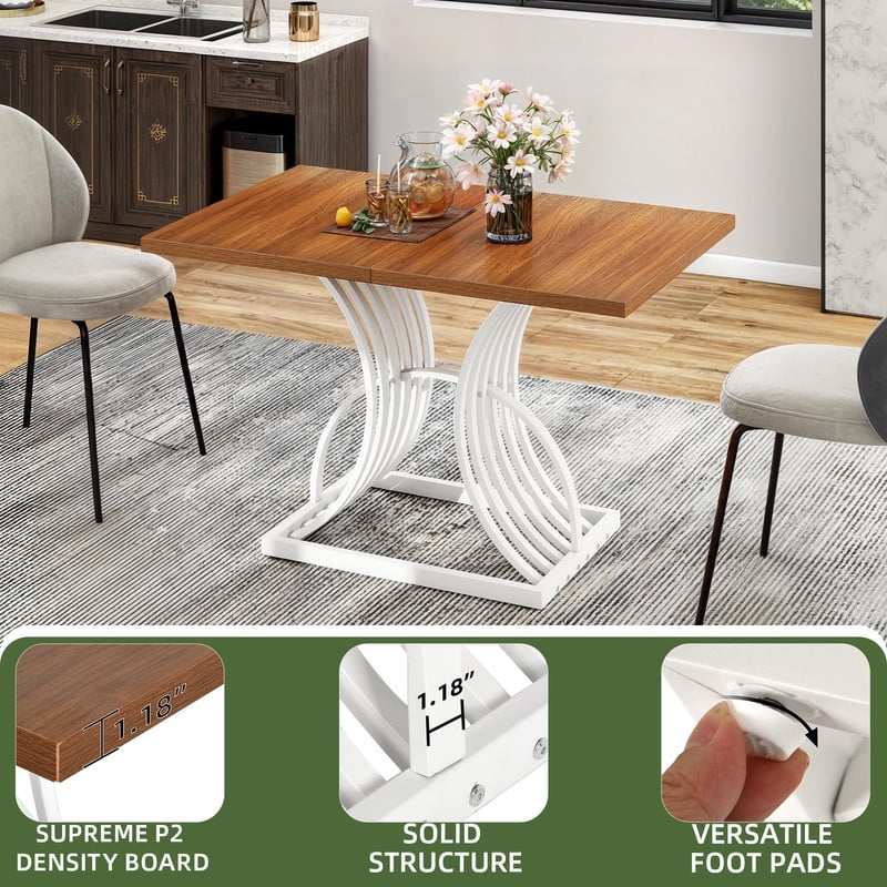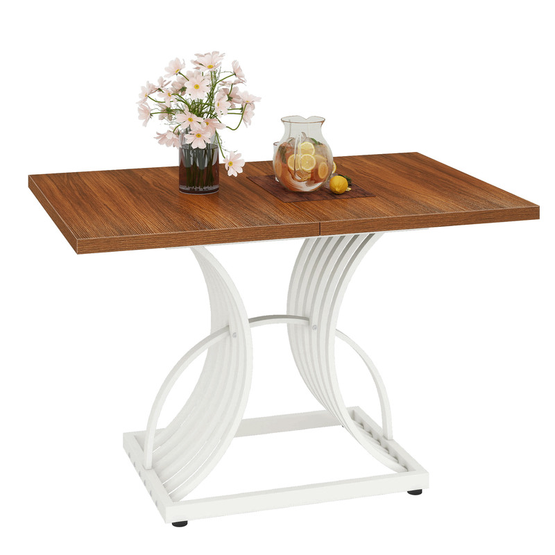 Spacious for 4: This dining table comfortably seats 4, making it great for daily family meals or cozy get-togethers with friends. Its generous size provides plenty of room for dishes and decor, turning each meal into a delightful, shared experience. Artistic Design: The table’s standout feature is its arc-shaped base, adding a sophisticated touch to your home. This thoughtful design isn’t just for looks – it provides great support while reflecting your distinct, stylish taste in home decor. Built to Last: Engineered with a strong metal frame and a thickened wooden top, it is designed for longevity. The adjustable foot pads not only enhance stability but also protect your floors, details make difference! Versatile for Any Space: Whether it’s in the dining room, kitchen, or outside for a sunny gathering, this table adapts beautifully to any setting. It easily transitions between indoor and outdoor use for all occasions. Quick & Simple Assembly: No need to stress over setup. With all parts pre-marked, tools included, and easy-to-follow instructions, you can have this 47-inch table ready soon, leaving you more time to enjoy your stylish new centerpiece.