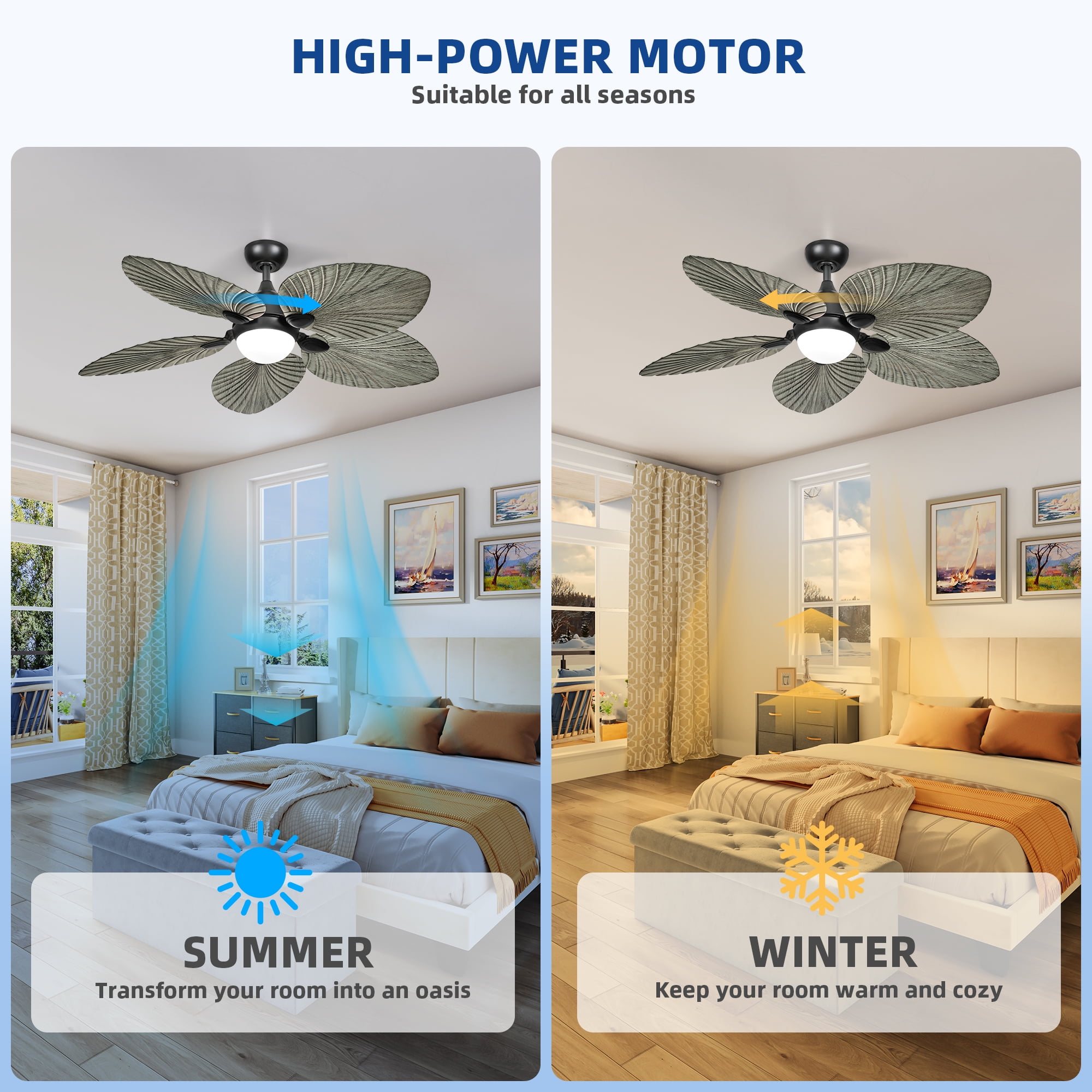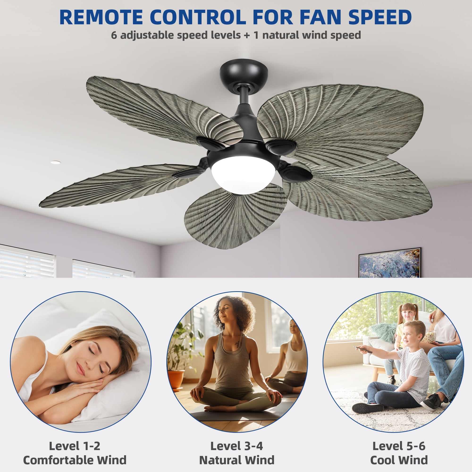 Uforic 52″ 5-Blade Tropical Ceiling Fan with LED Light & Multi-Functional Remote, 6 Quiet DC Motor Speeds, Reversible for Indoor and Outdoor Spaces, Gray