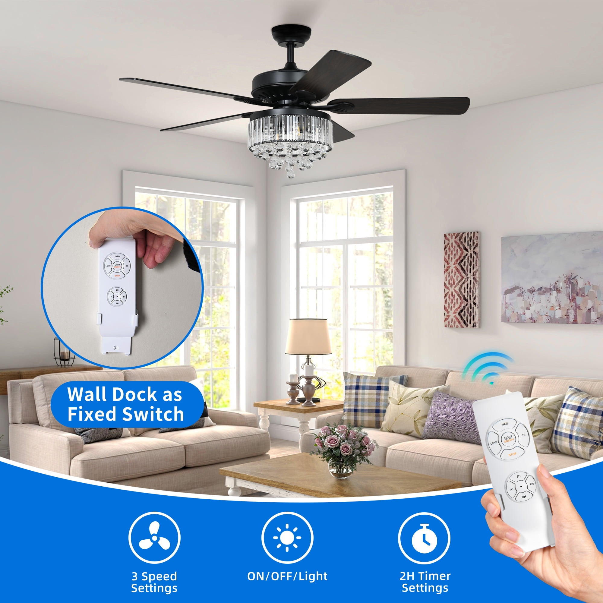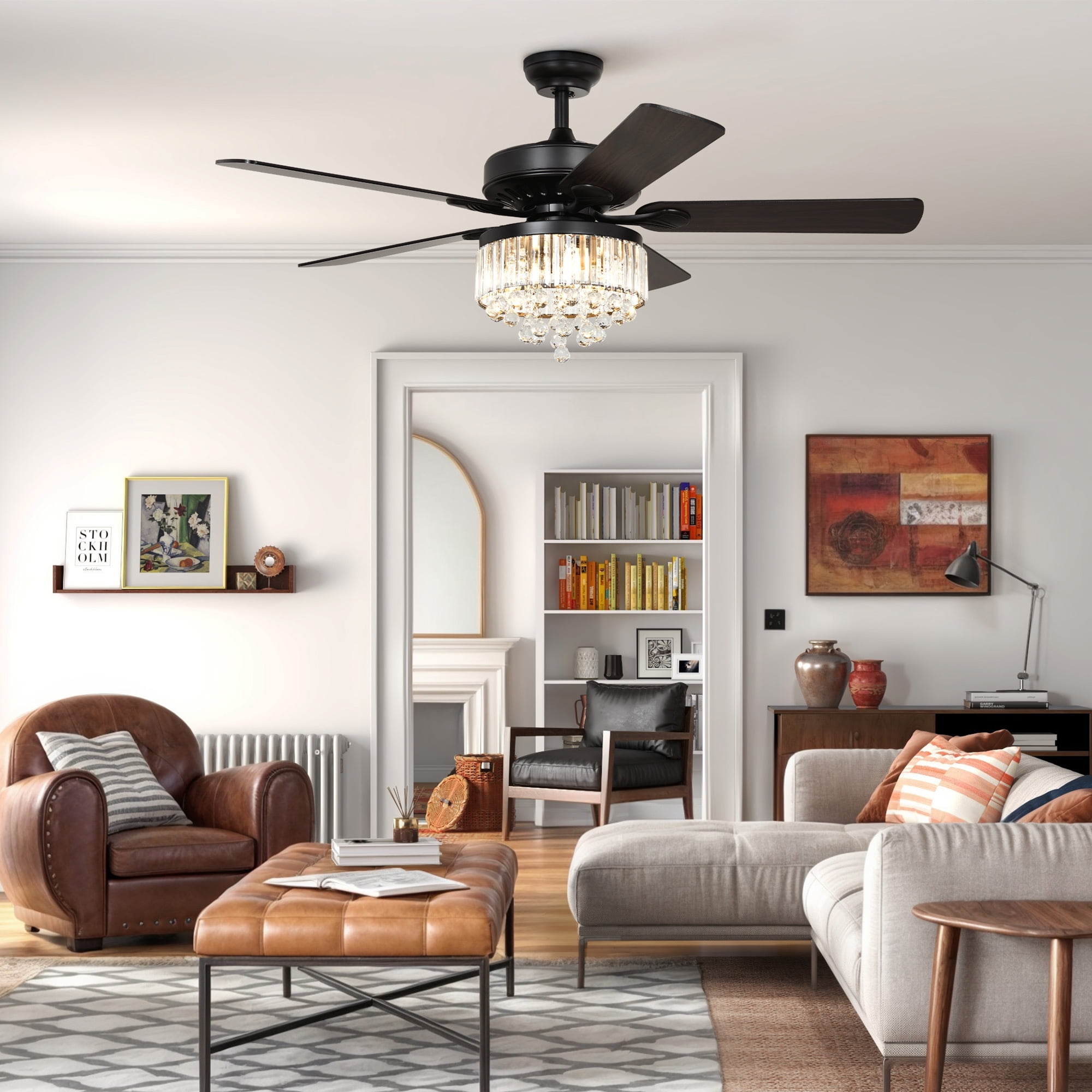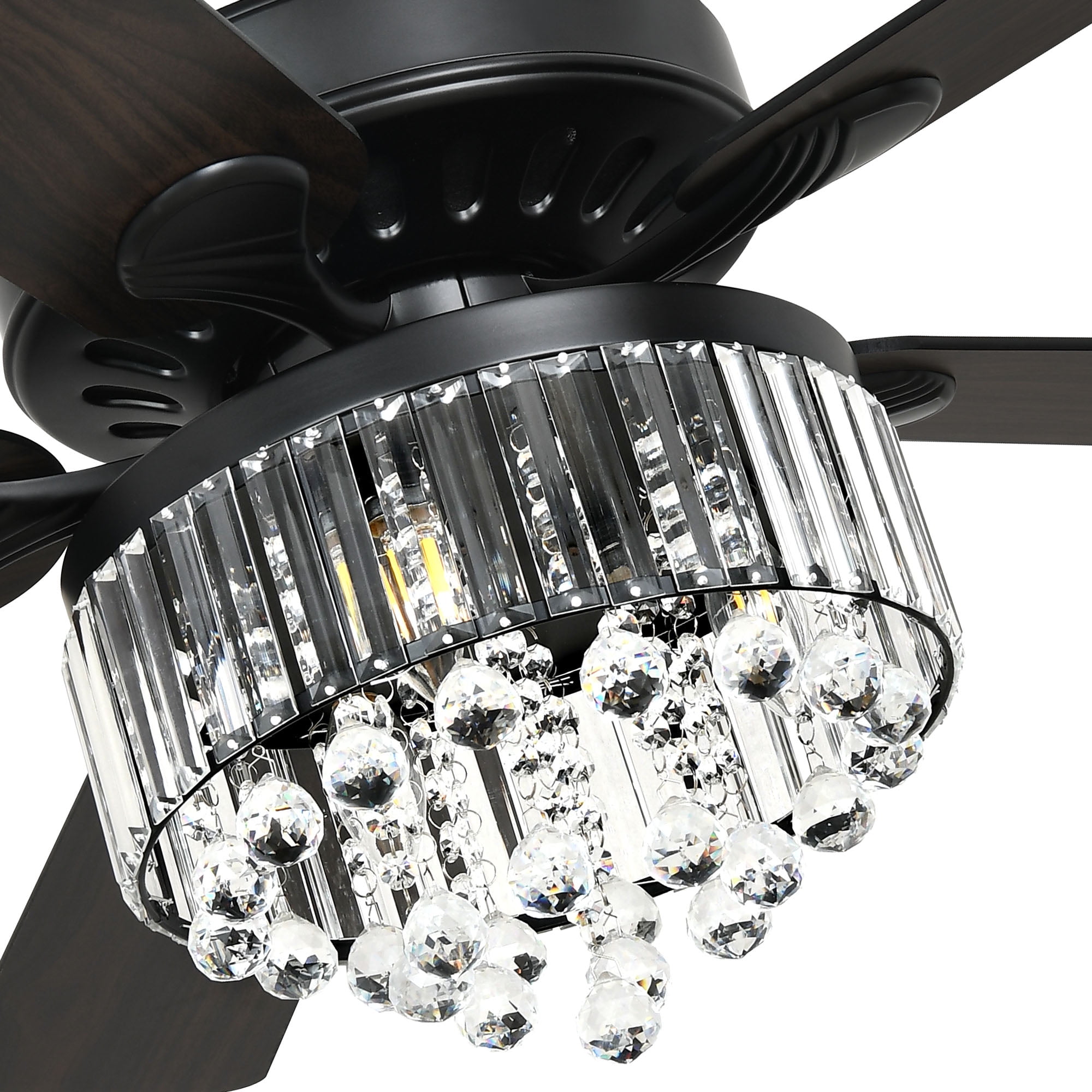 Uforic 52″ Crystal Ceiling Fan with light and Remote Control,5 Blades Chandelier Black Ceiling Fan