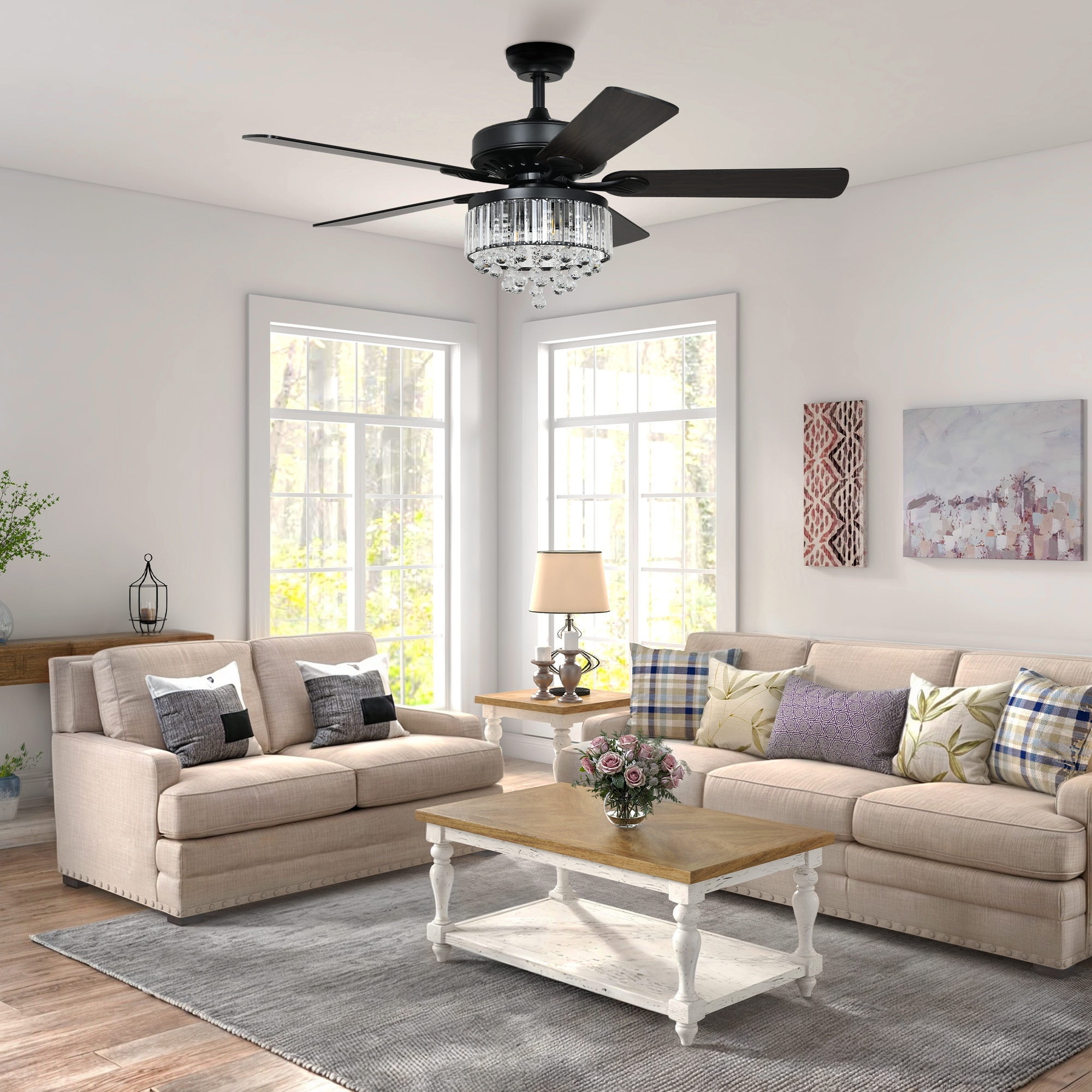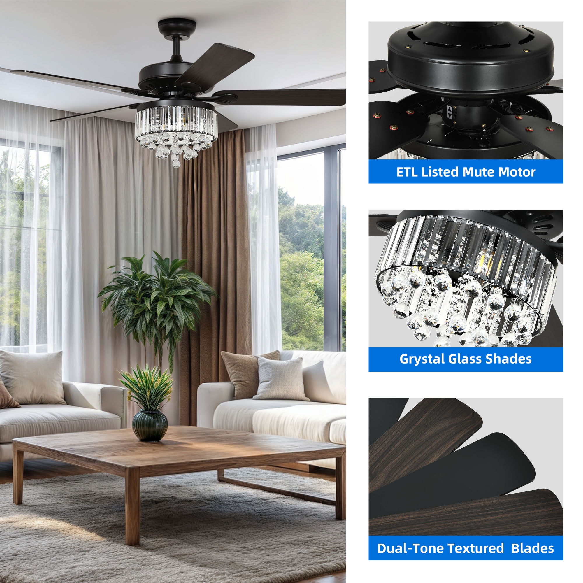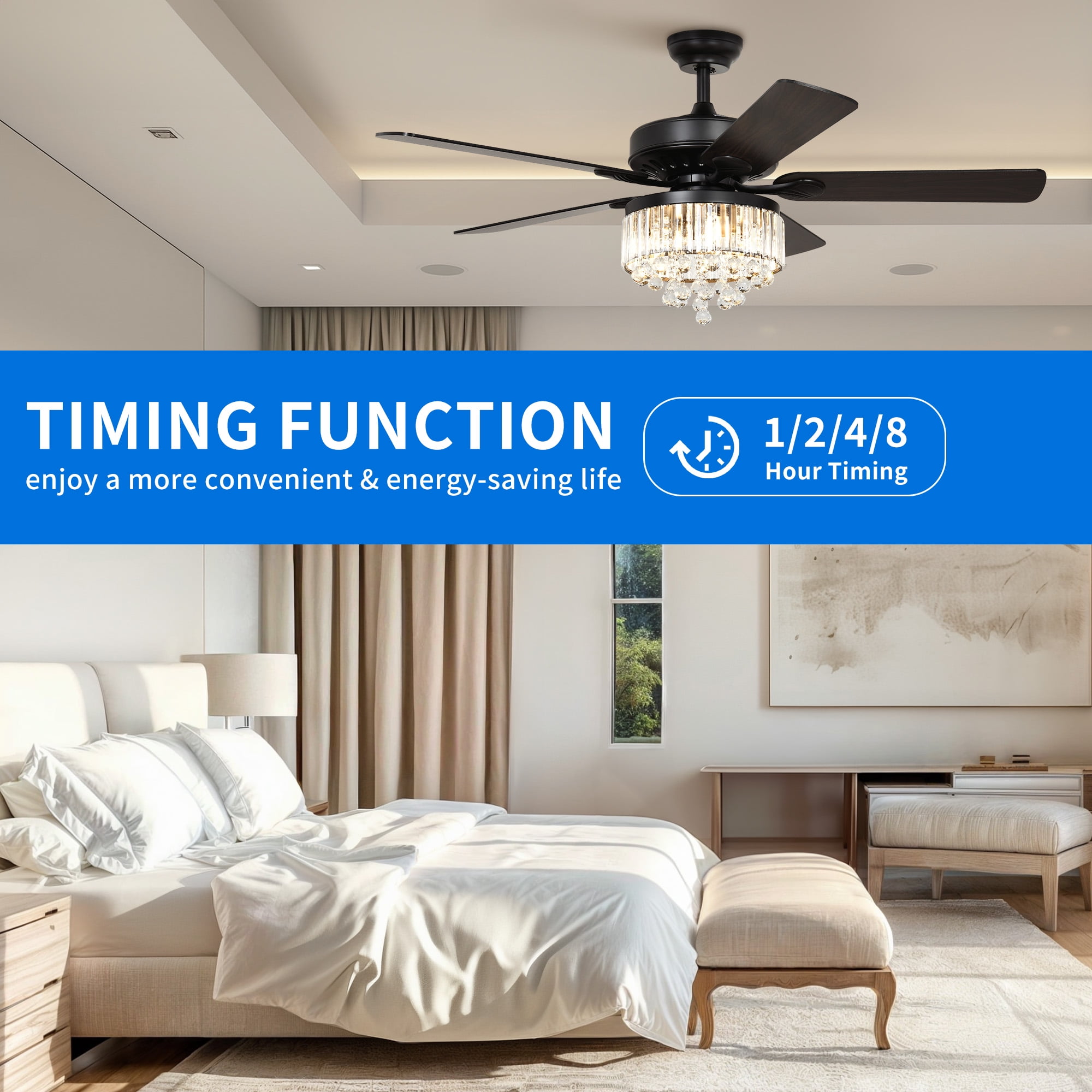 Uforic 52″ Crystal Ceiling Fan with light and Remote Control,5 Blades Chandelier Black Ceiling Fan