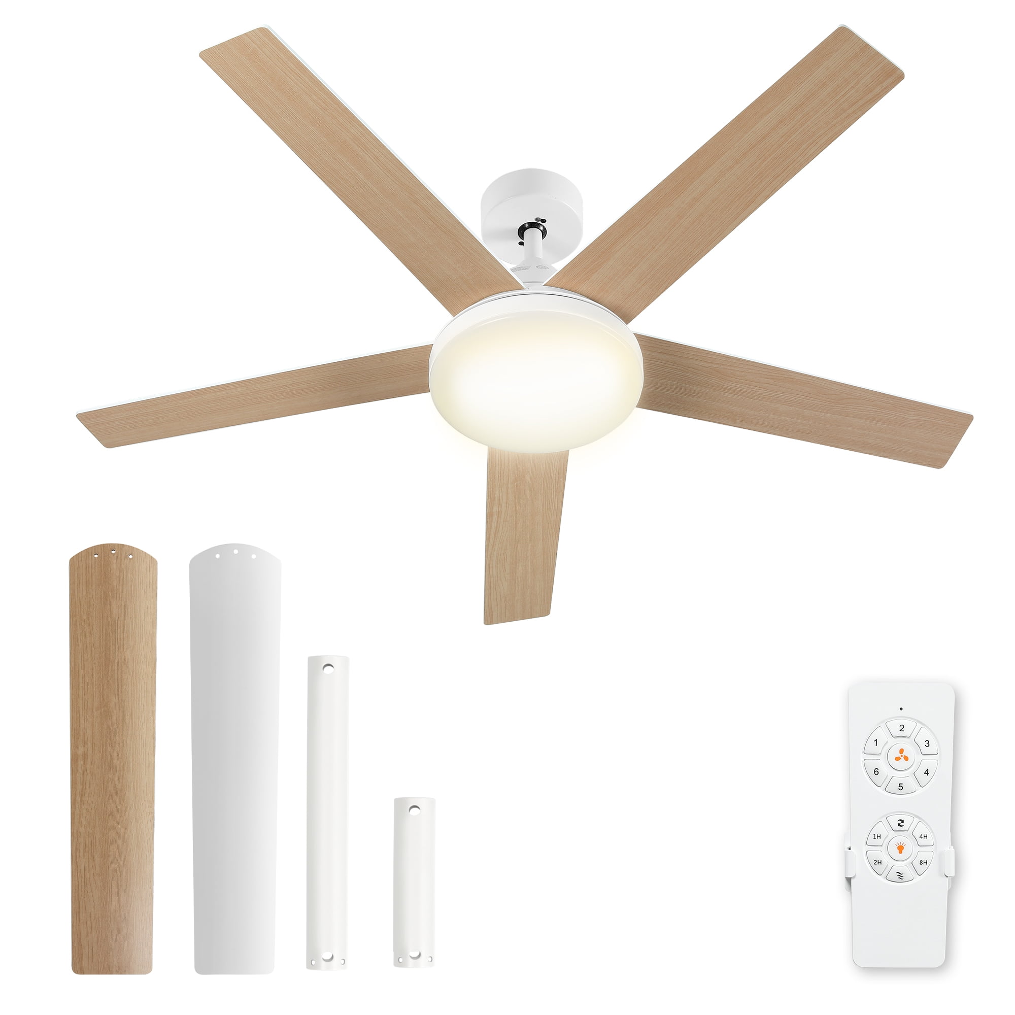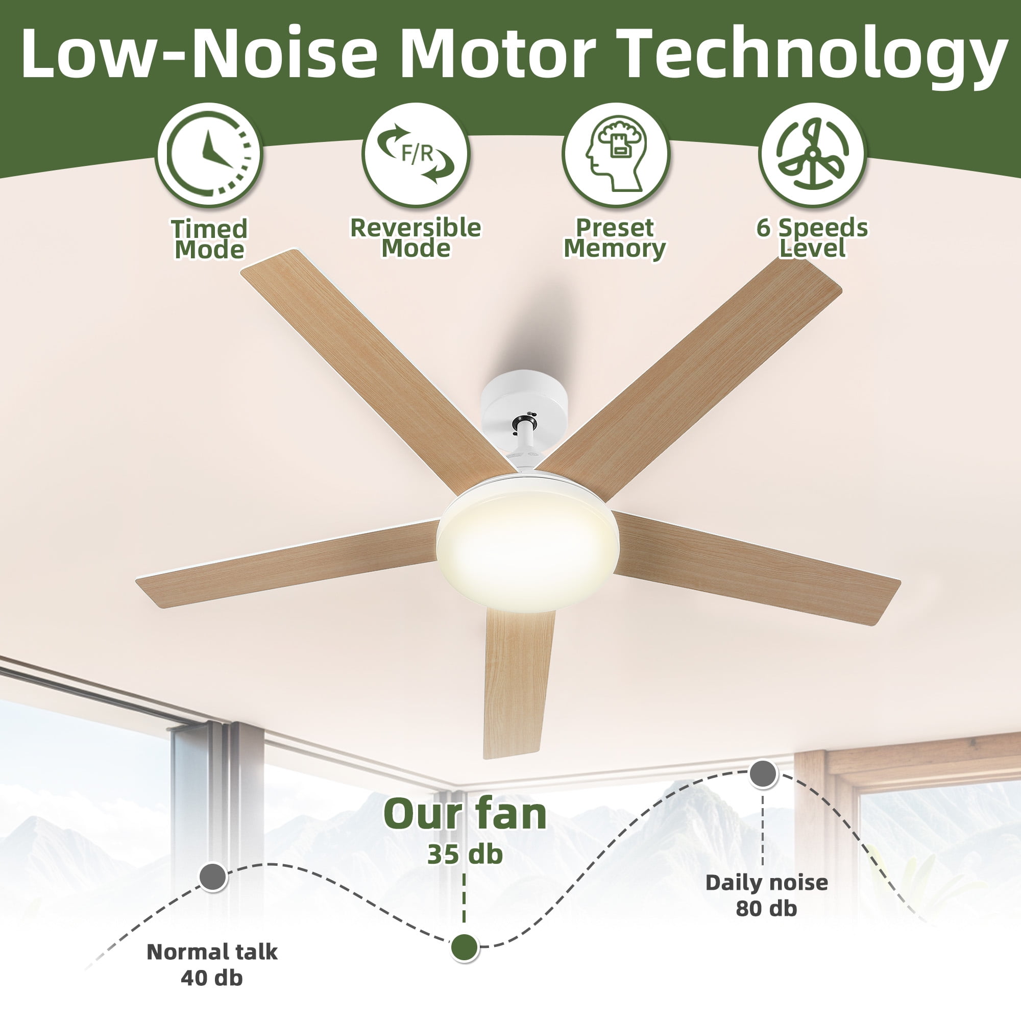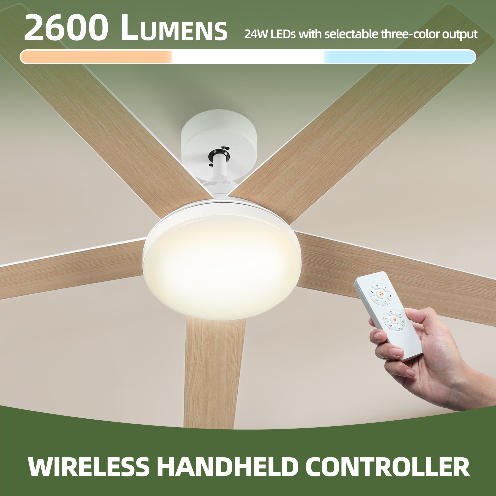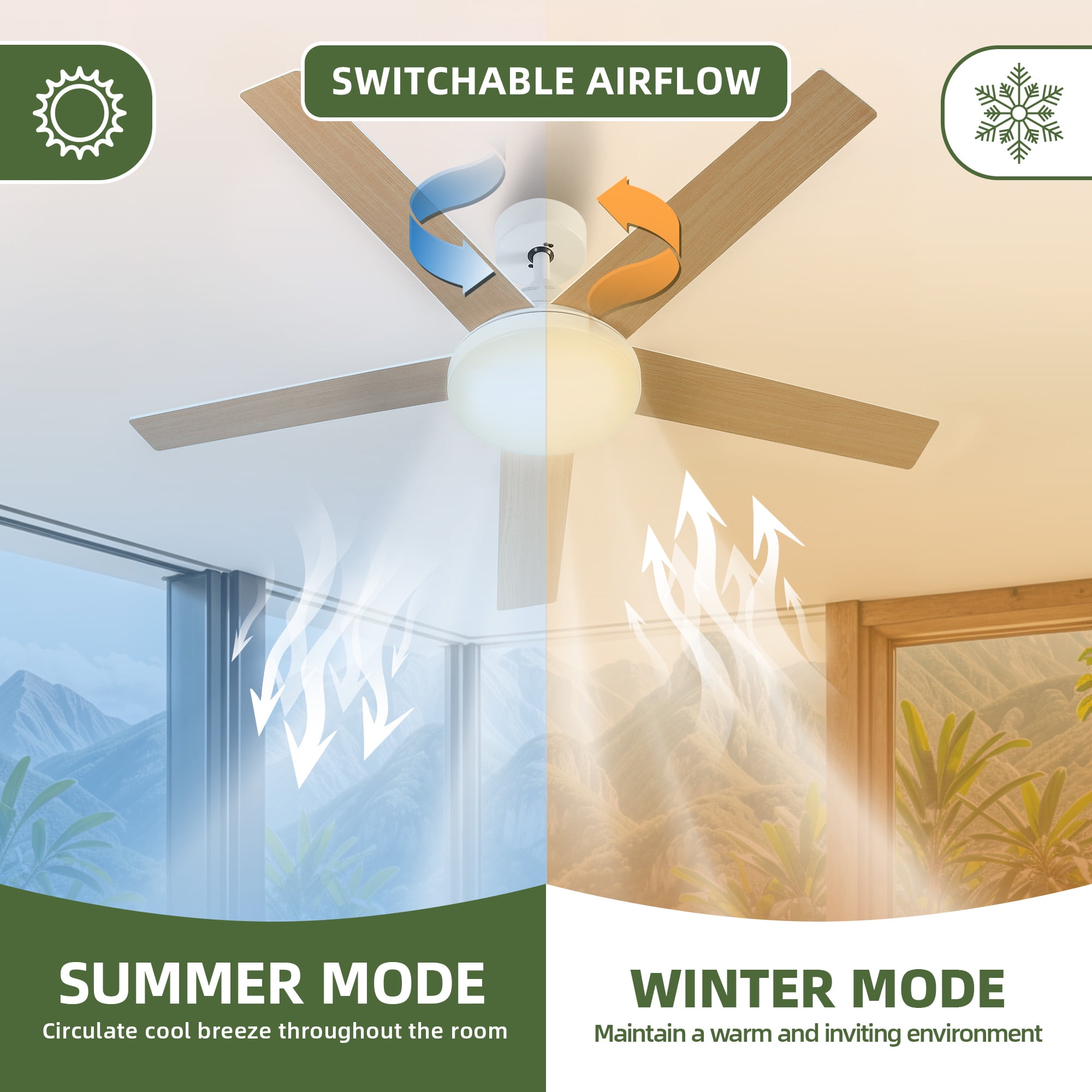 Smart Remote Control with Memory Function : Manage your comfort effortlessly with the included remote, which controls 6 fan speeds, 4 timer settings (1/2/4/8 hours), and reversible airflow. The memory function remembers your preferred settings for convenient, one-touch operation. Versatile LED Lighting for Any Mood : The integrated 24W LED light provides bright illumination with adjustable color temperatures-choose between warm (3000K), neutral (4000K), or cool (6000K) light to match your activity or ambiance, from cozy evenings to task lighting. Quick & Easy Installation : Designed for simple setup with pre-installed blades and color-coded wiring, this flush mount ceiling fan installs in about 20-30 minutes using basic tools. The included 5-inch and 10-inch downrods accommodate both low and high ceilings, as well as angled or sloped installations. Ideal for indoor spaces (bedrooms, living rooms, kitchens) and covered outdoor areas (patios, porches, gazebos). Powerful Airflow, Whisper-Quiet Operation : Engineered with 5 optimized blades and a brushless DC motor, this 52-inch ceiling fan delivers a strong 3502 CFM airflow-20% more powerful than comparable models-while running virtually silent. Perfect for bedrooms or open living spaces where quiet performance matters. Energy-Efficient Year-Round Climate Control : Optimize your home’s efficiency with reversible airflow-cool downward in summer or circulate warm air upward in winter to maintain perfect temperatures while reducing energy bills.