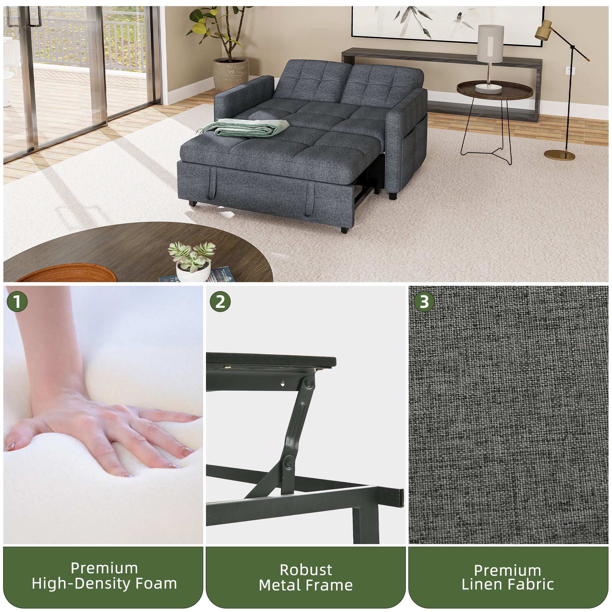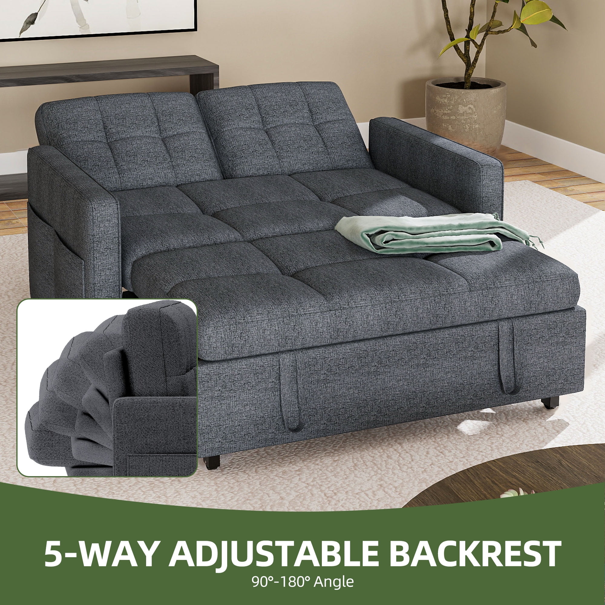 Uforic 55″ Modern Convertible Sofa Bed with Pull Out Bed, Upholstered Loveseat Sofa Couch with Adjustable Backrest, Gray