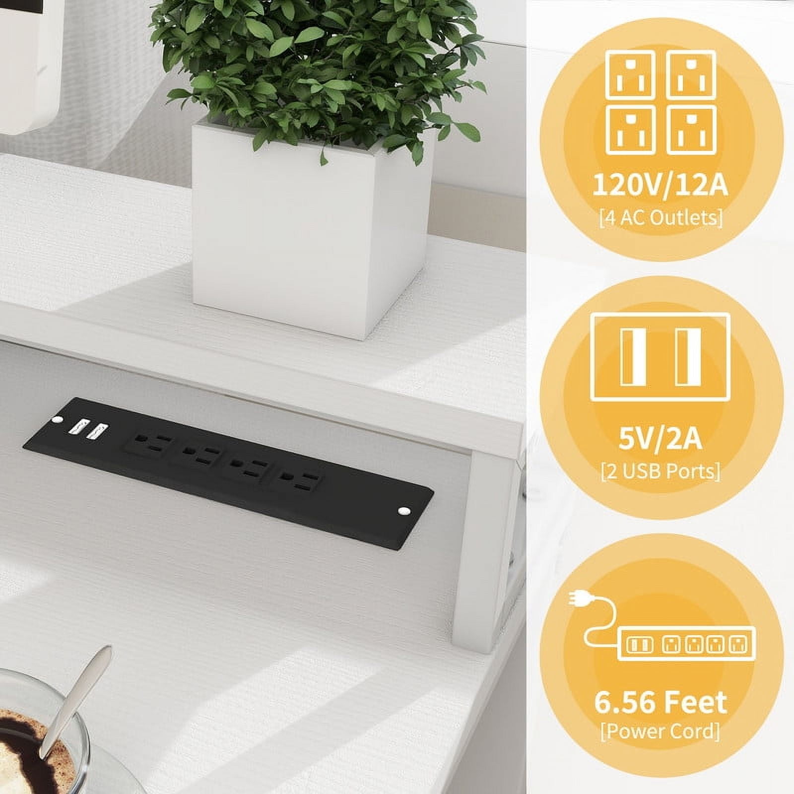 Upgrade your home office with this L-shaped desk. It fits neatly in corners and is great for work, writing, or gaming. The sturdy steel frame and MDF tabletop add a modern touch. A built-in charging station with 2 USB ports and 4 outlets keeps devices powered. LED lights create a cozy feel, and a monitor stand improves comfort. With plenty of storage for files, books, and printers, this desk helps keep your space tidy. Perfect for home or office use.