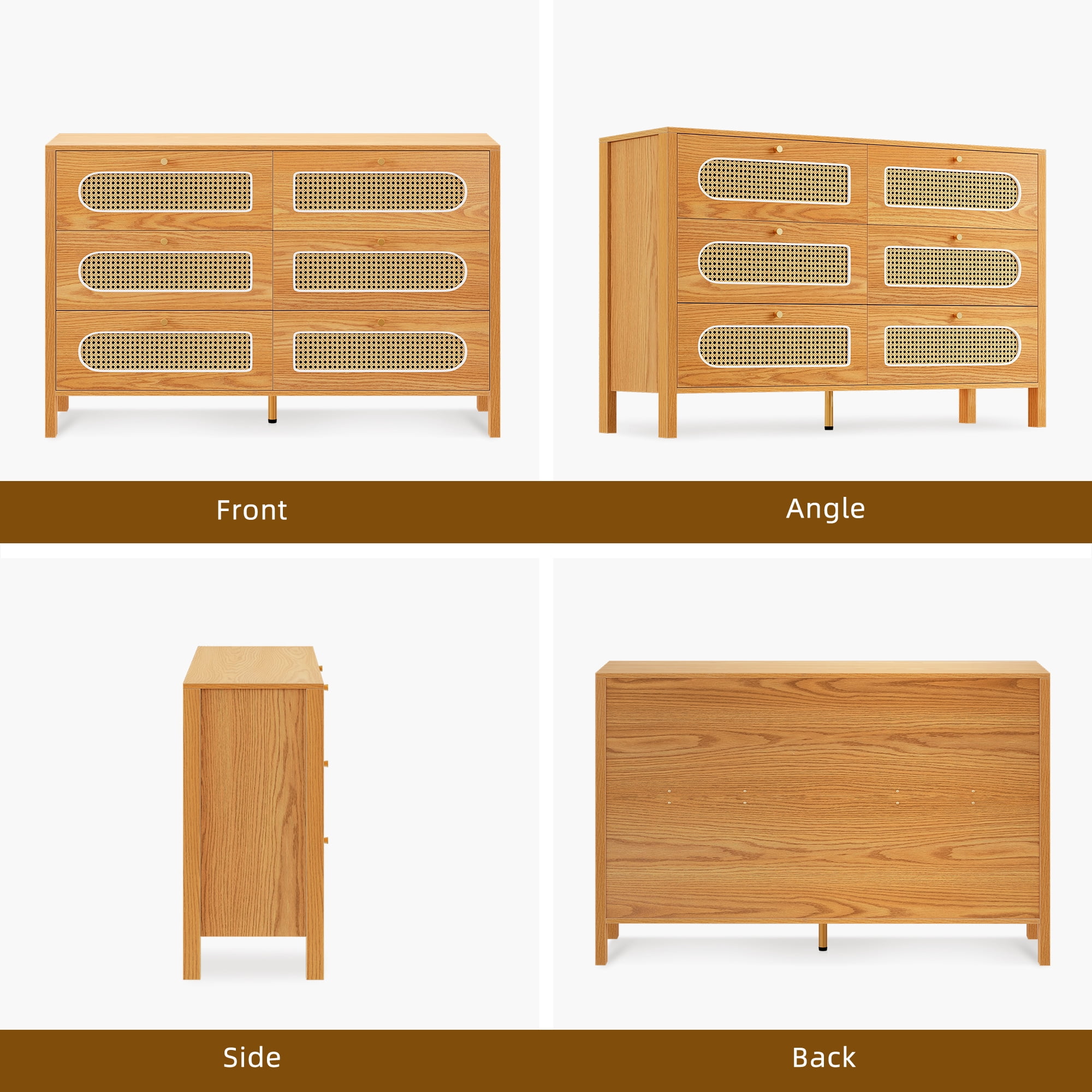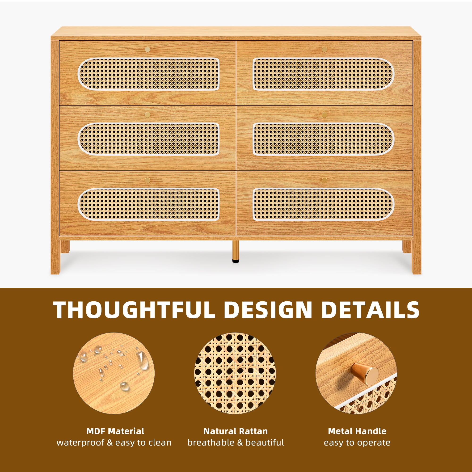 Uforic 6-Drawer Horizontal Double Dresser, Wood Chest of Drawers, Natural