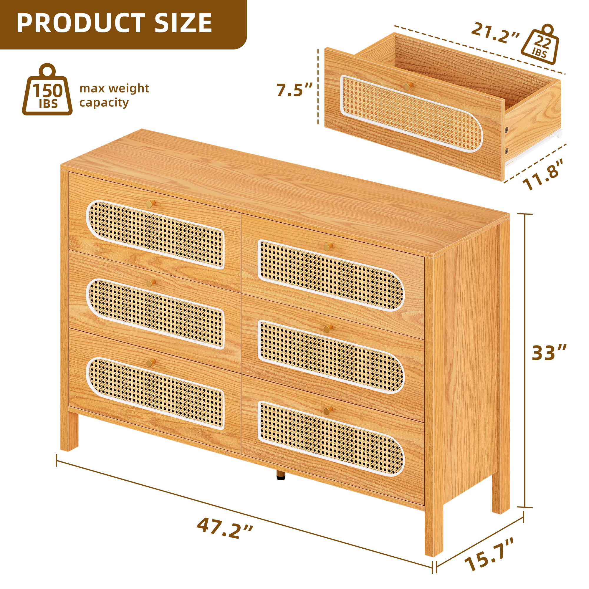 Ample Storage: With 6 large drawers, Uforic drawer dresser offers extensive storage space for all your belongings Versatile Functionality: This multi-purpose drawer dresser can be used as a TV stand, storage cabinet, and more, adapting to various needs and spaces Easy Assembly: Installation is straightforward, following the provided instructions, making it convenient for users to set up without professional help Durable Construction: Made from sturdy MDF and engineered wood, the double dresser is built to last, ensuring long-term durability Safety Features: Equipped with anti-tip devices, this horizontal dresser enhances safety and reduces the risk of accidents