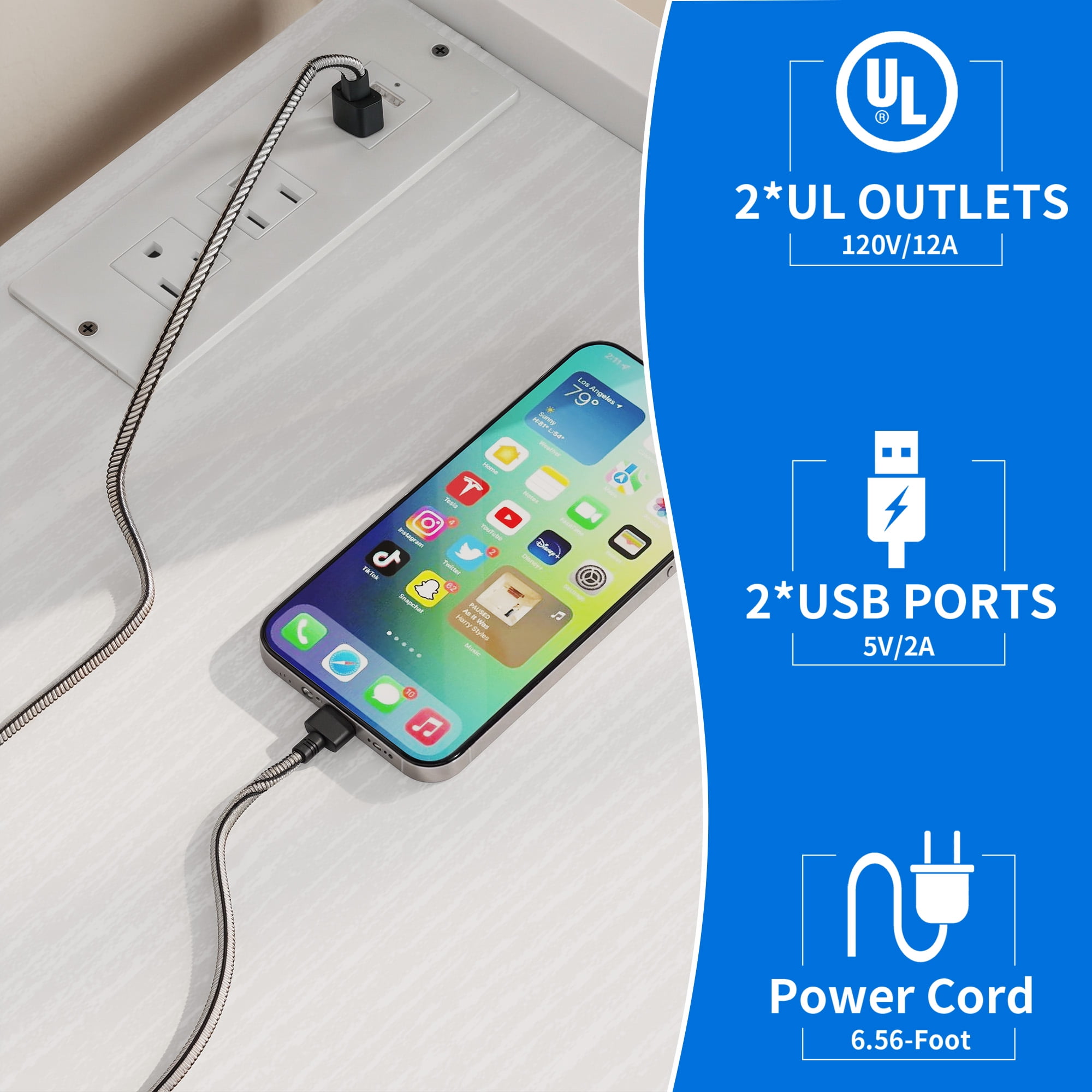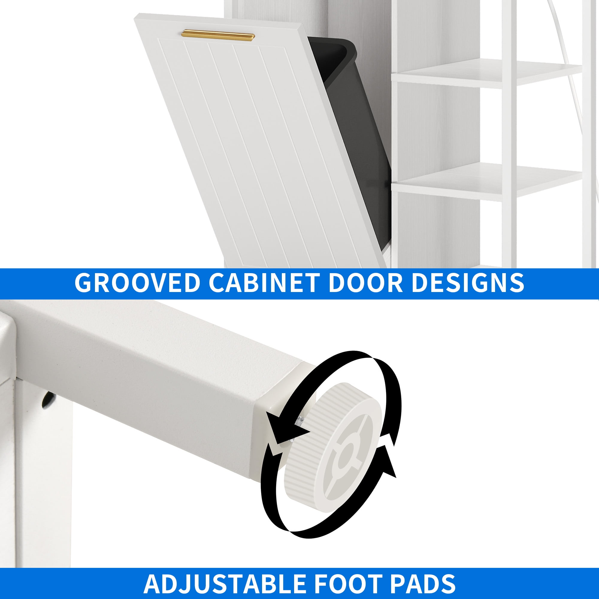 Organized Storage: Boasting 6 tiered shelves and 6 hooks, our Uforic baker’s rack offers ample storage space for all your kitchen essentials, ensuring everything is neatly organized Effortless Cleanup: The innovative trash can cabinet, designed to fit a 10-gallon bin (trash bin not included), simplifies kitchen cleanup, making it a breeze to maintain cleanliness and order Convenient Power Access: Enjoy the convenience of 2 power outlets and 2 USB ports integrated into the design, allowing you to easily charge your devices while working in the kitchen Durable Construction: Crafted from robust MDF board, this baker’s rack guarantees sturdiness and exceptional weight-bearing capacity, providing a reliable storage solution for your home Versatile Functionality: Perfect for kitchens, living rooms, and dining rooms, this versatile rack is ideal for various spaces thanks to its generous storage capacity and convenient charging features Simple Assembly: Experience a hassle-free setup with our easy installation process—just follow the instructions provided for a seamless assembly experience Dedicated Customer Support: Your satisfaction is our priority. For any inquiries or concerns, feel free to contact us via email. Rest assured, we are committed to resolving any issues promptly to ensure your complete satisfaction
