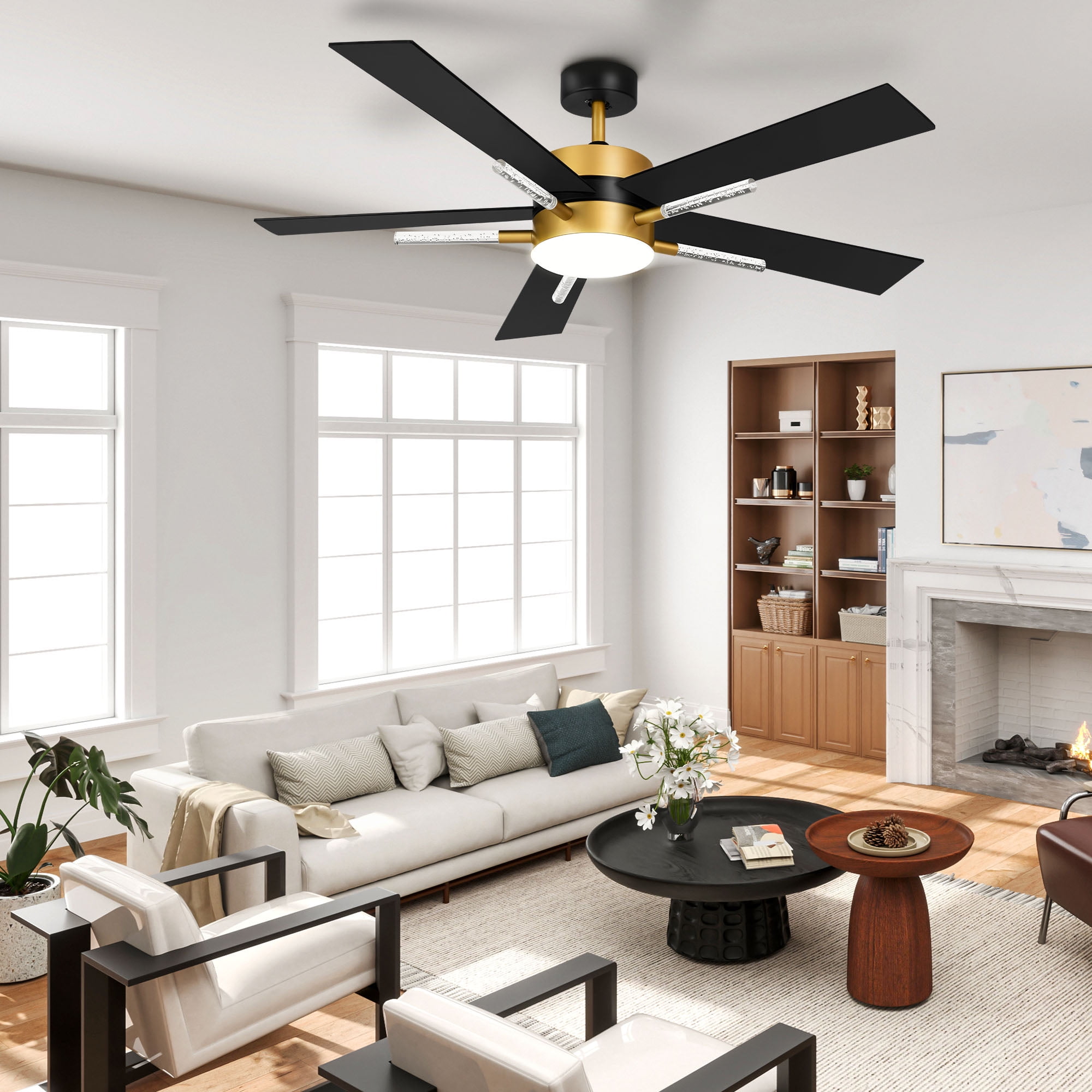 Uforic 60 Inch Large Ceiling Fan with Light and Remote,Crystal Rod Design, Black Gold Modern Ceiling Fans for Living Room,Garage