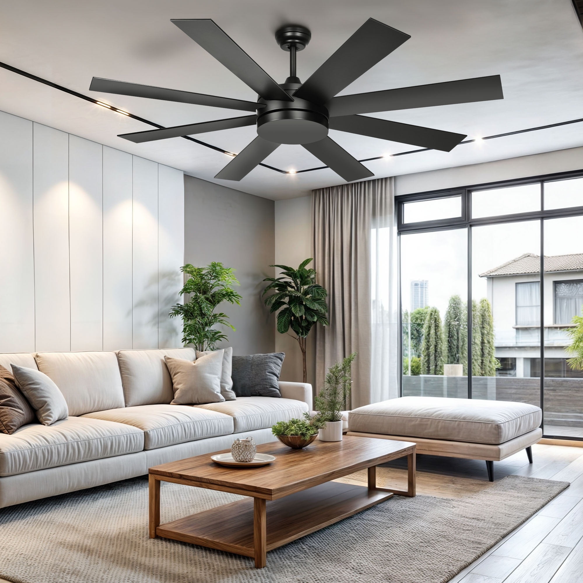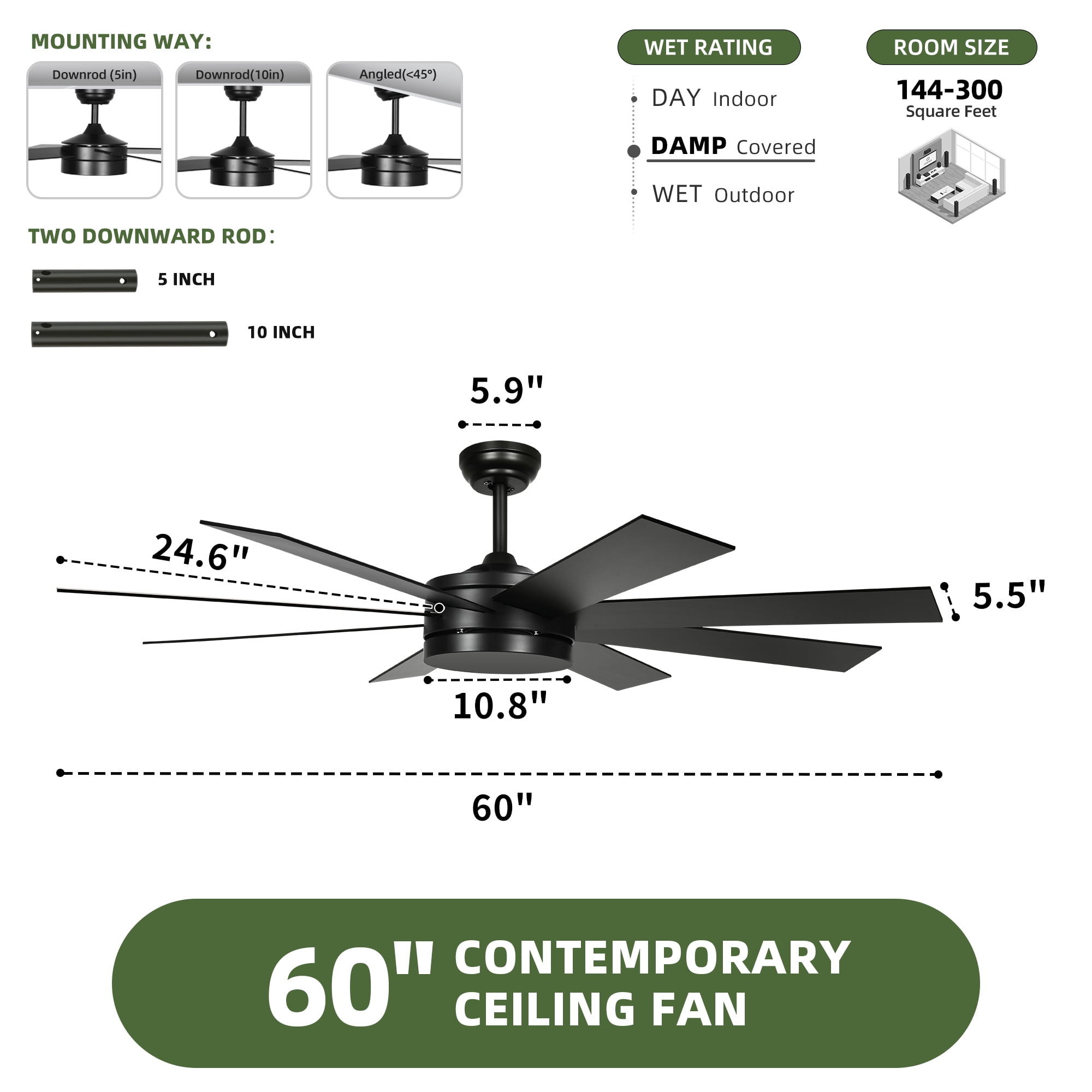 Uforic 60 inch Modern Black Indoor Outdoor Ceiling Fan with Remote