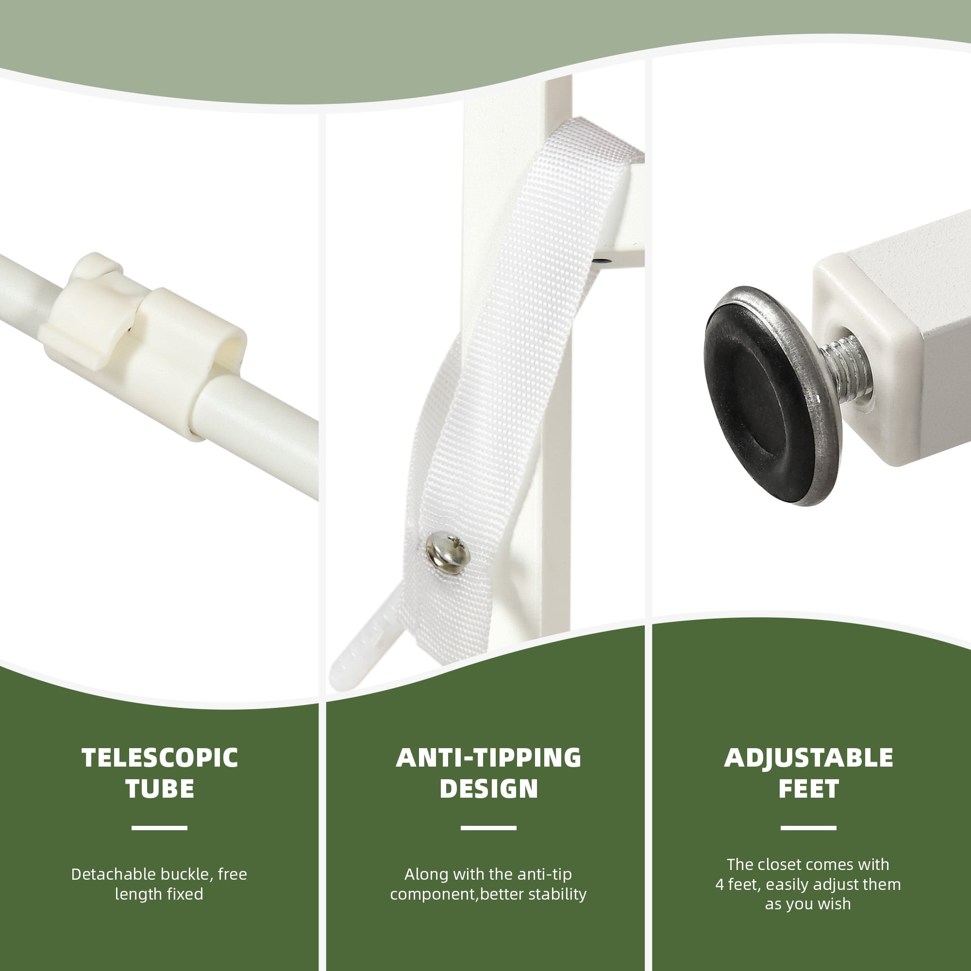 Step into a realm of effortless style and organization with this advanced wardrobe organizer. Crafted from sturdy metal and engineered wood, it transforms chaos into elegance with its shelving and adjustable telescopic rods. Ideal for walk-in closets or spaces from 7 to 10 feet wide, this piece brings a touch of sophistication and practicality to your daily dressing routine. Specifications: Color: White Material: Engineered Wood, Metal Frame Overall Size: 86.6″~118″L x 15.7″W x 71″H Room Type: Bedroom, Dressing Spaces Assembly Required:Yes Package Included: 1 x Closet Organizer System 1 x Instructions 1 x Accessory Kit