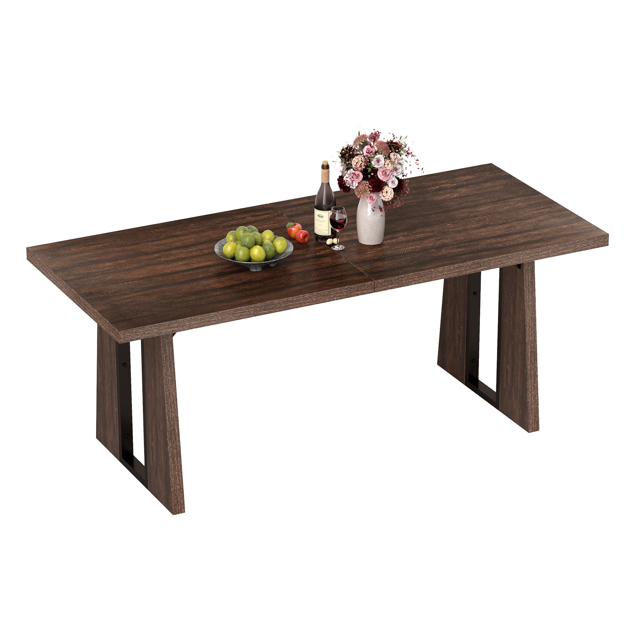 Uforic 70″ Wood Dining Table for 6-8 Person, Farmhouse Rectangle Dining Table withHeavy Duty Leg, Kitchen Table for Gathering, Kitchen, Dining Living Room, Brown