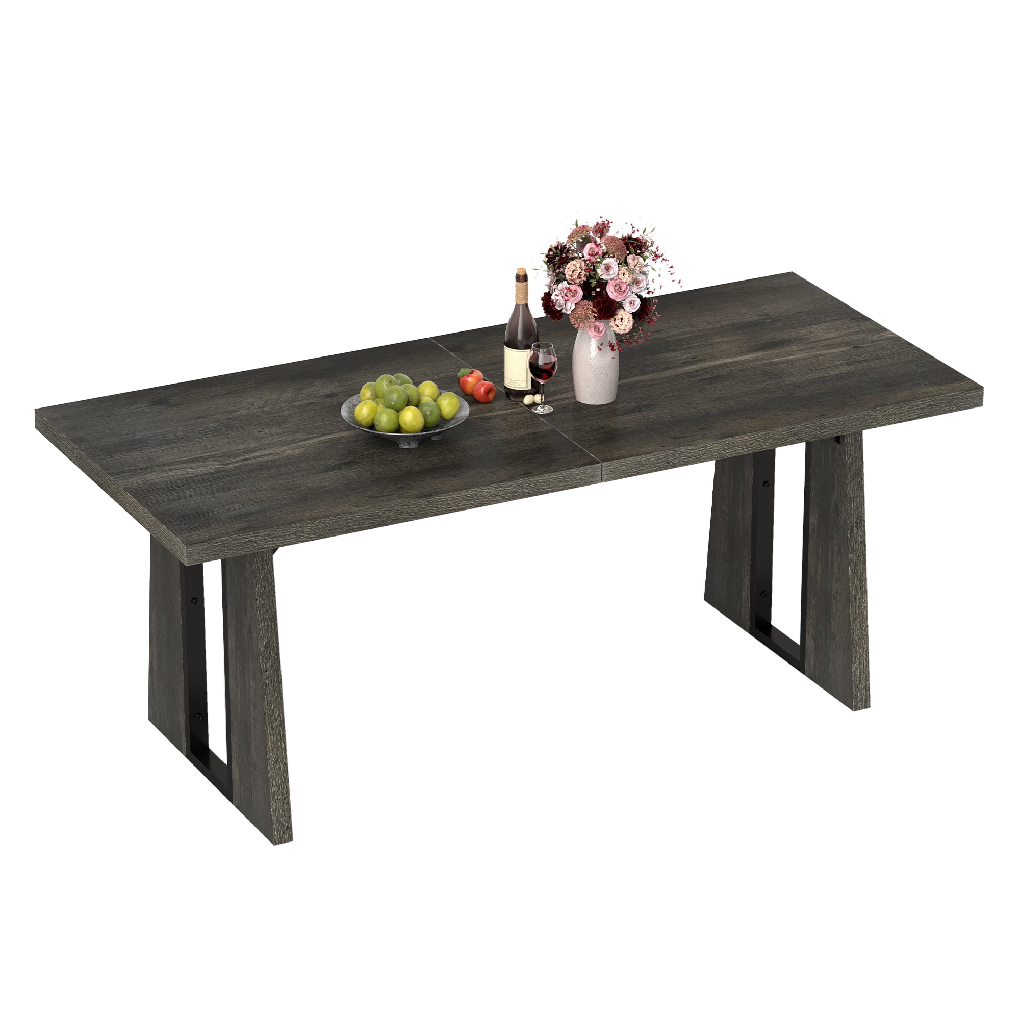 Uforic 70″ Wood Dining Table for 6-8 Person, Farmhouse Rectangle Dining Table withHeavy Duty Leg, Kitchen Table for Gathering, Kitchen, Dining Living Room, Gray