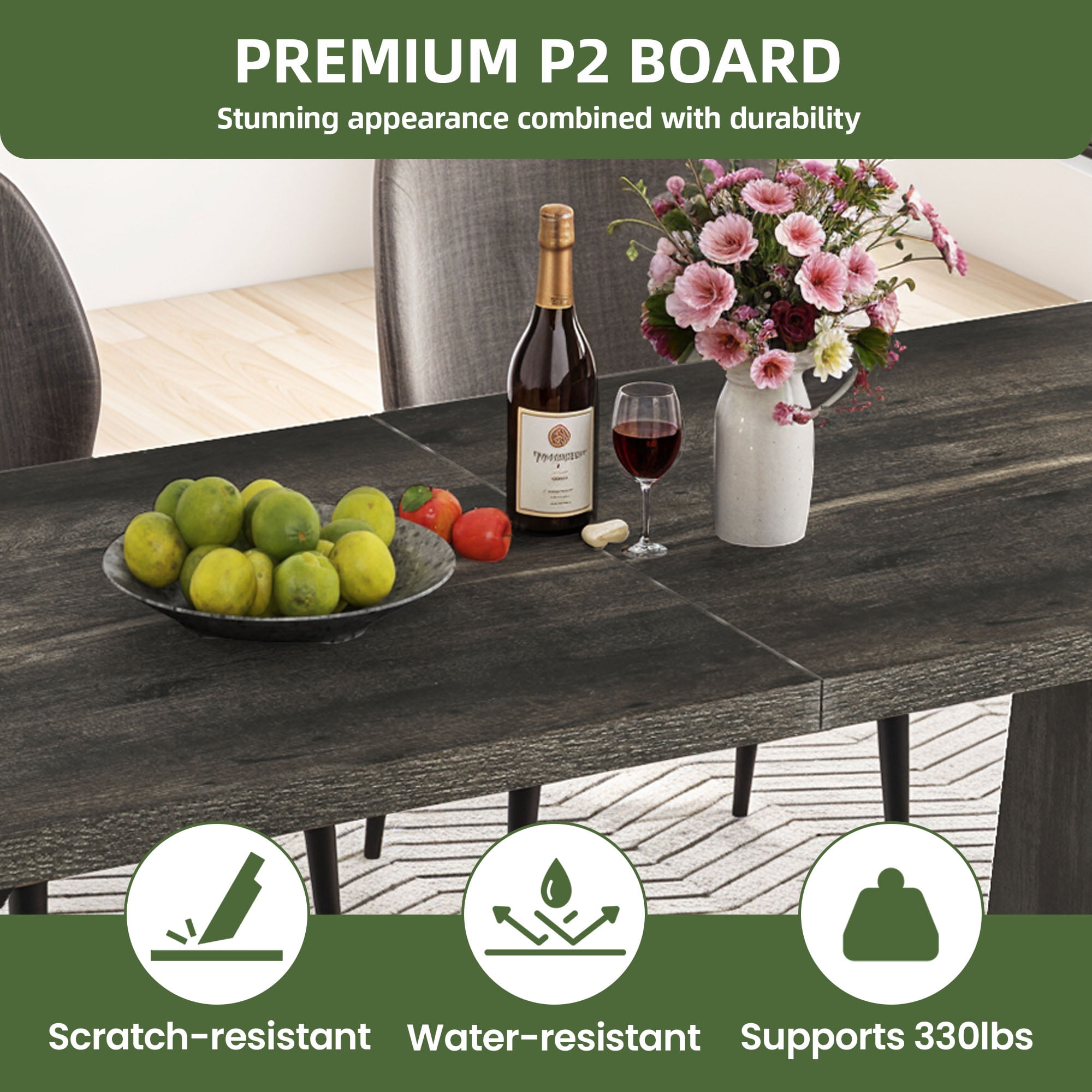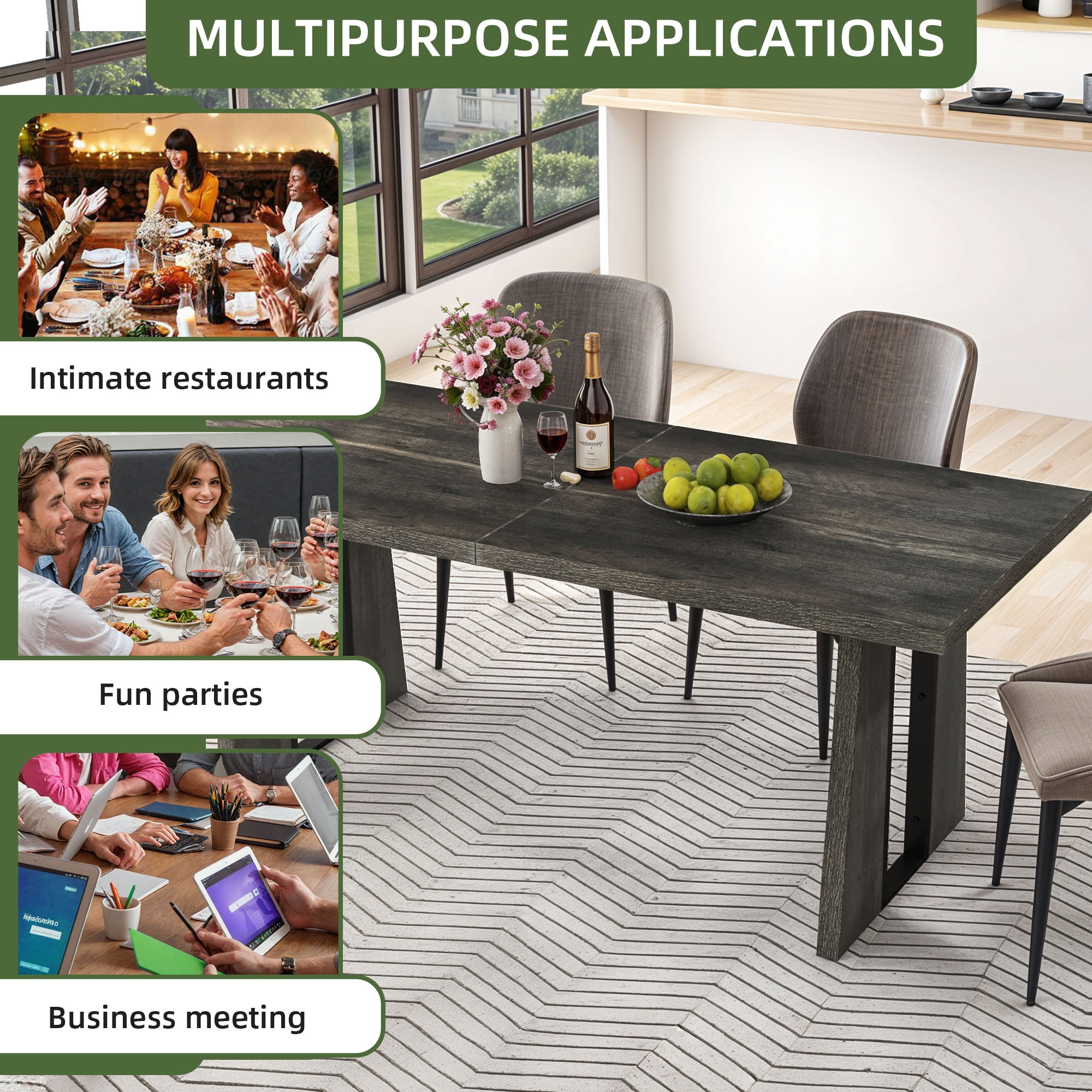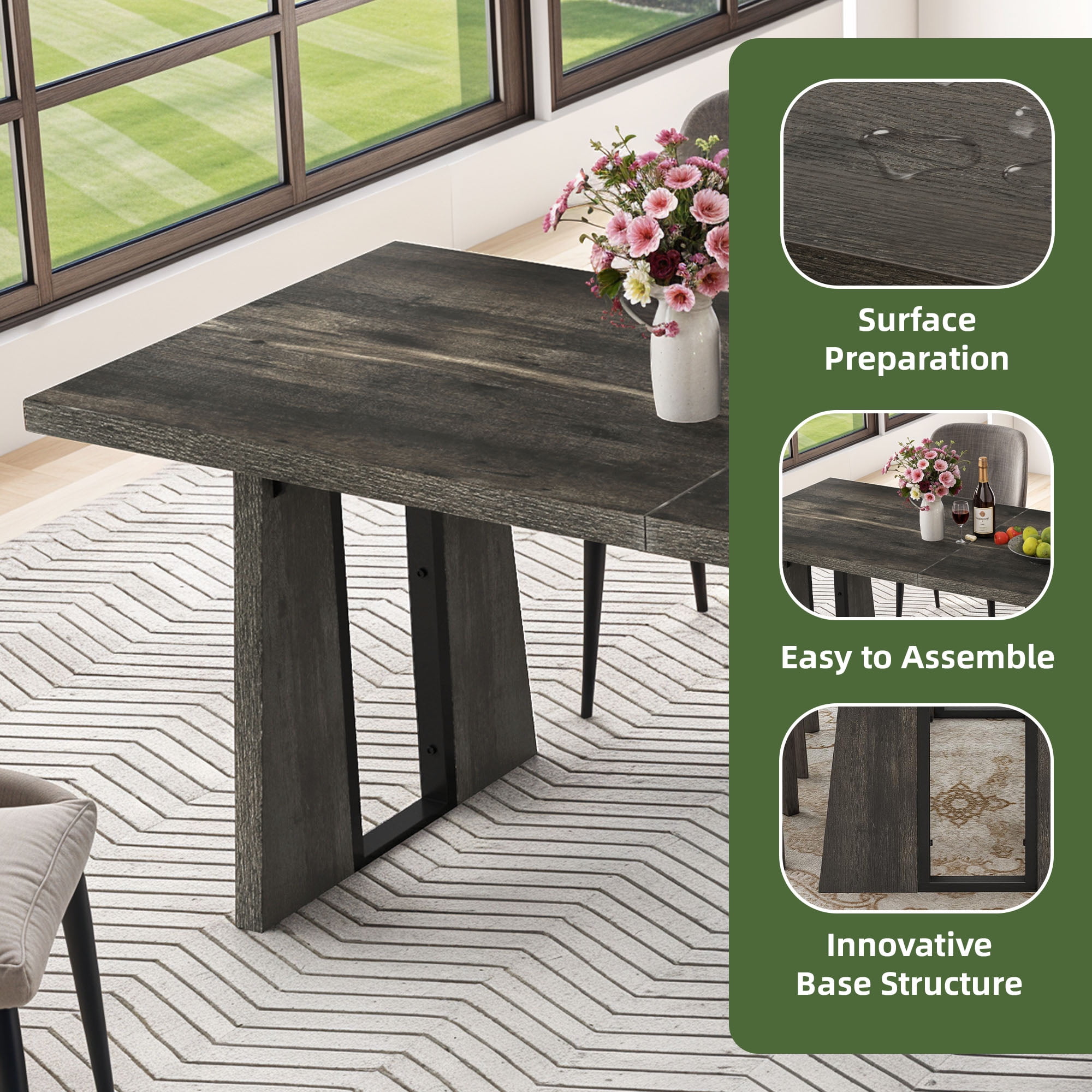 Space-Saving, Guest-Ready: Short on space but love to entertain? Our table comfortably seats more guests without crowding your room, giving you the flexibility to host gatherings with ease while keeping your dining area open and inviting. Lasting Performance: Featuring robust engineered wood with thickened surfaces, our dining table repels scratches and water. It effortlessly supports up to 330 lbs for all your dining needs, ensuring longevity and practicality for years to come. Gather in Style: Our dining table comfortably seats 6-8 people, fostering warmth and connection at every meal. Its blend of rustic charm and striking base design adds contemporary sophistication, making it the ideal centerpiece for any gathering. Versatile for Any Occasion: From charming gatherings to productive meetings, our rectangular dining table is designed to excel in any setting. Its versatility ensures it enhances every experience, making it a must-have for your dining area or office. Easy Build Commitment: Assembling our rectangular dining table is effortless, thanks to the clear instructions and pre-labeled parts included. We’re committed to delivering an outstanding product that ensures your satisfaction every step of the way.