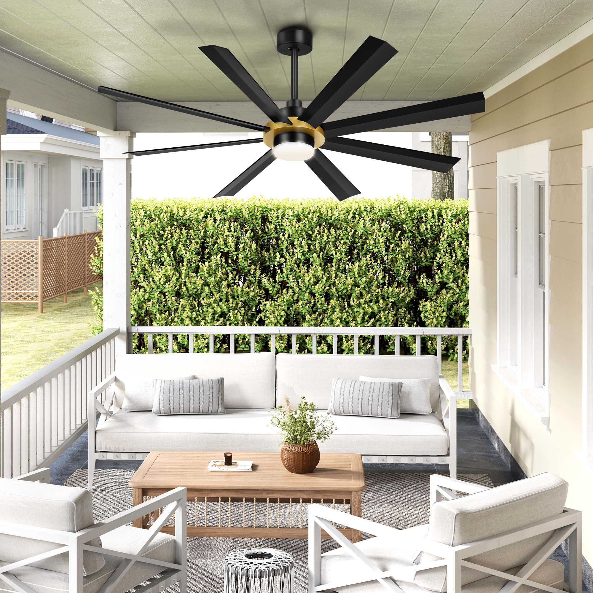 Uforic 72 Inch Large Modern Ceiling Fan with Light and Remote,Black Gold ceiling fan with 8 Blades,6 Speed for Living Room,Garage