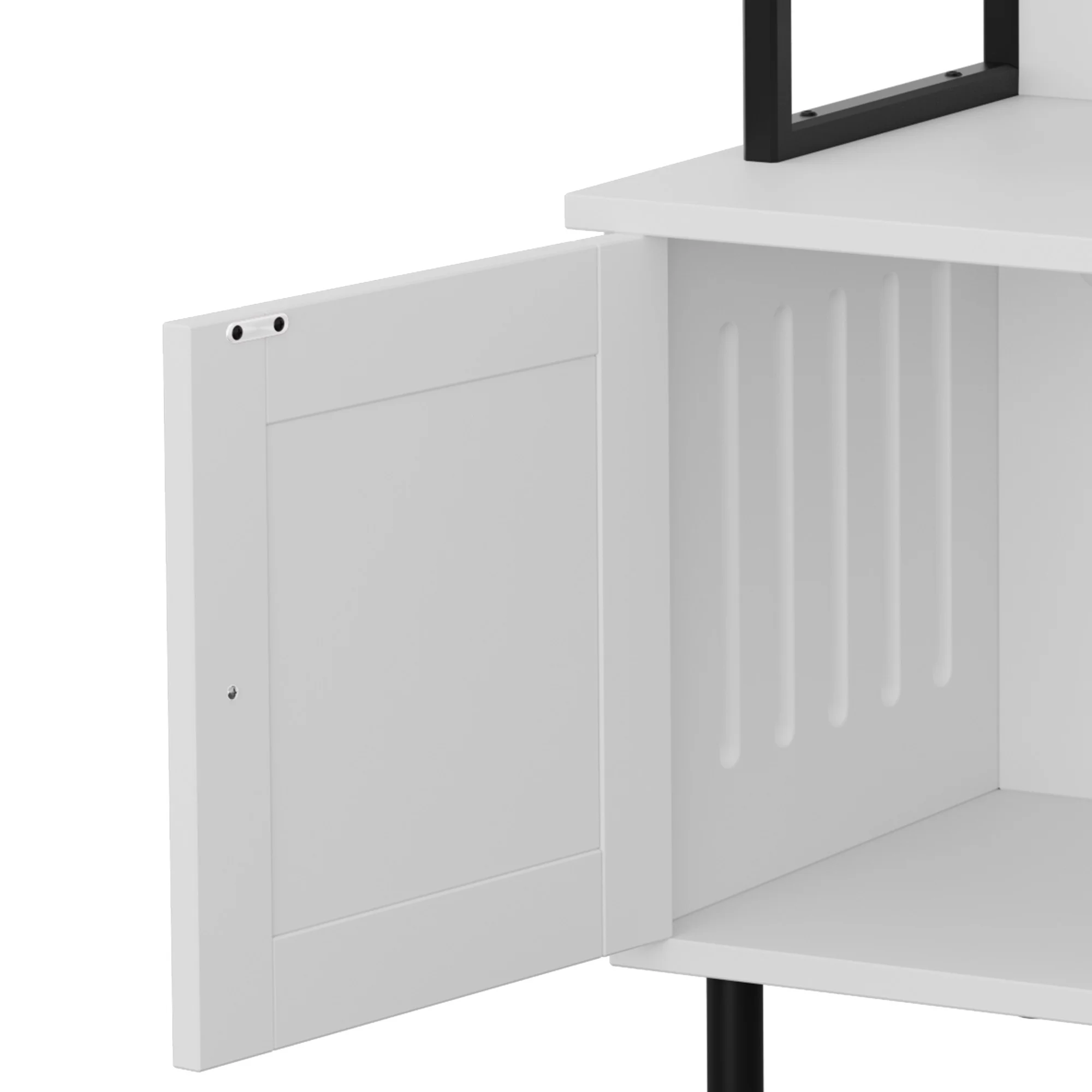 Uforic Cat Litter Box Enclosure, Large Indoor Hidden Wooden Cat Furniture with Shelves & USB & Type-C Outlets, White