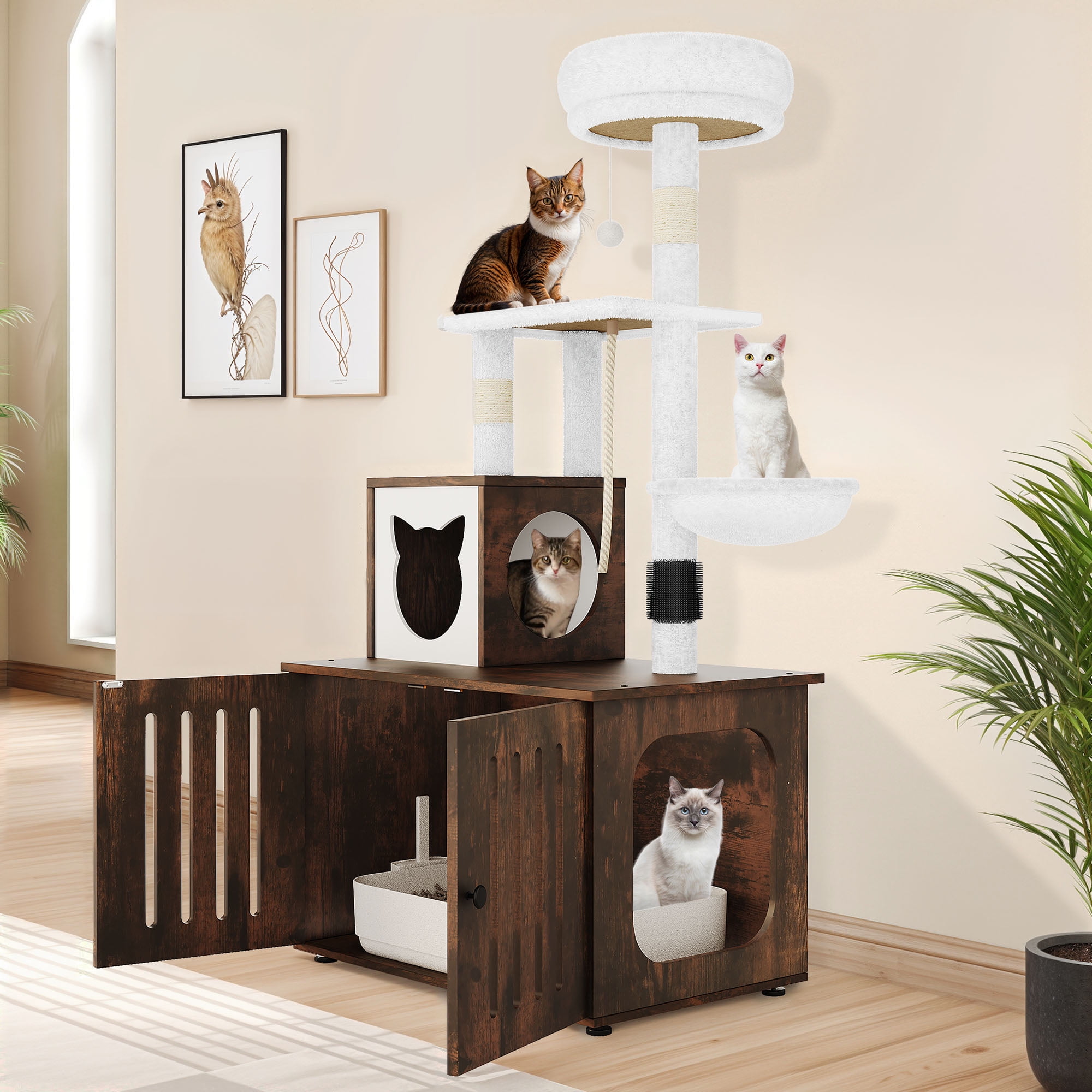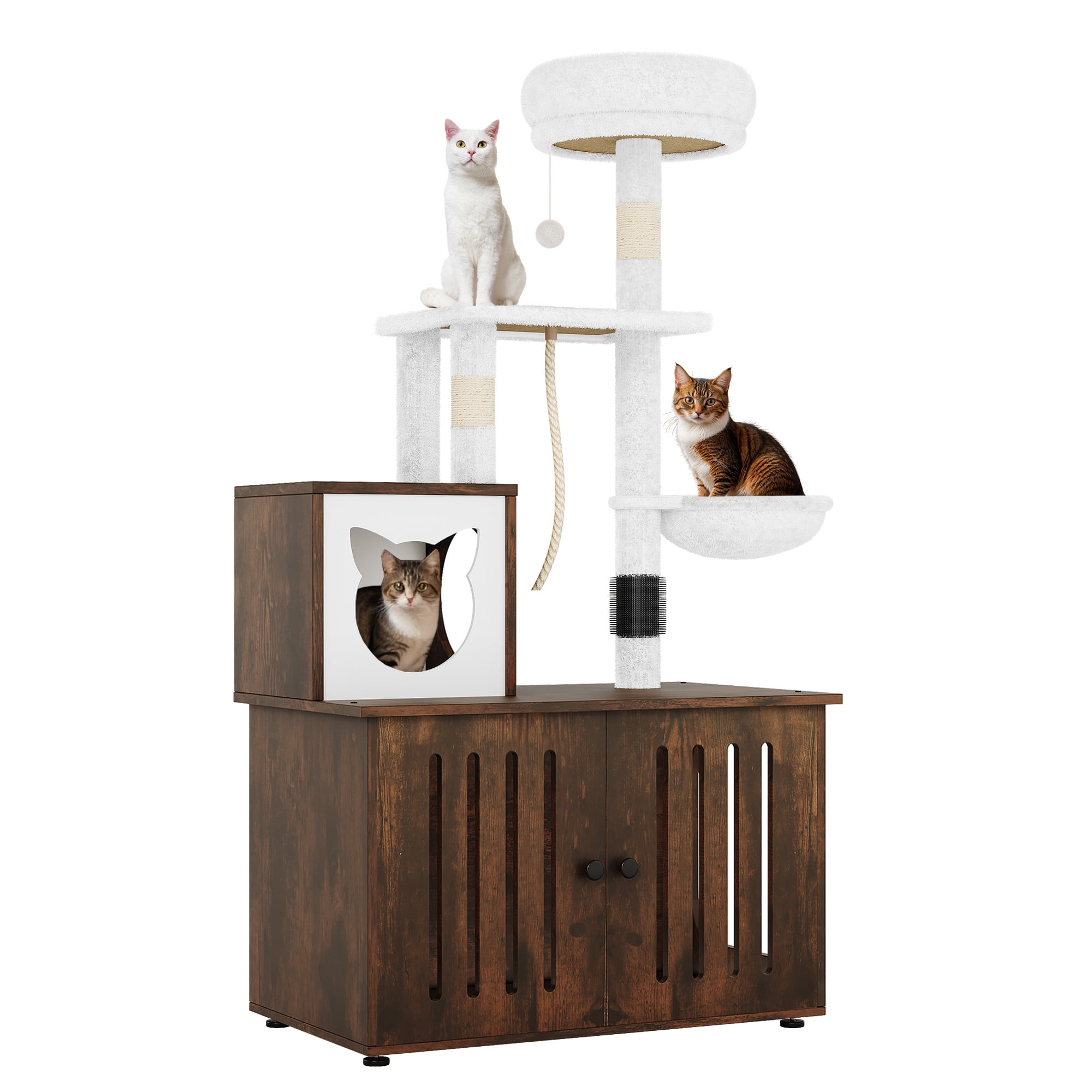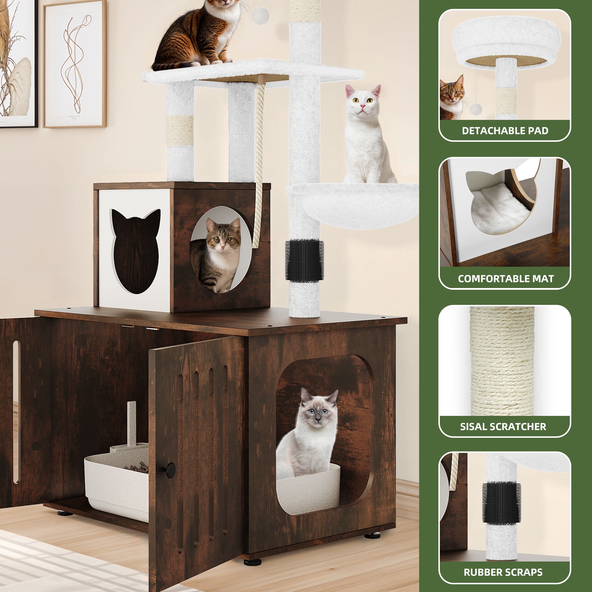 Uforic Cat Tree with Litter Box Enclosure, 2-in-1 Modern Cat Tower Combo, 53.5″ Hidden Litter Box Furniture, Rustic Brown