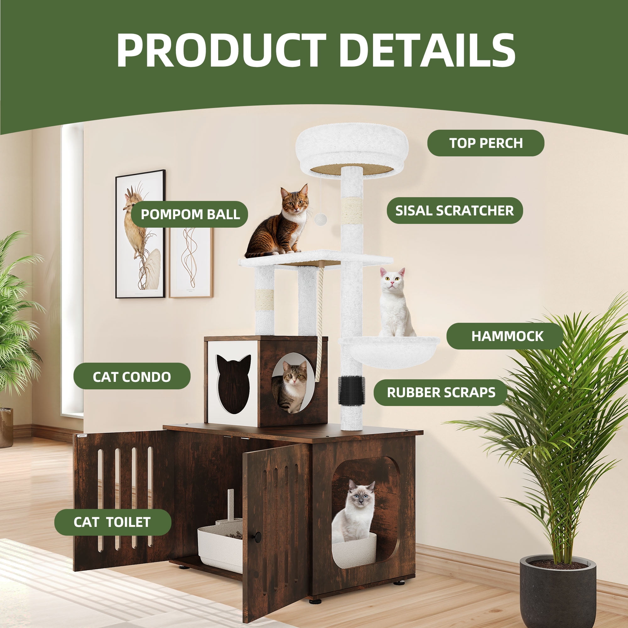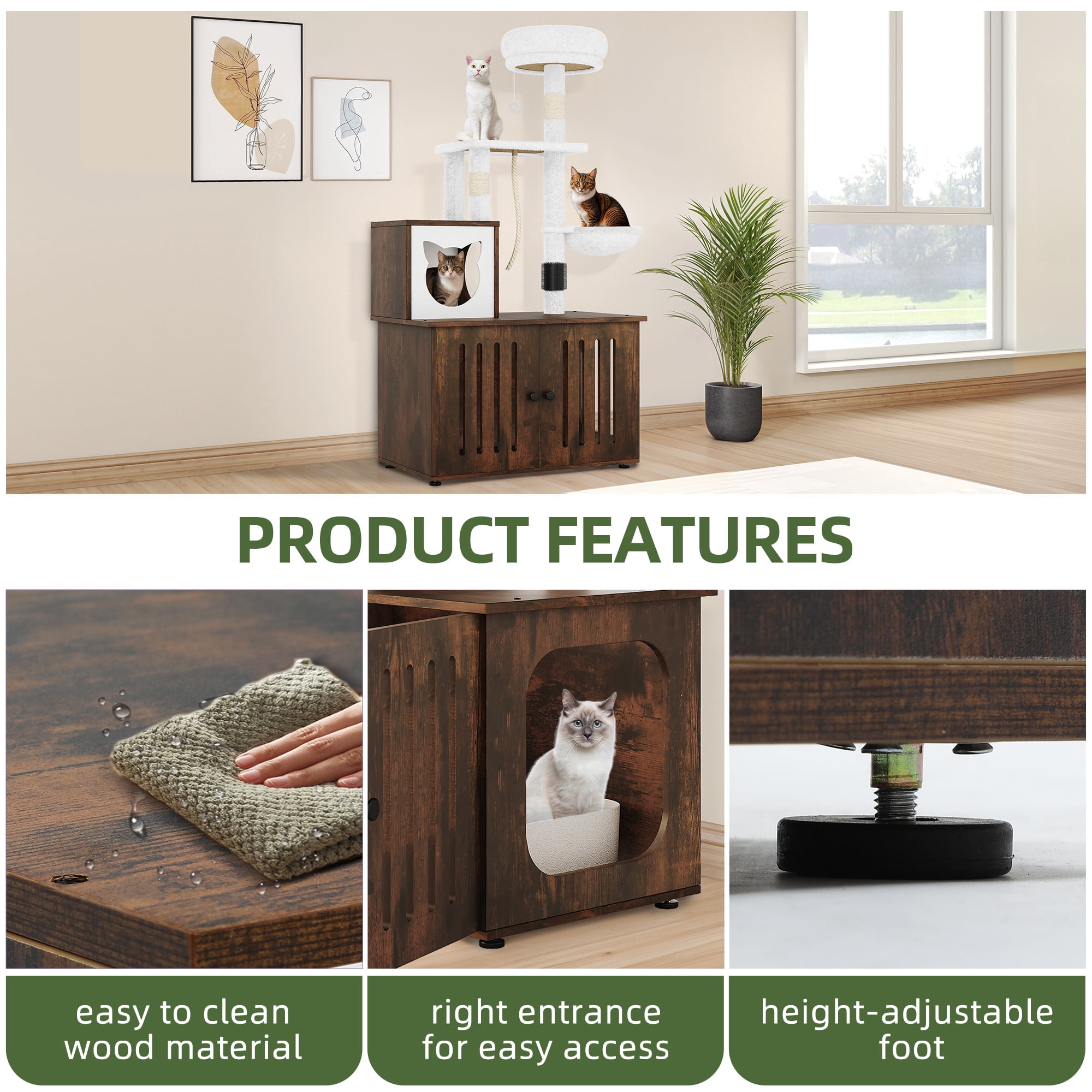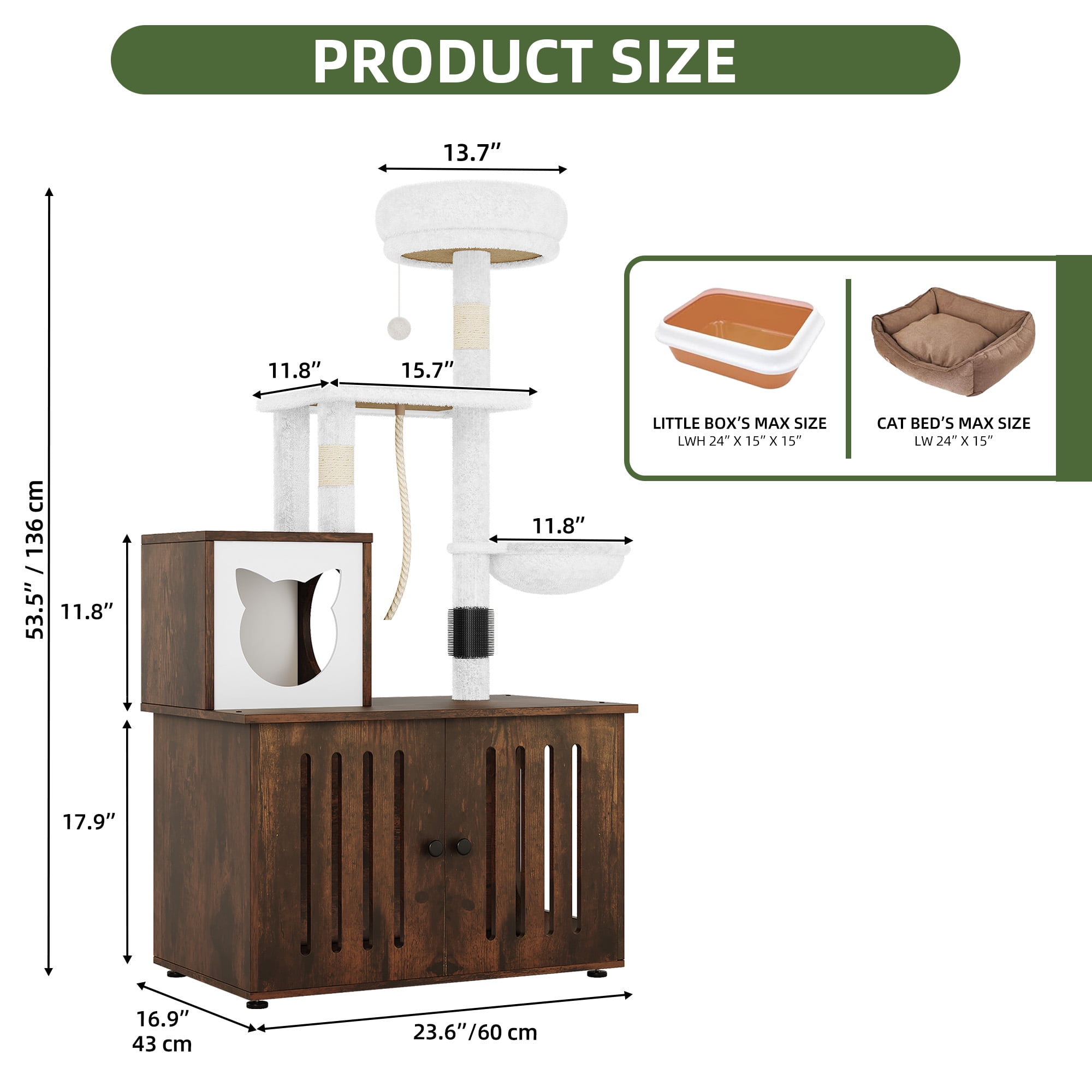 Uforic Cat Tree with Litter Box Enclosure, 2-in-1 Modern Cat Tower Combo, 53.5″ Hidden Litter Box Furniture, Rustic Brown