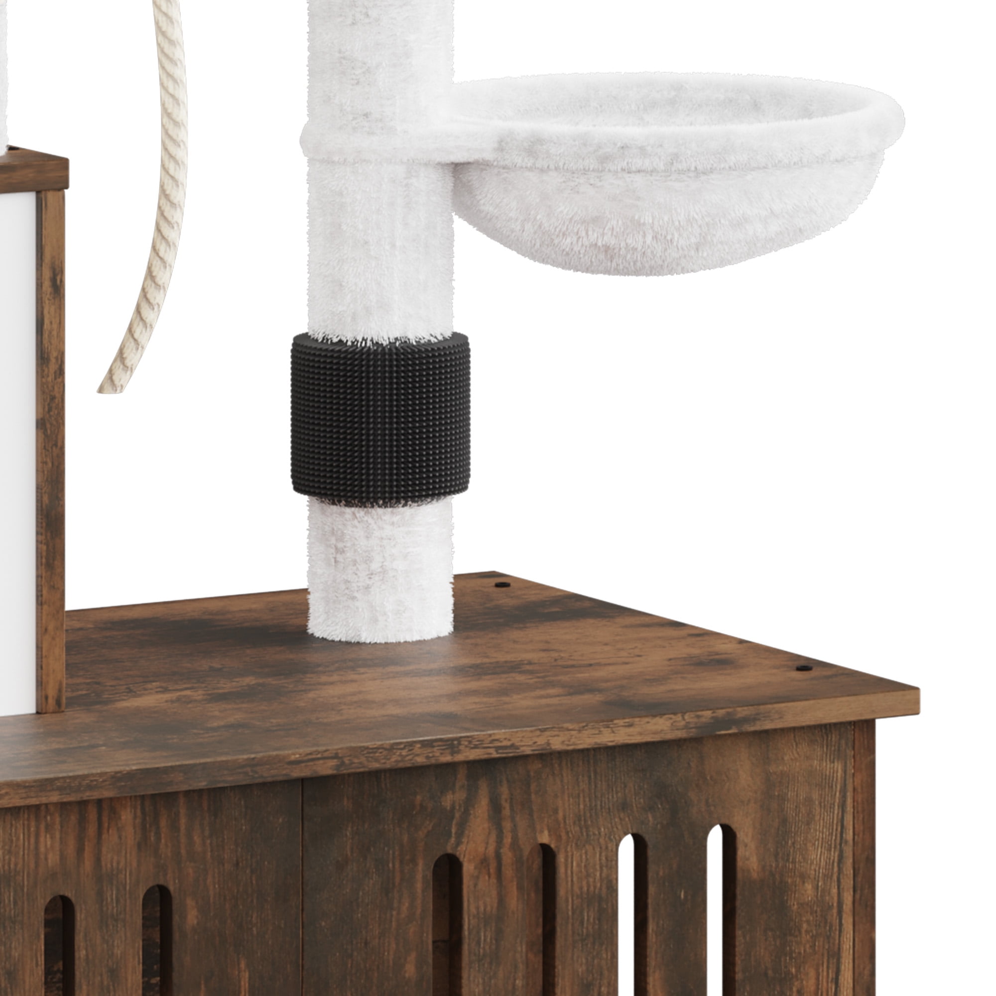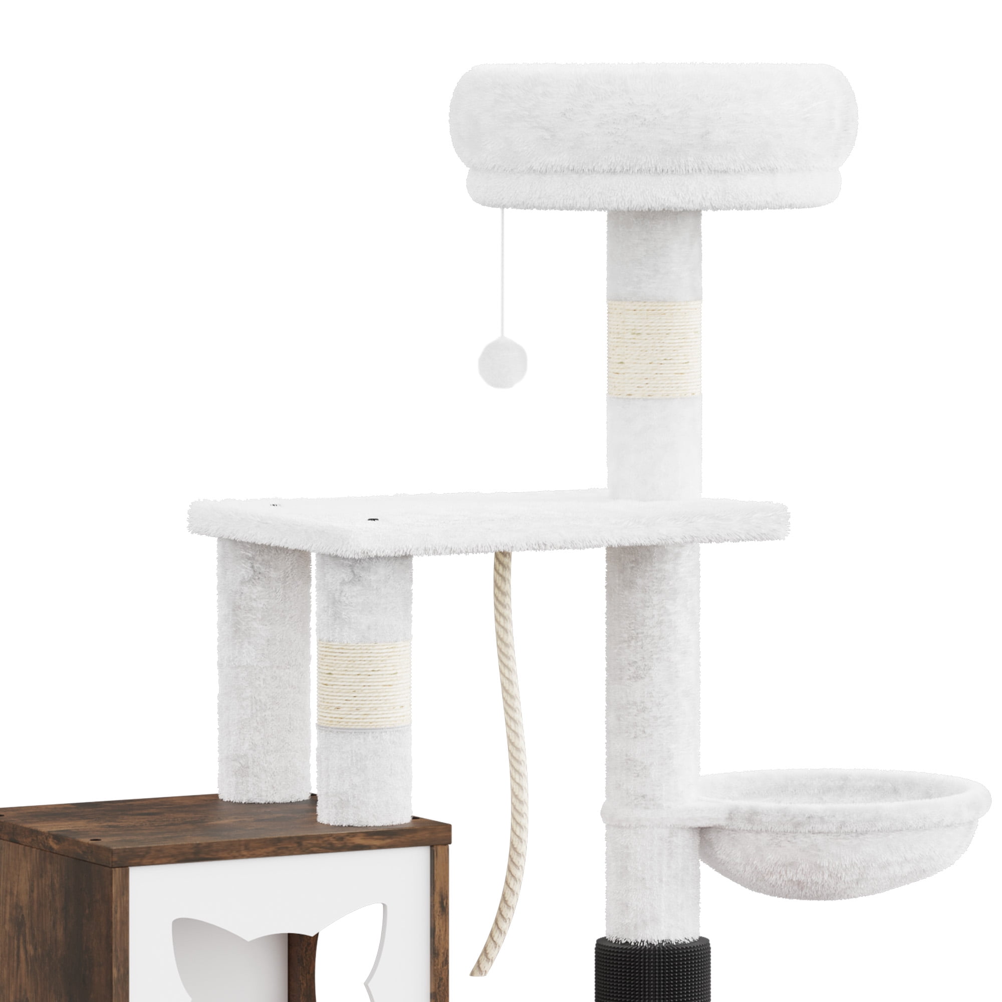 Fun from Top to Tail: Keep your cat active and happy with our multi-tier tower. A playful pompom sparks their hunting instincts, sisal posts satisfy scratching urges, and a built-in silicone brush provides a soothing spot for self-grooming. Multi-Function Vented Hideaway: Give your cat a private space with our charming tower’s vented hideaway. Use it as a discreet litter box, a cozy cat bed, or extra storage. It’s designed to reduce unwanted smells and maximize function in any room. Built Tough & Soft to the Touch: Built from sturdy engineered wood and wrapped in plush fabric, this tall cat tower is gentle on fur and well-suited for lounging. A fluffy condo mat and removable perch pad add comfort and are easy to clean. Your Cat’s Dream Spot: With a perch with removable pad to survey the room, a hammock for lazy lounging, and a fluffy condo mat for naps, this tower offers everything your cat needs to rest and feel like royalty. Gentle on Floors & Easy to Build: With adjustable feet to prevent floor scratches and pre-labeled parts plus clear instructions for quick assembly, this cute cat tower is thoughtfully designed for both you and your cat to enjoy from the start.