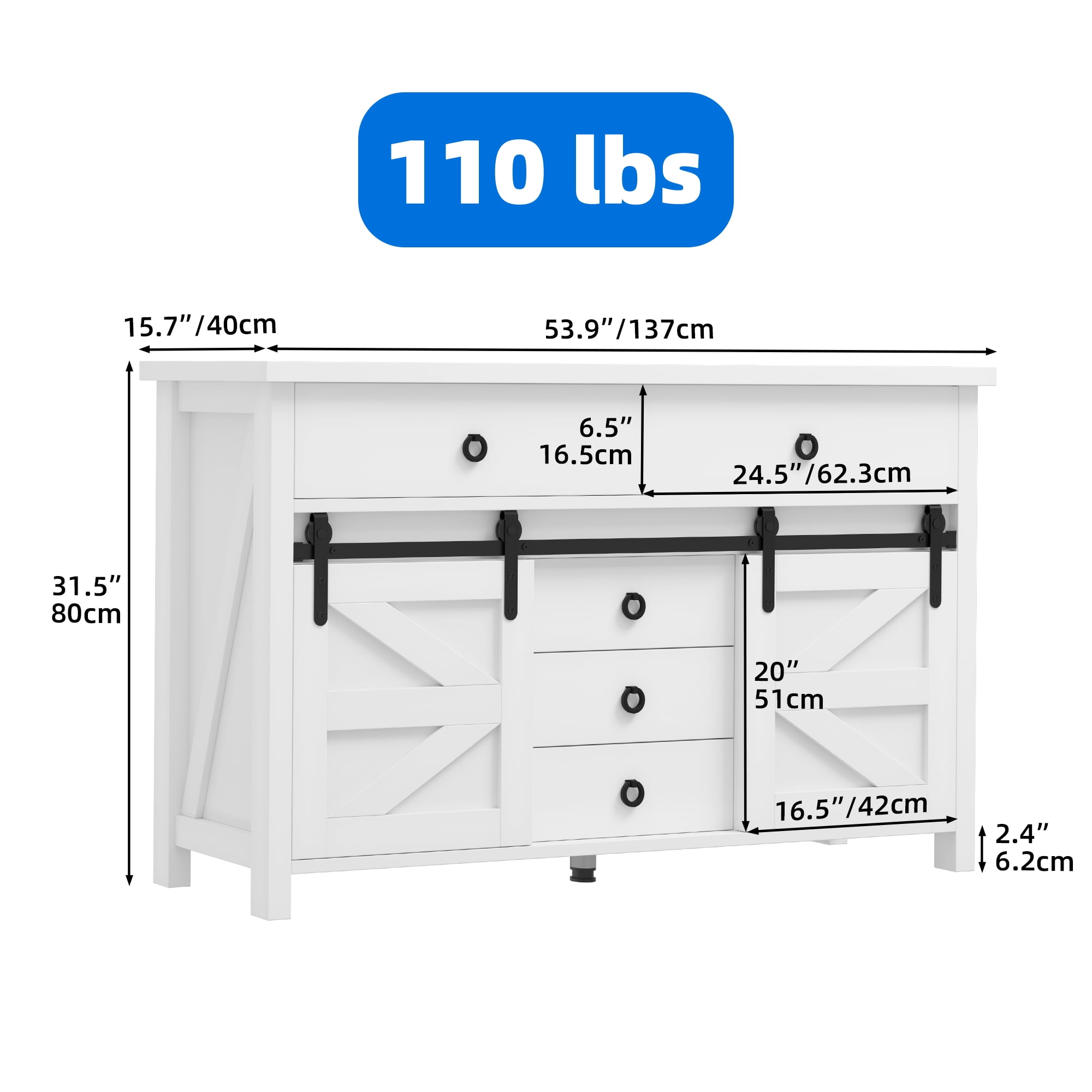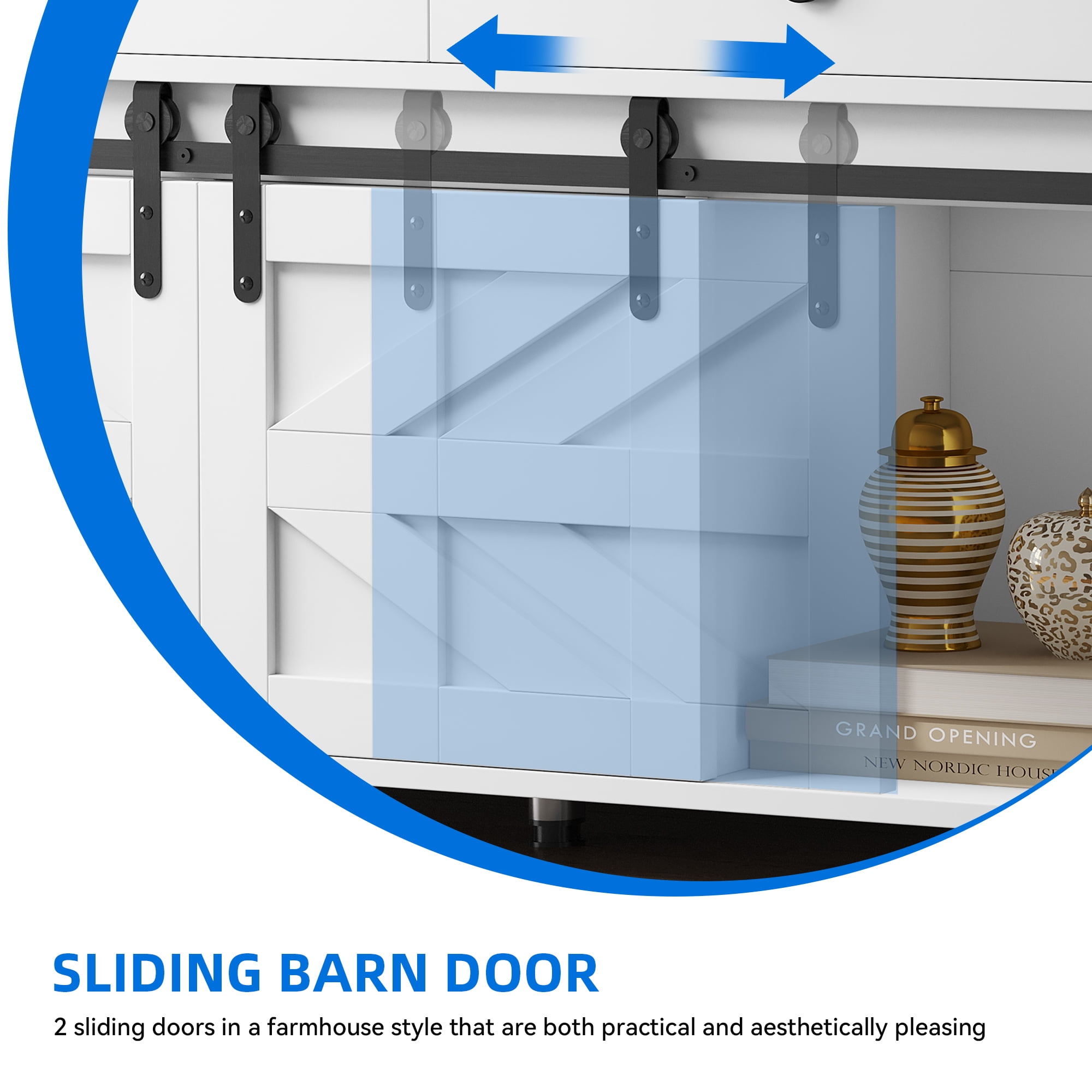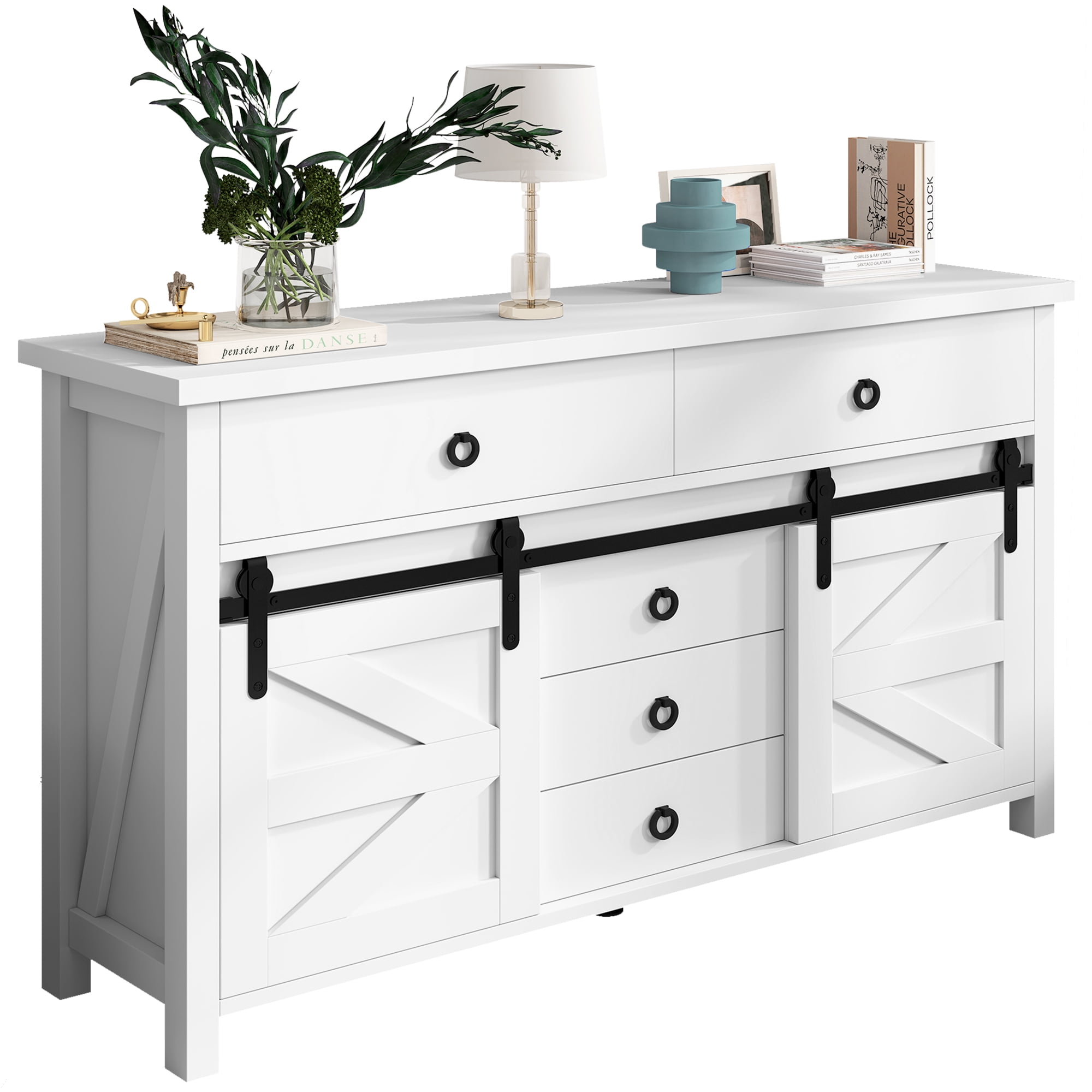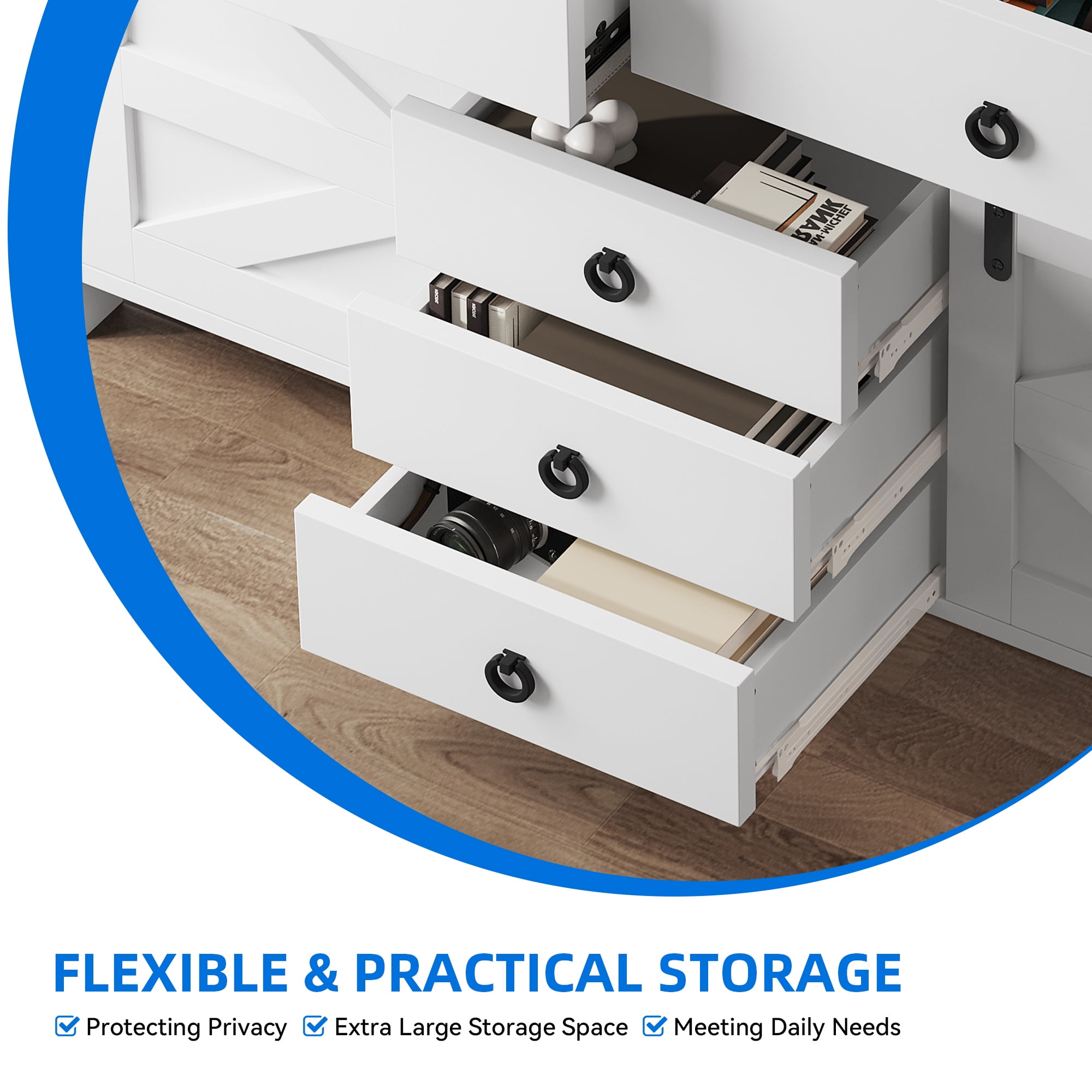 Uforic Farmhouse 7 Drawer Dressers with 2 Sliding Barn Doors and Storage Drawer for White for Adult