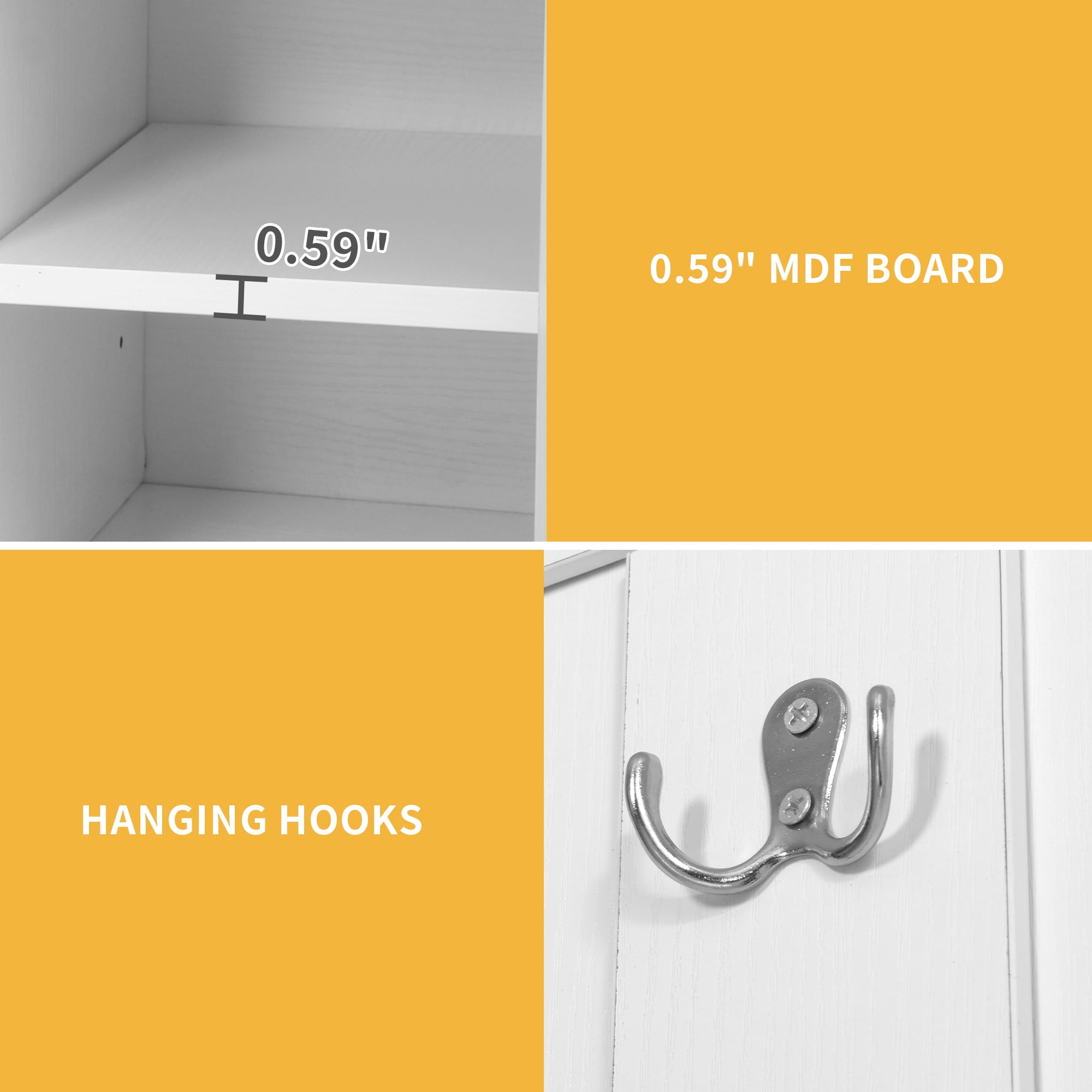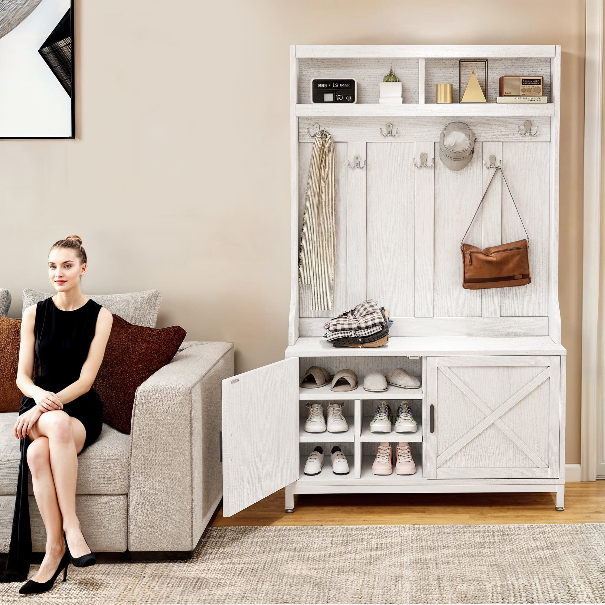 Uforic Farmhouse Hall Tree, 4-in-1 Coat Rack with Storage Bench, White Shoe Cabinet for Hallway, Living Room