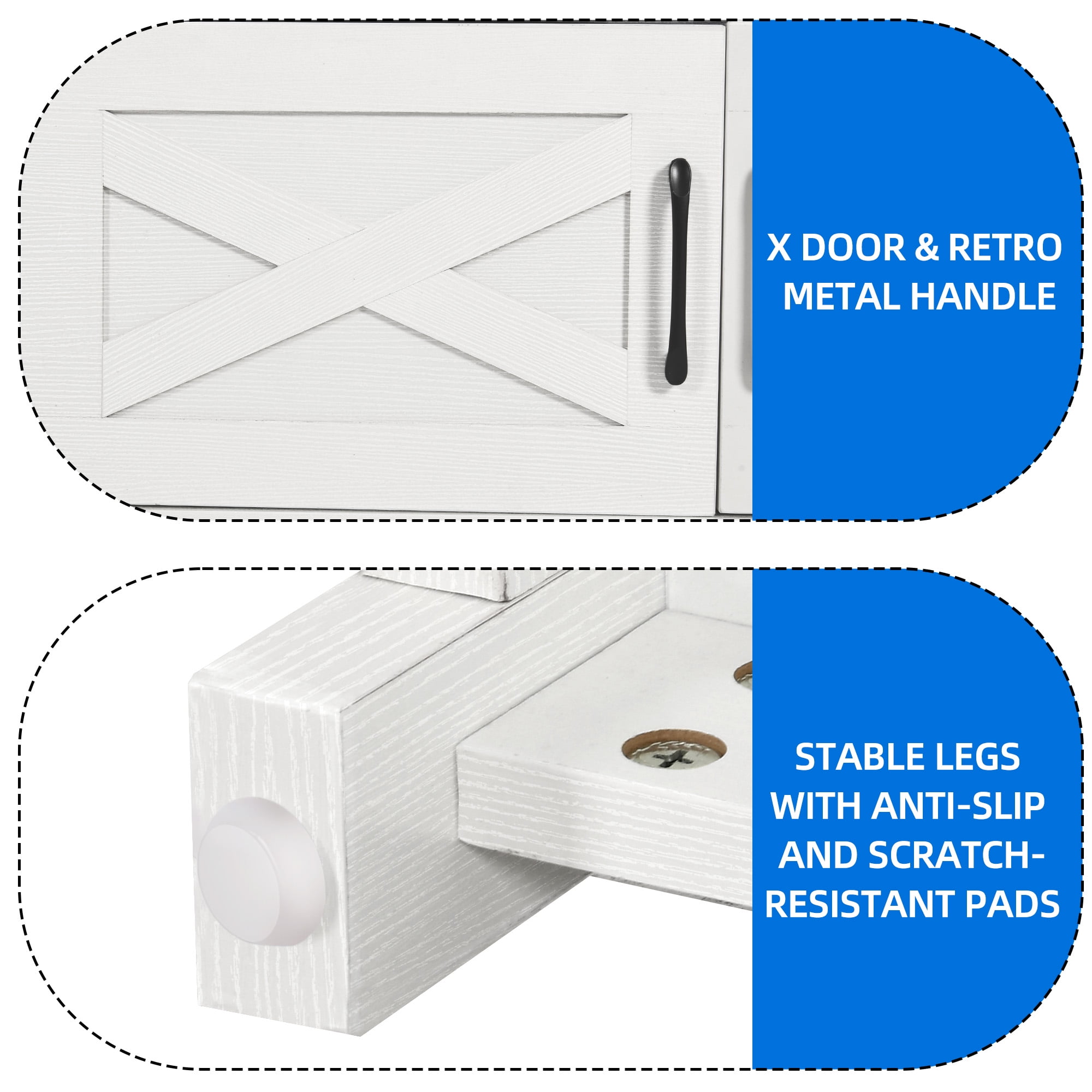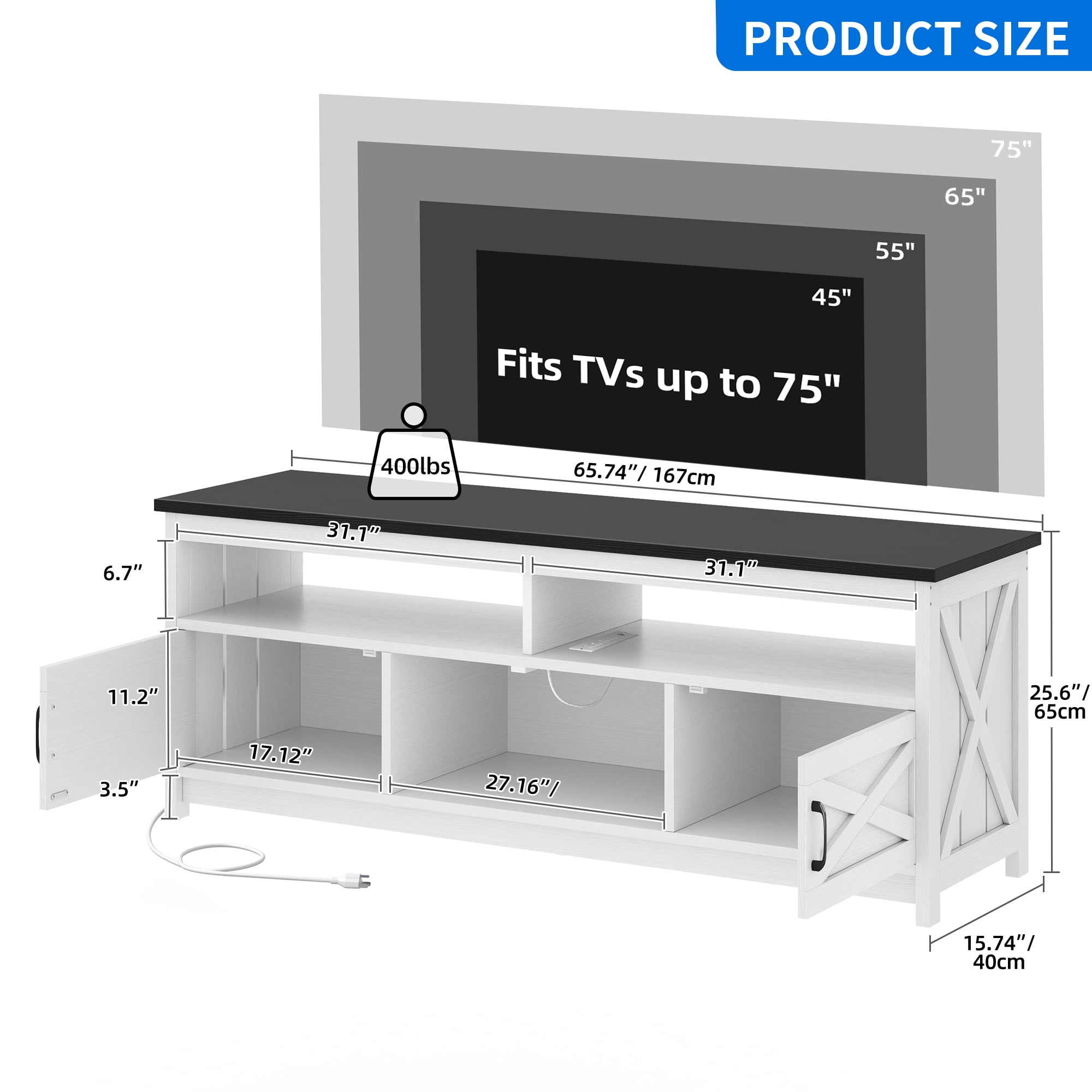 Convenient Power Options: With 4 AC outlets and 2 USB ports, the TV stand provides easy access to power for your TV, CD player, and other gadgets. Ample Storage Space: The entertainment center offers a spacious countertop suitable for your TV or decor, with support for televisions ranging from 50 to 75 inches. Open shelves provide storage for media gadgets, while closed compartments help keep dust at bay, ensuring a clutter-free and organized living space. Farmhouse Elegance: The TV console adds a touch of farmhouse charm to any room with stylish X elements and a gray wash color. This design feature brings an elegant and cozy vibe to your living space, bedroom, or hallway, enhancing the overall aesthetic and creating a warm and inviting atmosphere. Sturdy & Stable Construction: Crafted from robust engineered wood, the media console is built to last and offers a strong load capacity. Non-slip foot pads provide stability, ensuring that your devices are secure and safe from wobbling or instability, enhancing the durability and reliability of the TV stand. Easy Assembly: Assembly of the TV cabinet is made simple with labeled parts and clear instructions, making the setup process a breeze.