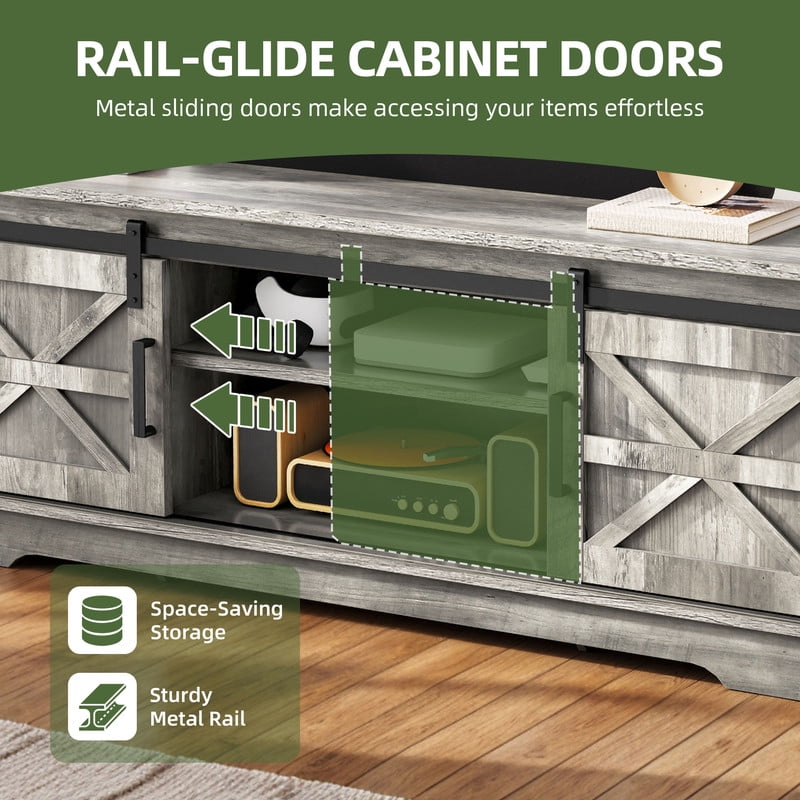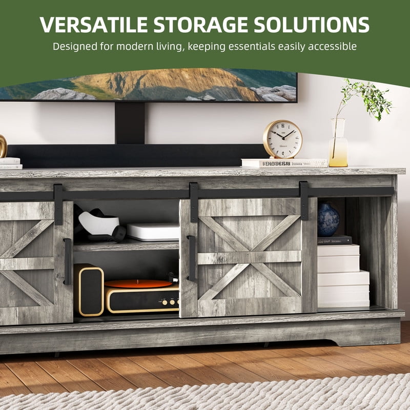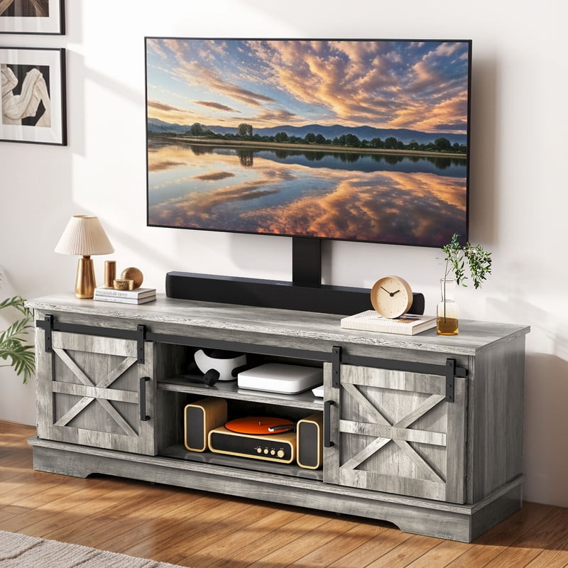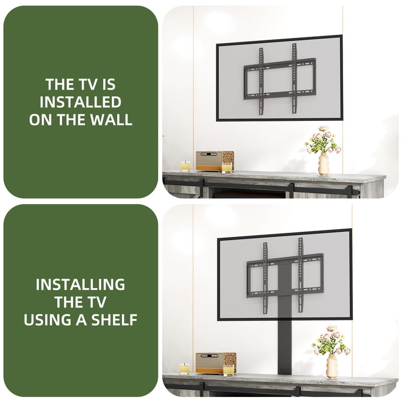 Flexible TV Mounting Solutions: Effortlessly mount TVs from 32″ to 70″ on the bracket or wall for a sleek, space-saving setup. Need a tabletop display? A 65″ TV fits perfectly, striking the ideal balance between style and functionality. Optimized Viewing Comfort: Our TV stand bracket offers 3 height adjustments (16.54″–20.47″ from the TV bottom to the tabletop) and supports left-right adjustments. Whether you’re lounging on the couch or lying in bed, enjoy a comfortable viewing experience every time. Practical Sliding Doors: This entertainment center blends style with functionality. Smooth sliding doors provide easy access to your decor, consoles, or media devices. Two shelves and cable cutouts ensure your setup stays tidy and organized. Stylish and Durable Design: Crafted from durable engineered wood with a reinforced base, this TV cabinet is both sturdy and stylish. The rustic finish, sleek black handles, and X-detailing add warmth and charm to any space. Effortless Assembly: With labeled parts, clear instructions, and included hardware, setup is quick and hassle-free. Enjoy your farmhouse TV stand in no time and start hosting movie nights. If you encounter any issues before or after purchase, feel free to reach out for assistance.