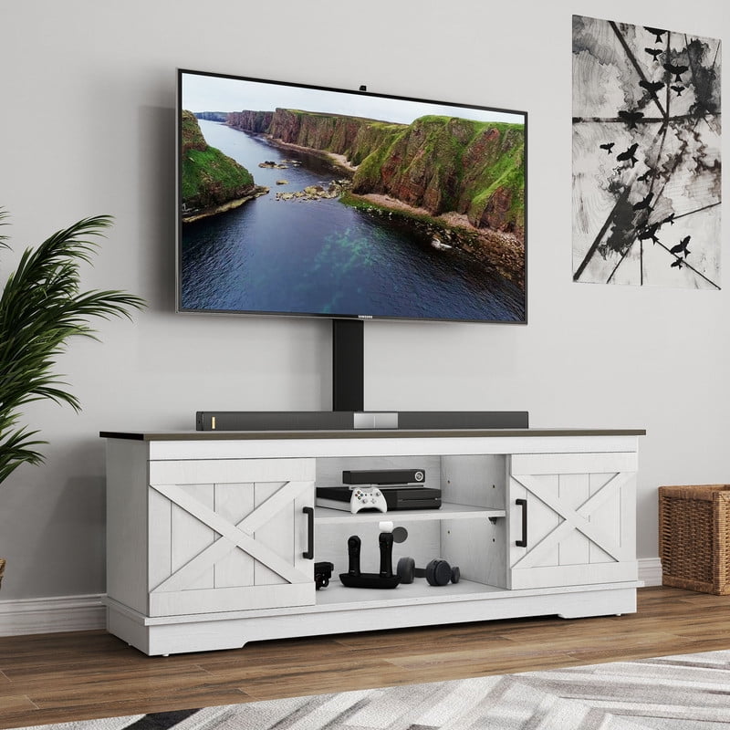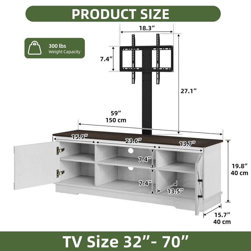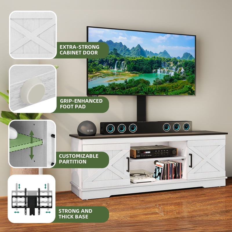 Flexible TV Mounting Options: Easily mount TVs ranging from 32″ to 70″ directly on the bracket or wall. For tabletop placement, a 65″ TV is ideal, providing ultimate flexibility for your viewing setup. Customizable Viewing Experience: Adjust your TV’s position with 3 height levels (16.54″–20.47″) and left-right settings. Whether you’re on the sofa or in bed, enjoy a comfortable and immersive viewing experience. Adaptable Storage Solutions: This entertainment center features a 3-level adjustable middle shelf and 2 side cabinets with interior shelves. It offers flexible storage for consoles, decor, and accessories, while cable management cutouts keep wires neatly organized and out of sight. Durable Farmhouse-Style Design: Made from engineered wood with a reinforced base, this TV stand provides lasting durability. The mixed colors and X motif add cozy, rustic farmhouse charm to your space. Quick and Simple Assembly: Enjoy a hassle-free setup with clearly labeled parts, all necessary accessories, and step-by-step instructions. Assembling your TV console is quick and easy, so you can start enjoying it in no time.