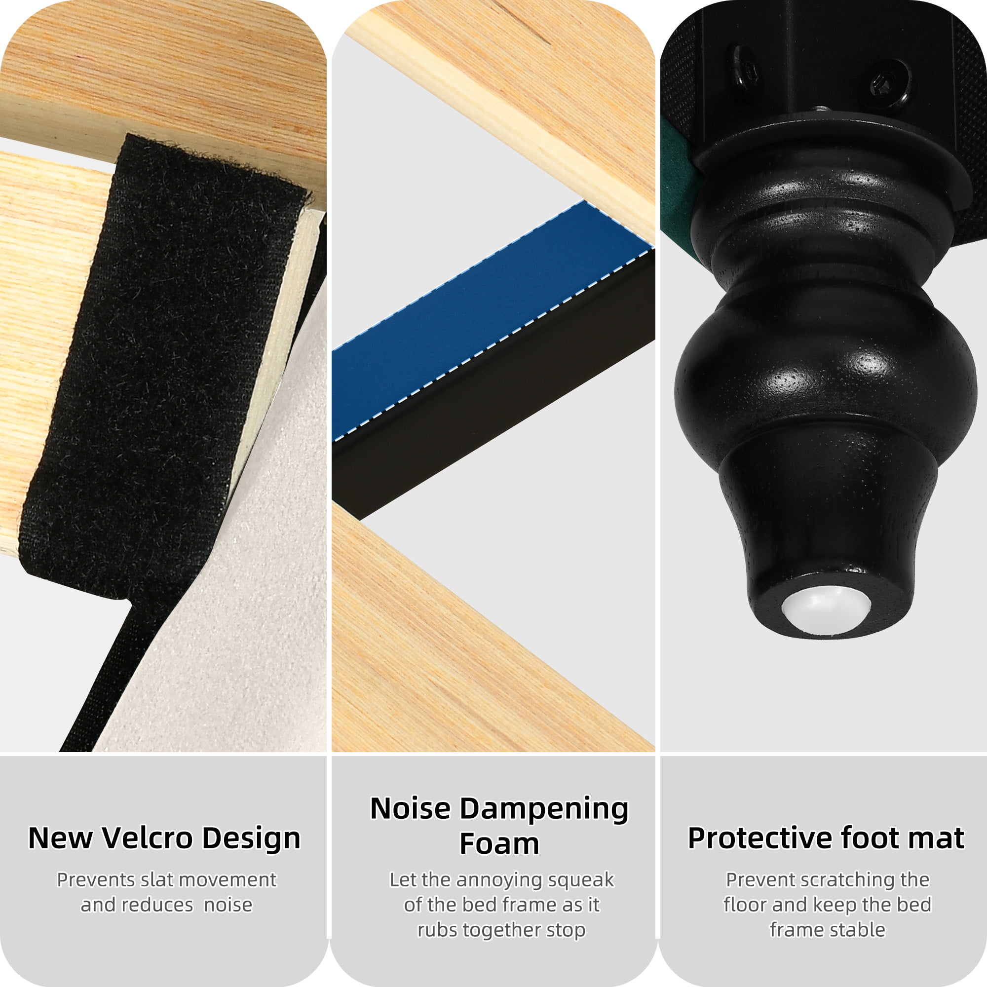 Upgrade your bedroom with this elegant platform bed frame. It features a tall 60 inch wingback headboard and footboard, convered in soft velvet upholstery. Built-in LED lights add a cozy glow, creating a relaxing atmosphere. The sturdy solid wood legs provide strong support, and no box spring is needed. Easy to assemble, this stylish bed combines comfort and modern design.