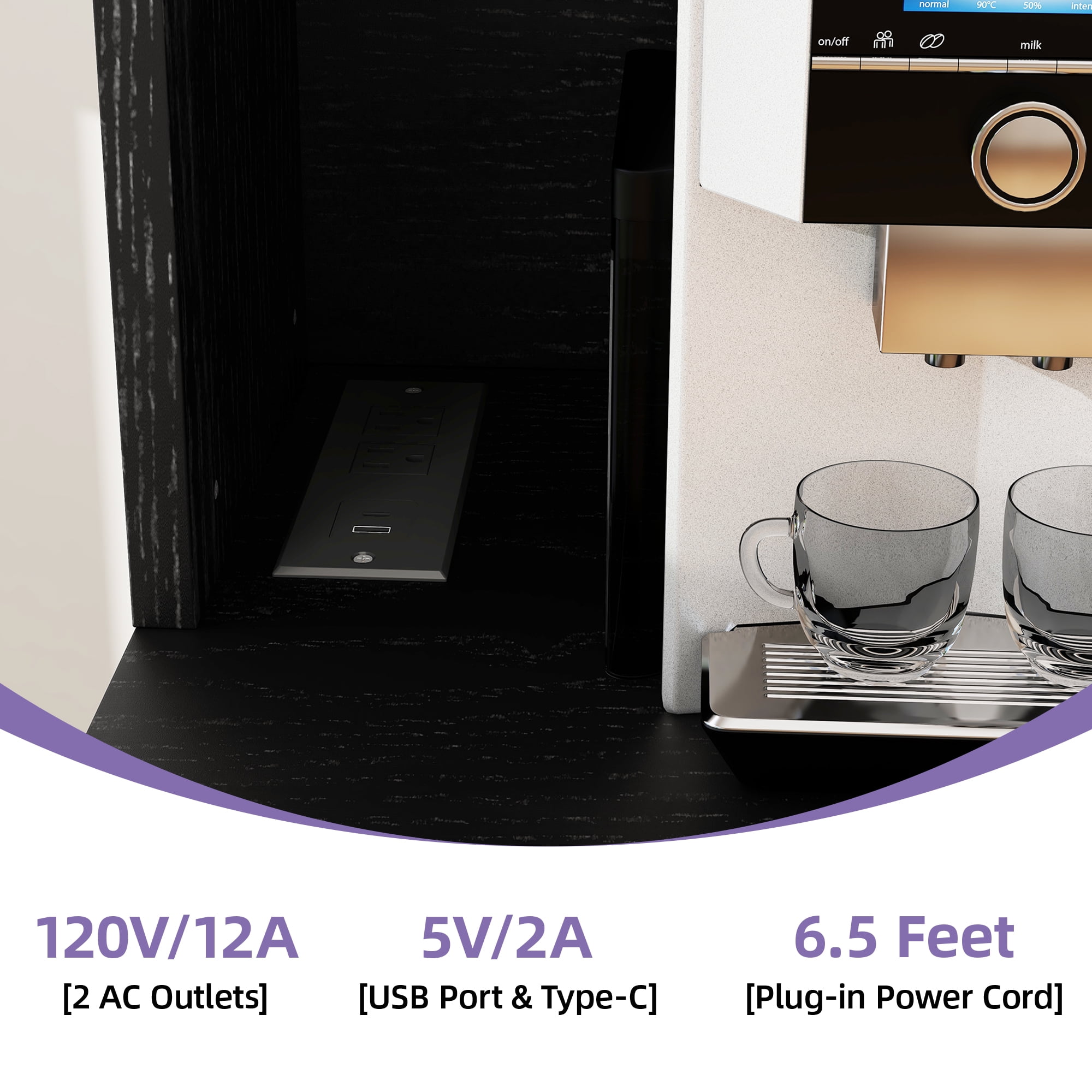 Uforic Kitchen Pantry Cabinet with Charging Station and Drawers,Storage Cabinet for Entryway, Kitchen Black