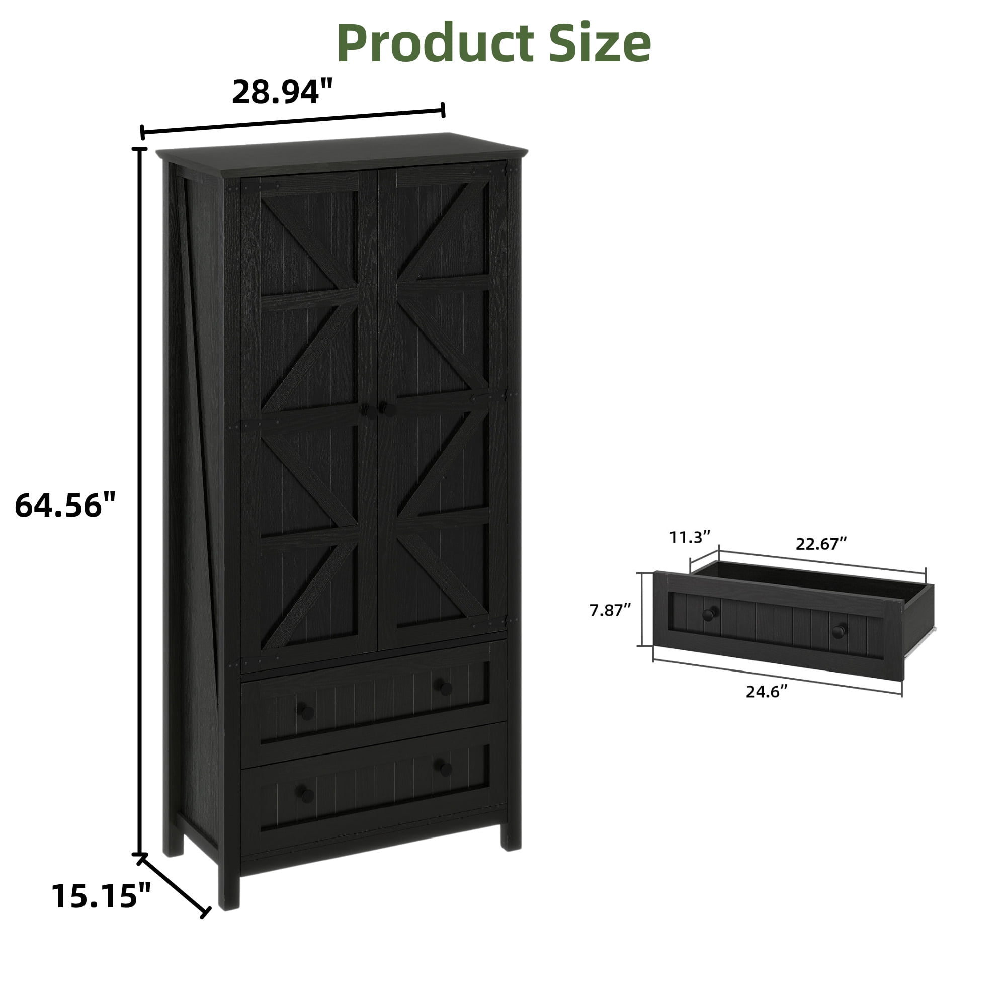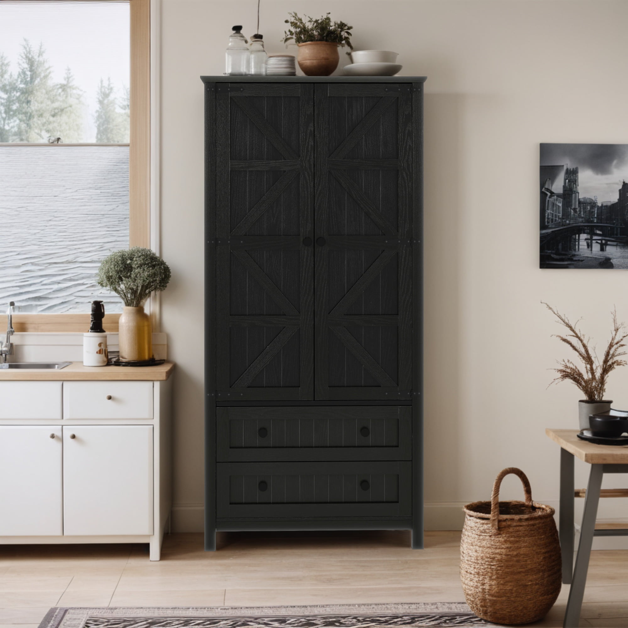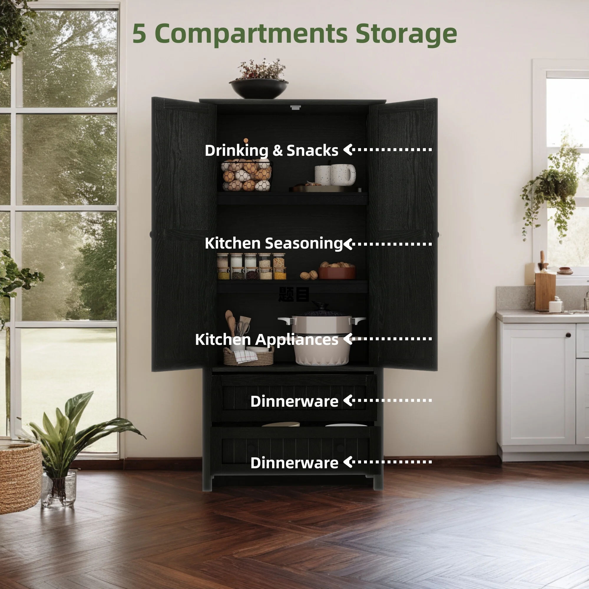 Uforic Kitchen Pantry Storage Cabinet with Drawers & Shelves, Farmhouse Kitchen Furniture, Black