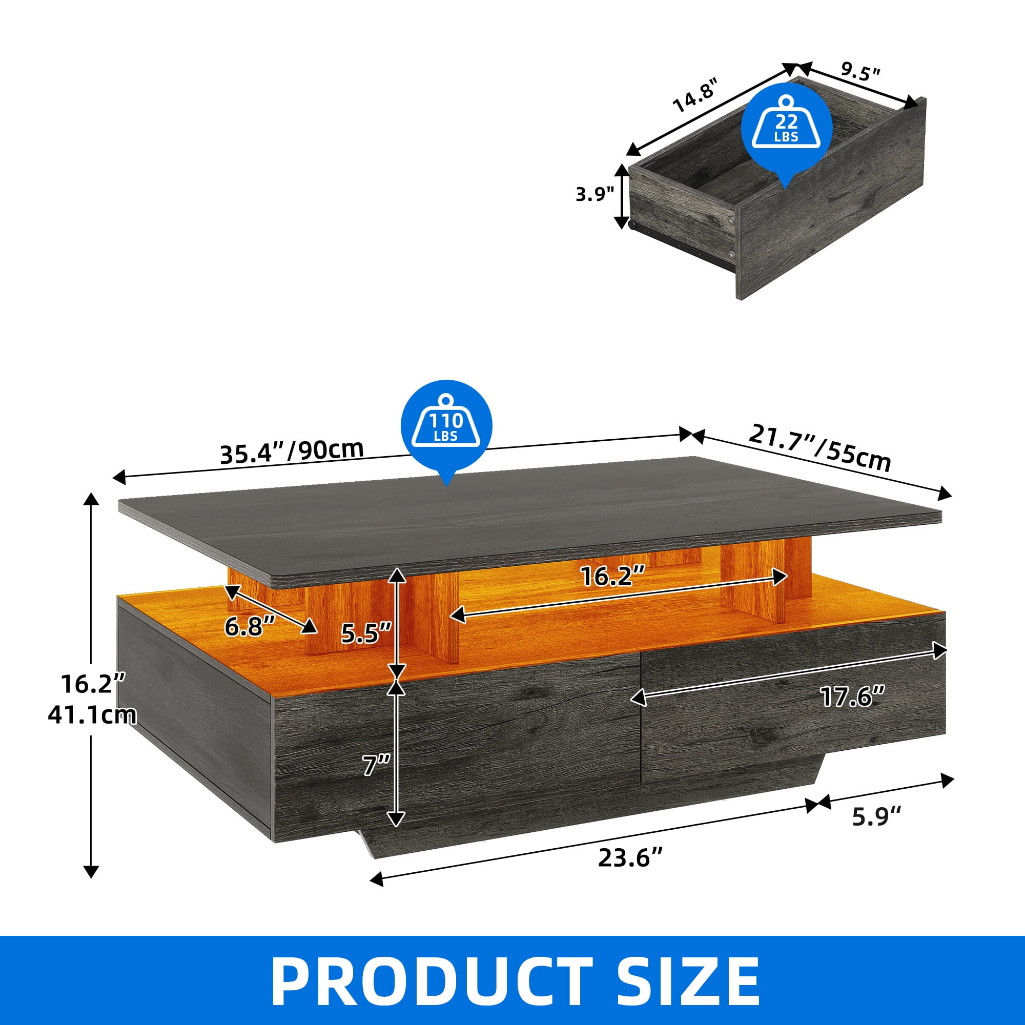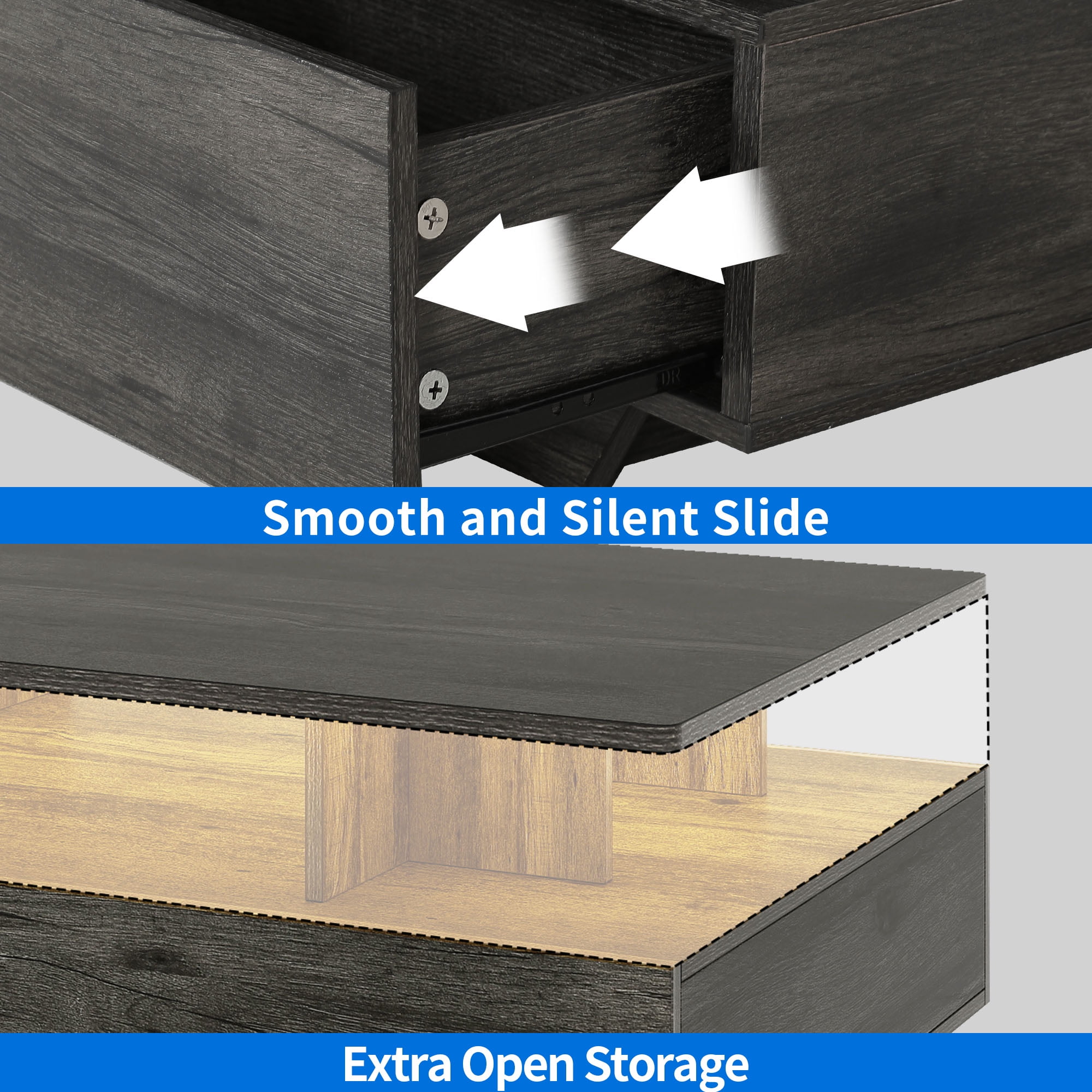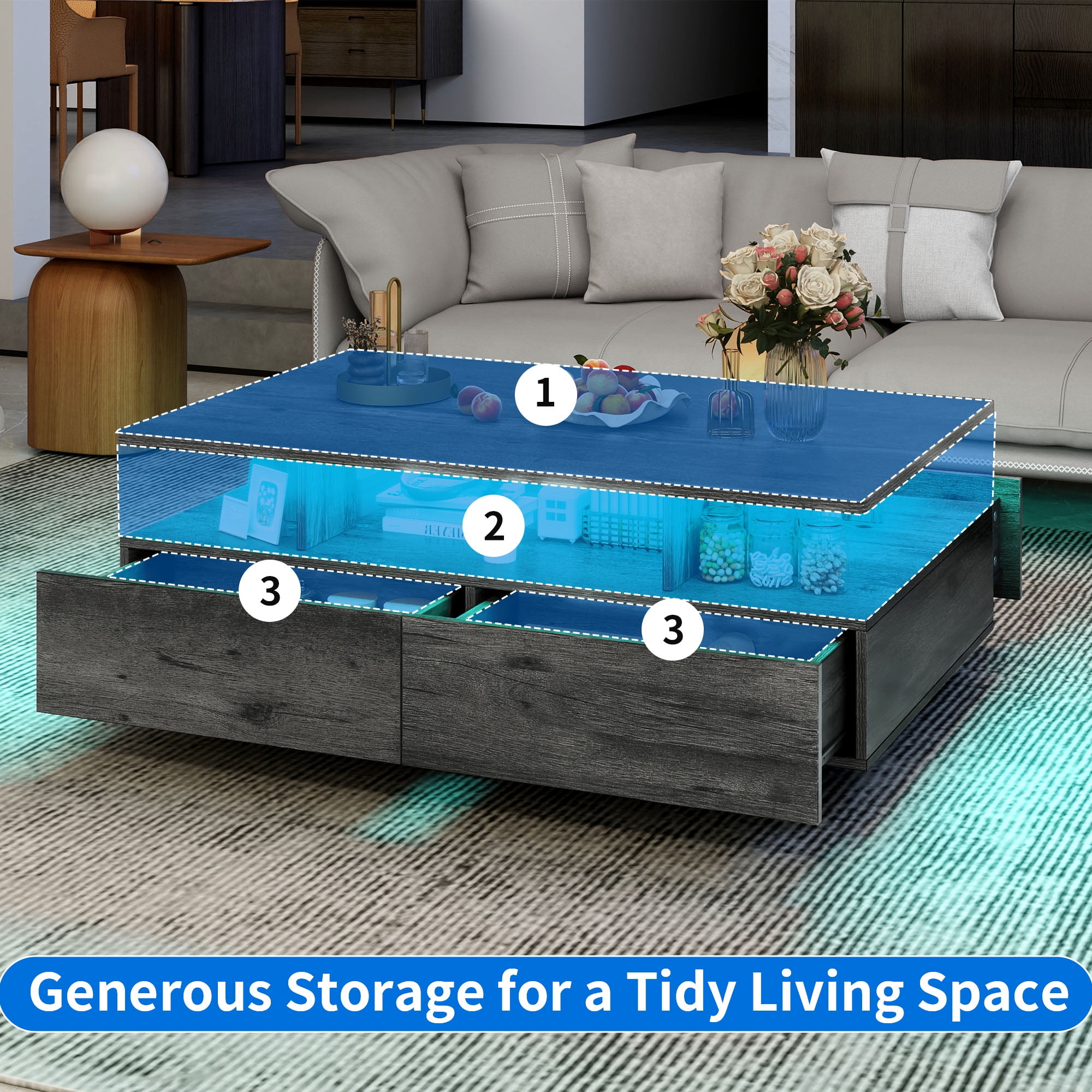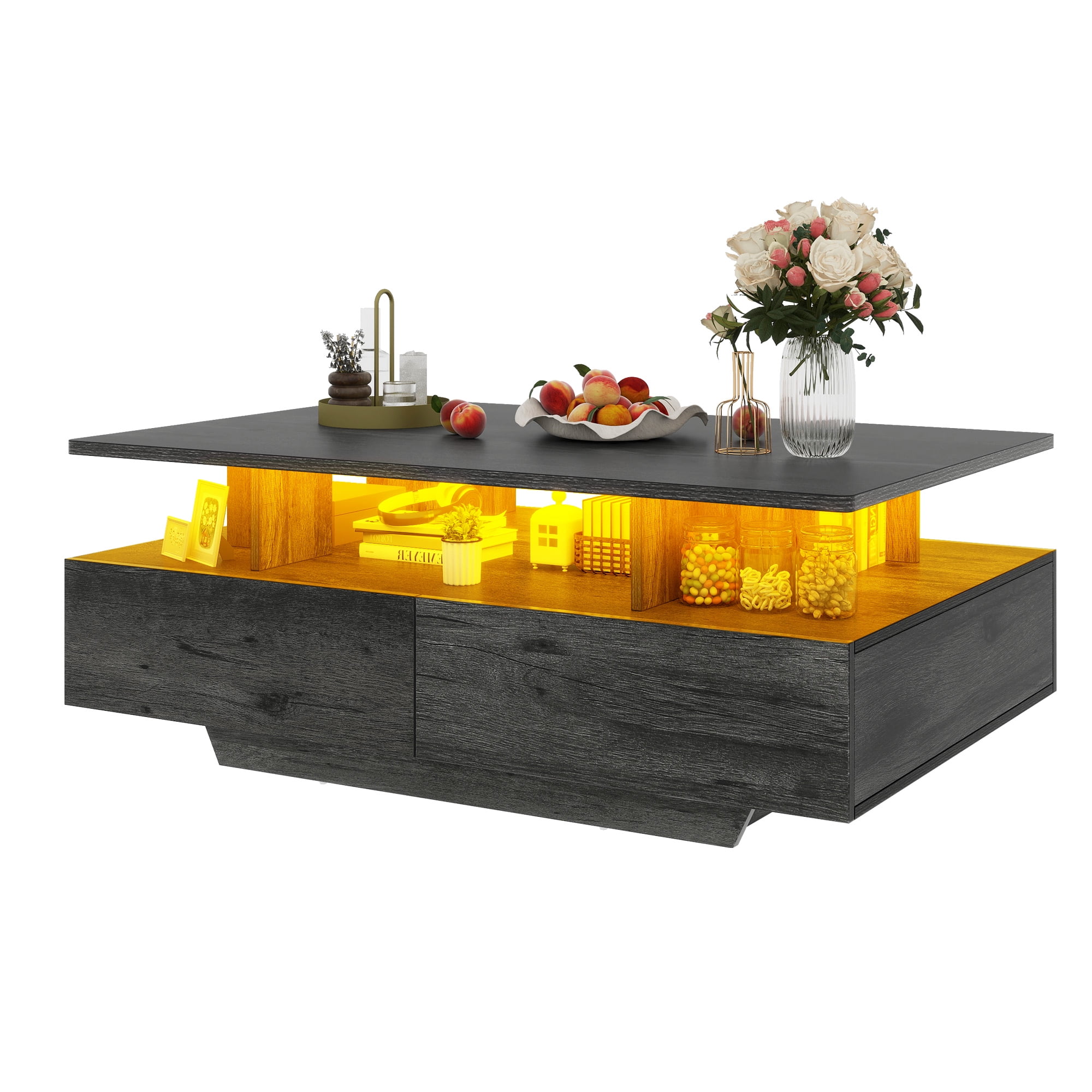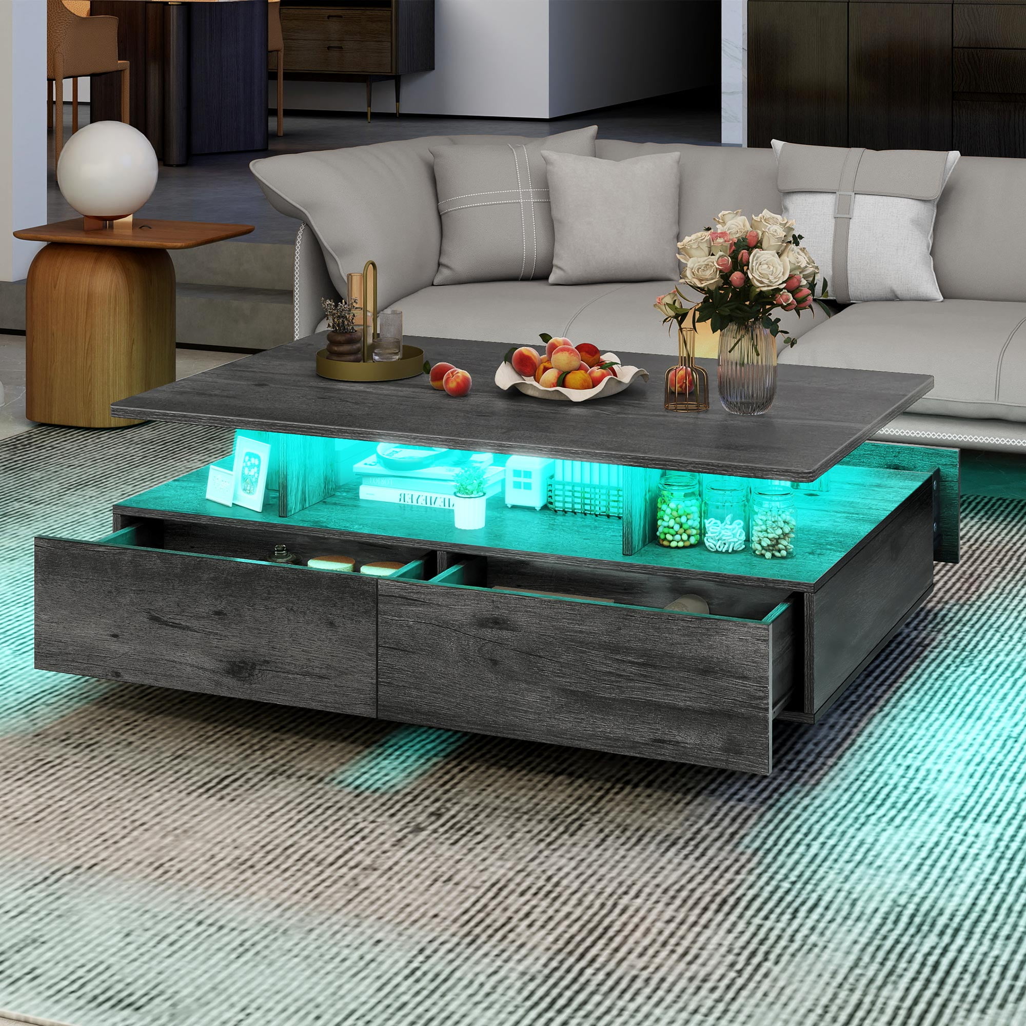 Uforic LED Coffee Table, Modern Center Tables with Storage for Living Room, Gray